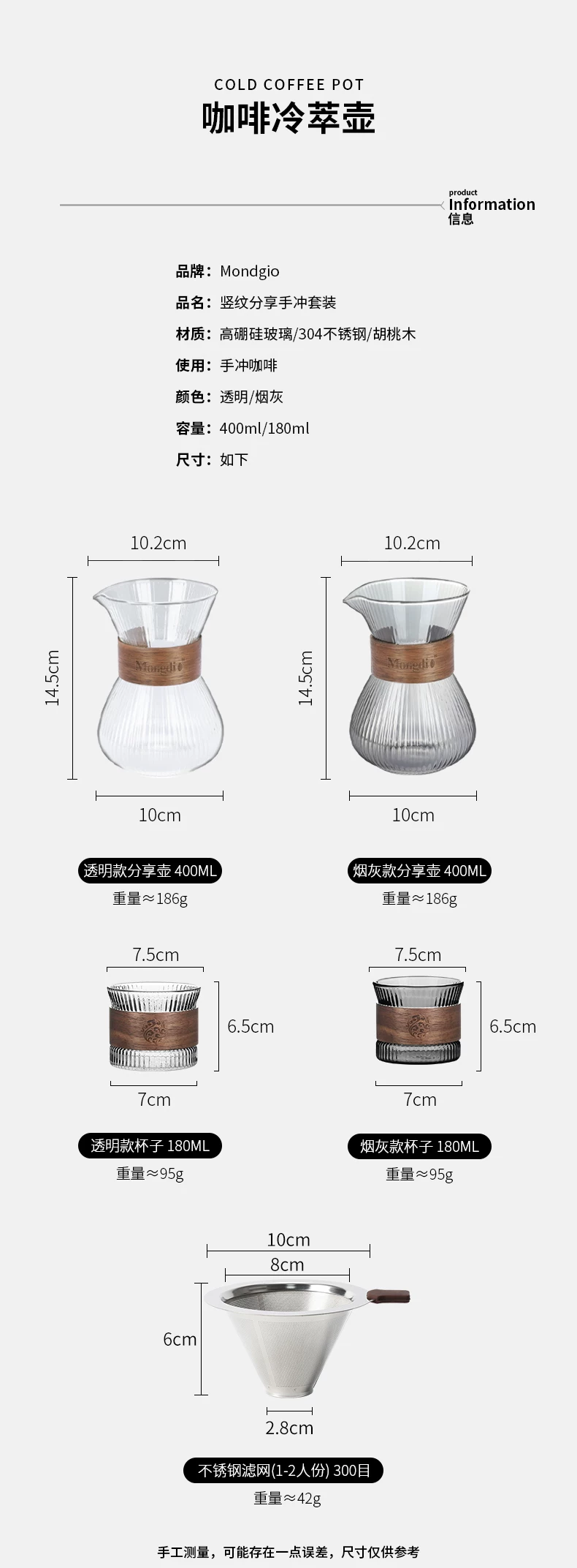 - Bình chia sẻ cà phê Mongdio, cốc cà phê nhỏ giọt, bình chia sẻ pha cà phê bằng tay, bình cà phê, phễu thủy tinh, cốc nếm thử