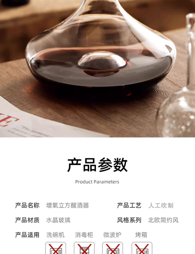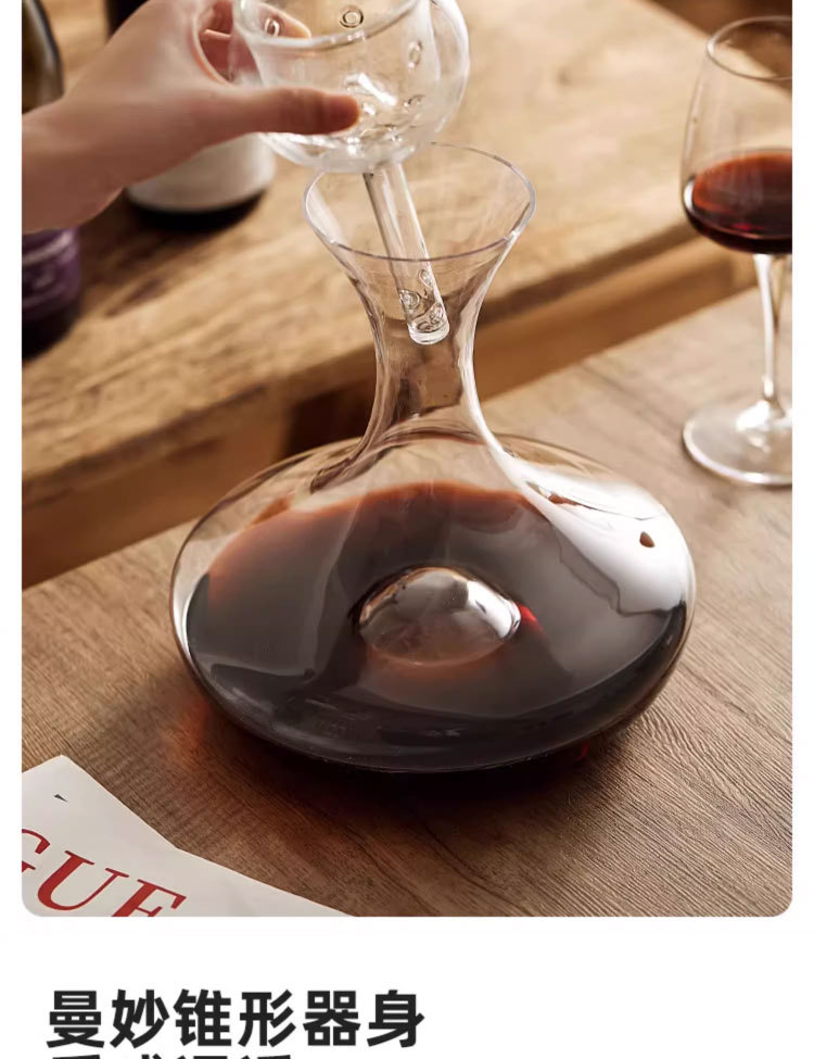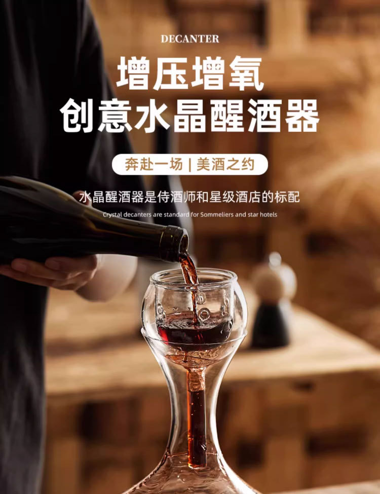 - Bình đựng rượu vang, bình thở vang thủy tinh pha lê với lọc và sục khí DY9814, decanter cho nhà hàng.
