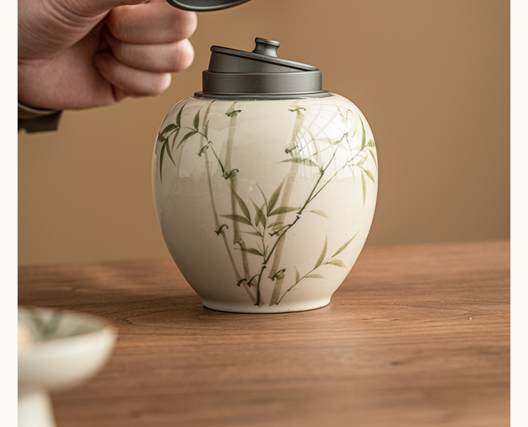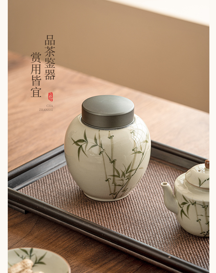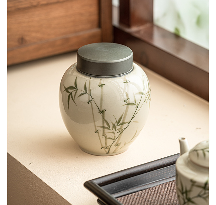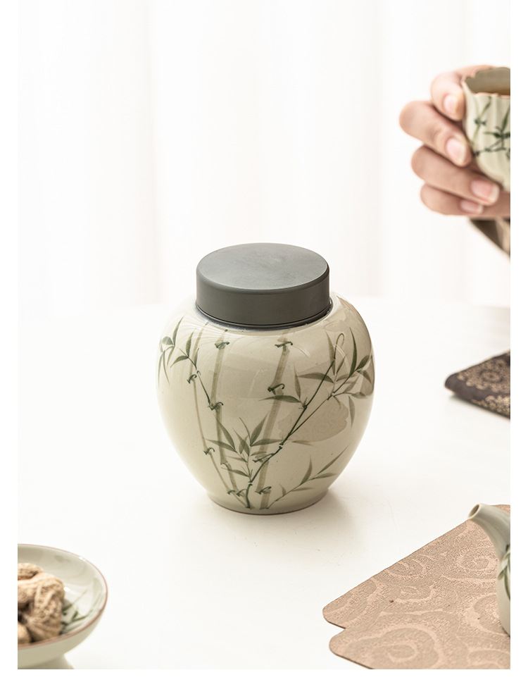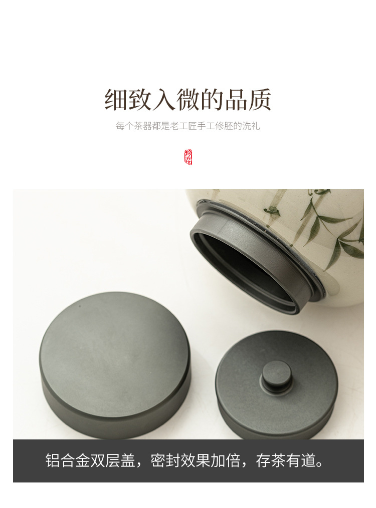 Bình đựng trà bằng tre xanh ngọc, bình kín gia dụng cao cấp cao cấp, bình đựng trà có nắp hợp kim kiểu Trung Quốc, bình đựng đồ gốm