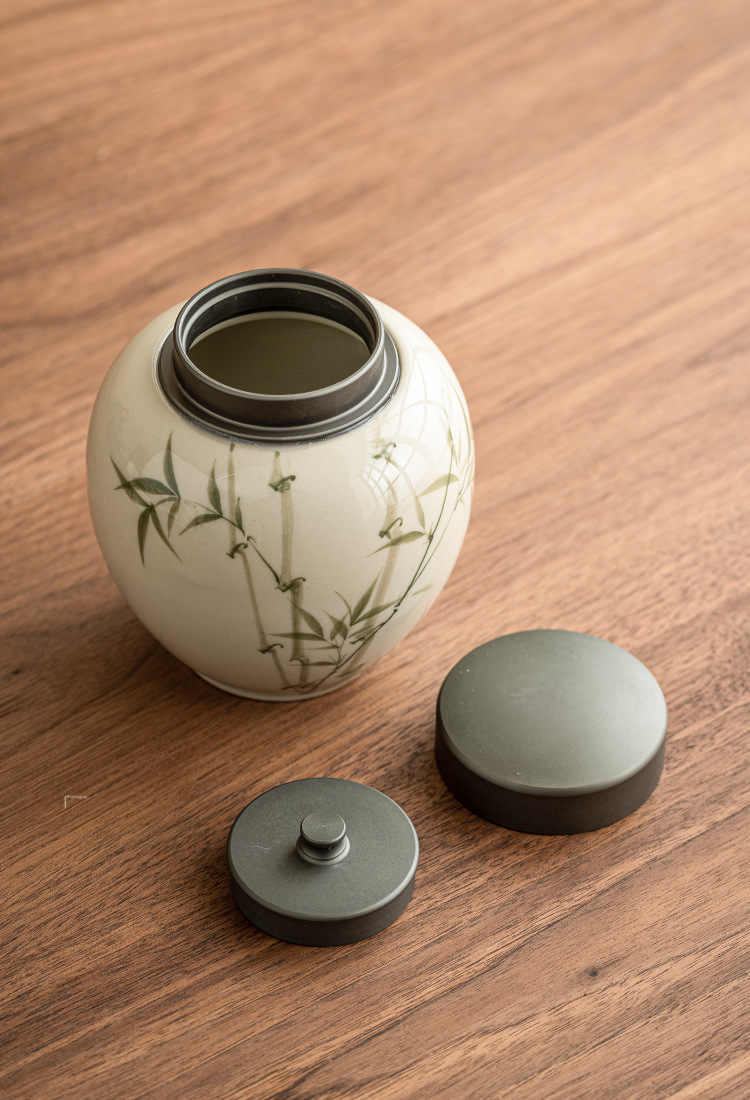 - Bình đựng trà bằng tre xanh ngọc, bình kín gia dụng cao cấp cao cấp, bình đựng trà có nắp hợp kim kiểu Trung Quốc, bình đựng đồ gốm