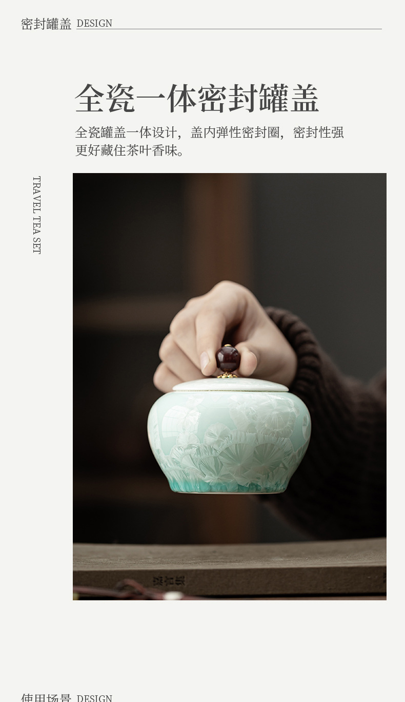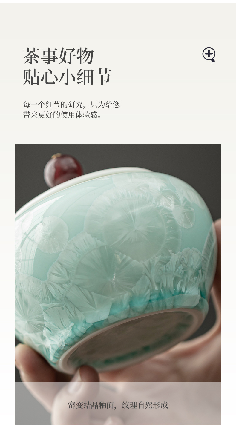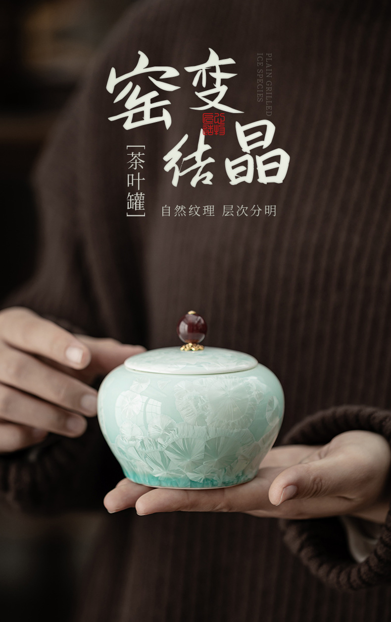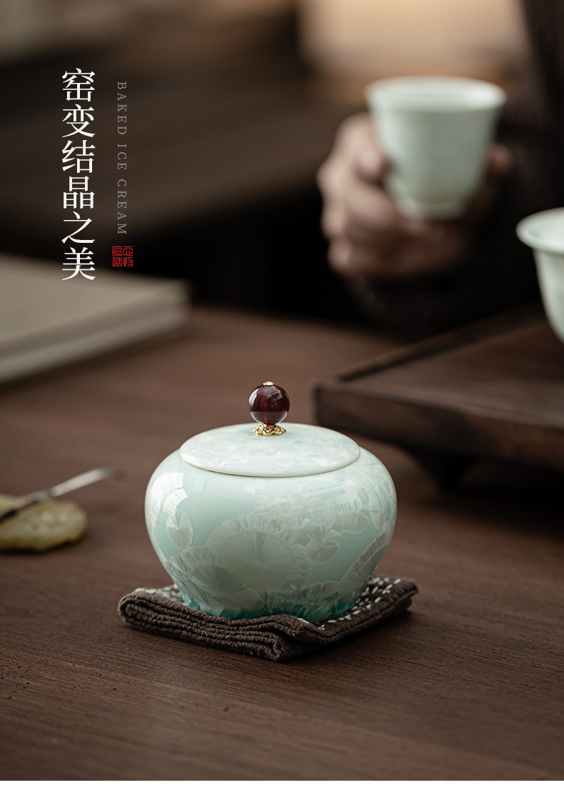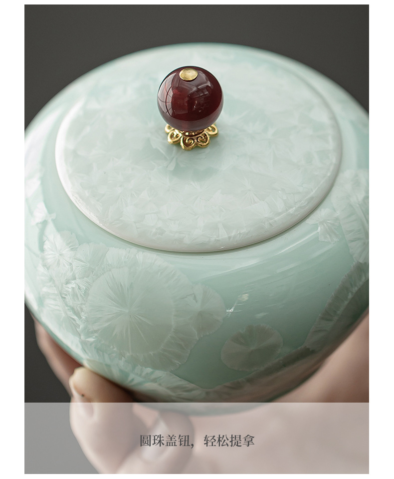 - Bình đựng trà bụng tròn màu xanh lục tinh thể đá, bình gốm, bình đựng trà gia dụng, bình đựng đồ, phụ kiện bộ trà, bình đựng đồ