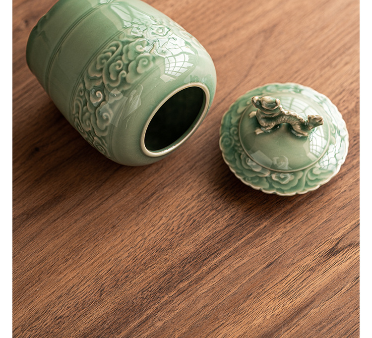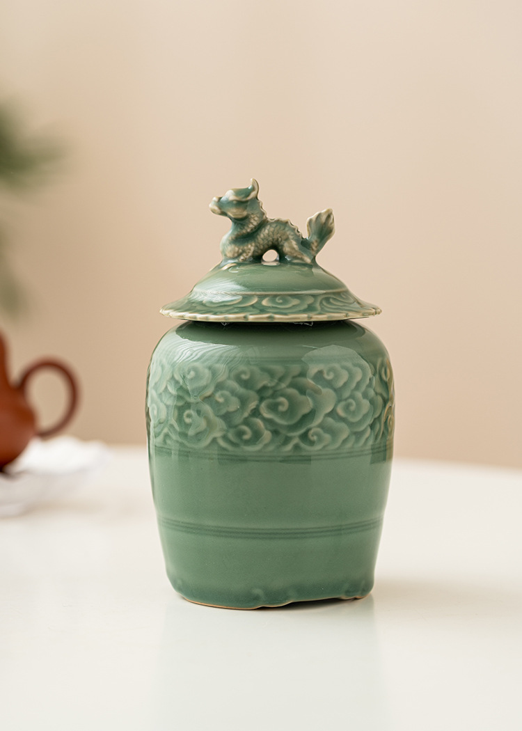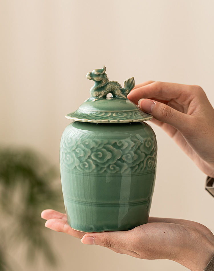 Bình đựng trà cổ kiểu Trung Quốc men ngọc Yue Kiln, bình đựng trà gốm sứ gia dụng, bình chống ẩm, xách tay
