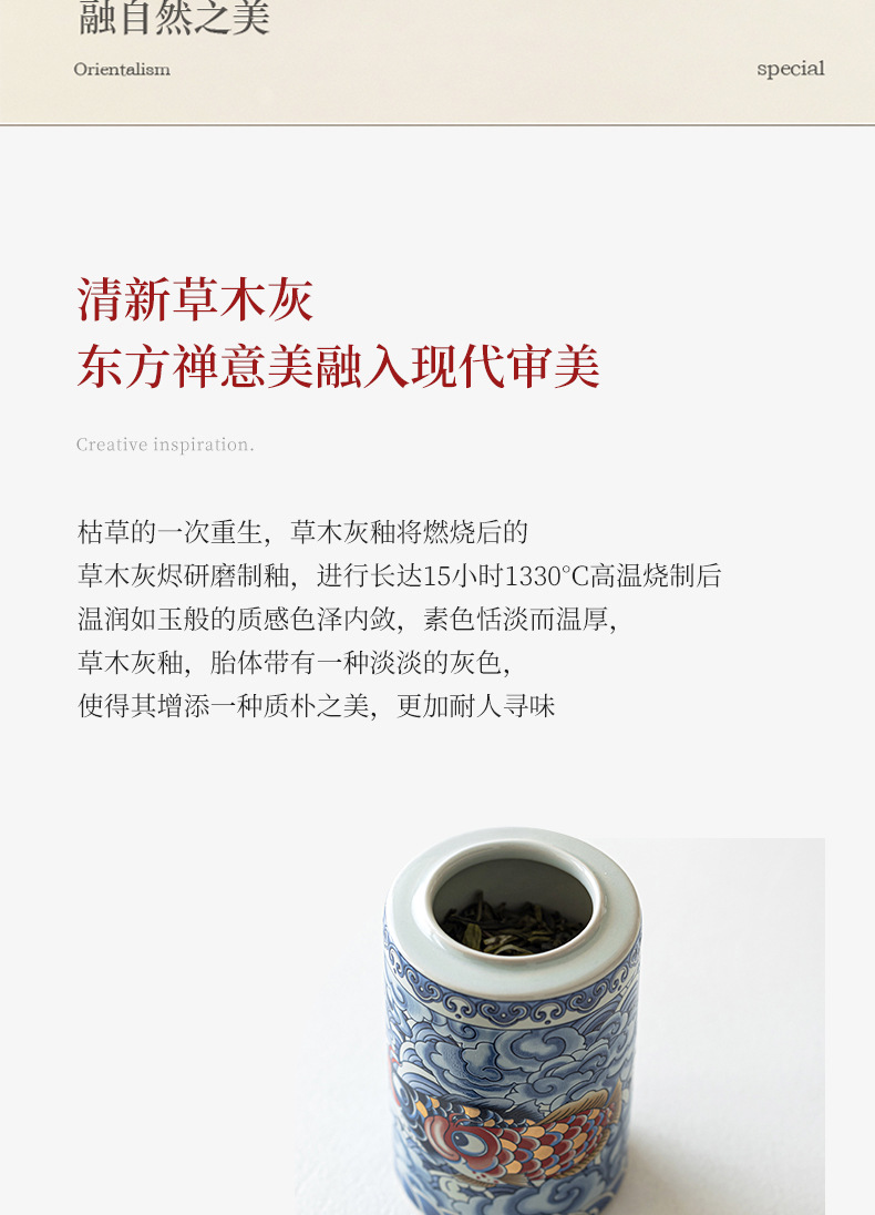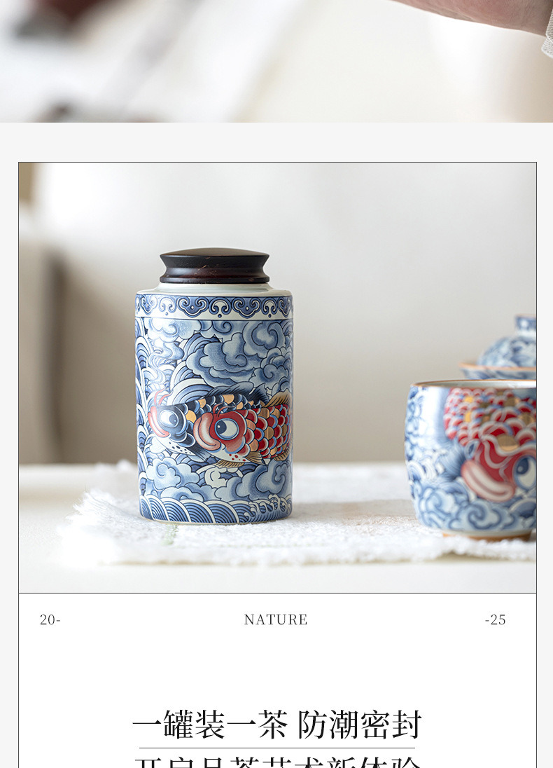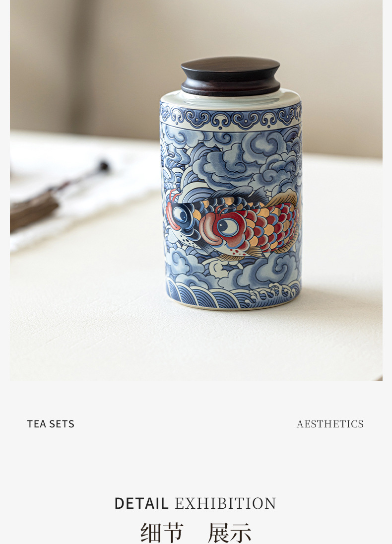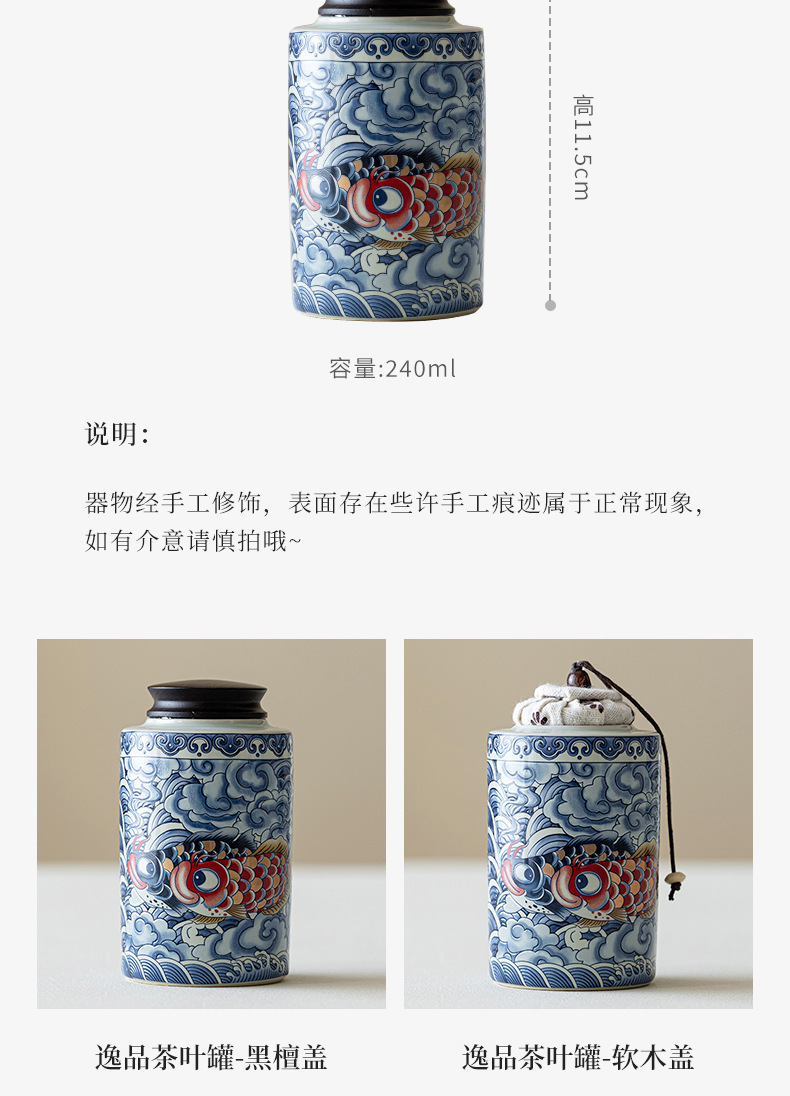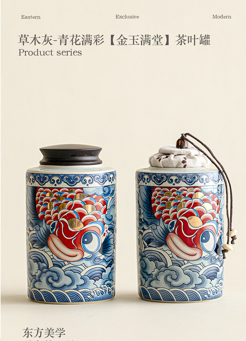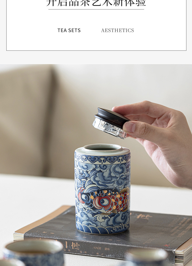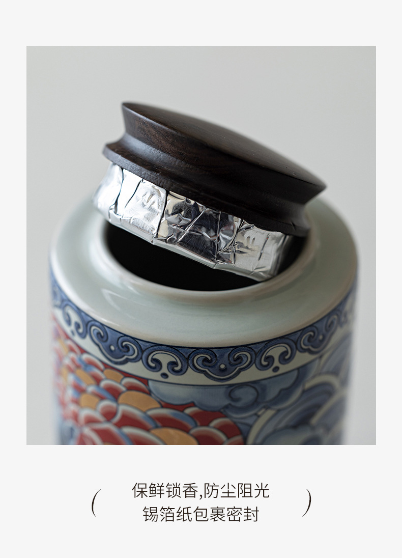 - Bình đựng trà đầy màu sắc màu xám thực vật phong cách quốc gia, bình gốm kín, bình chống ẩm, phụ kiện bộ trà kho trà gia dụng Trung Quốc