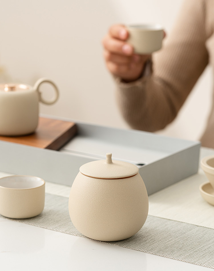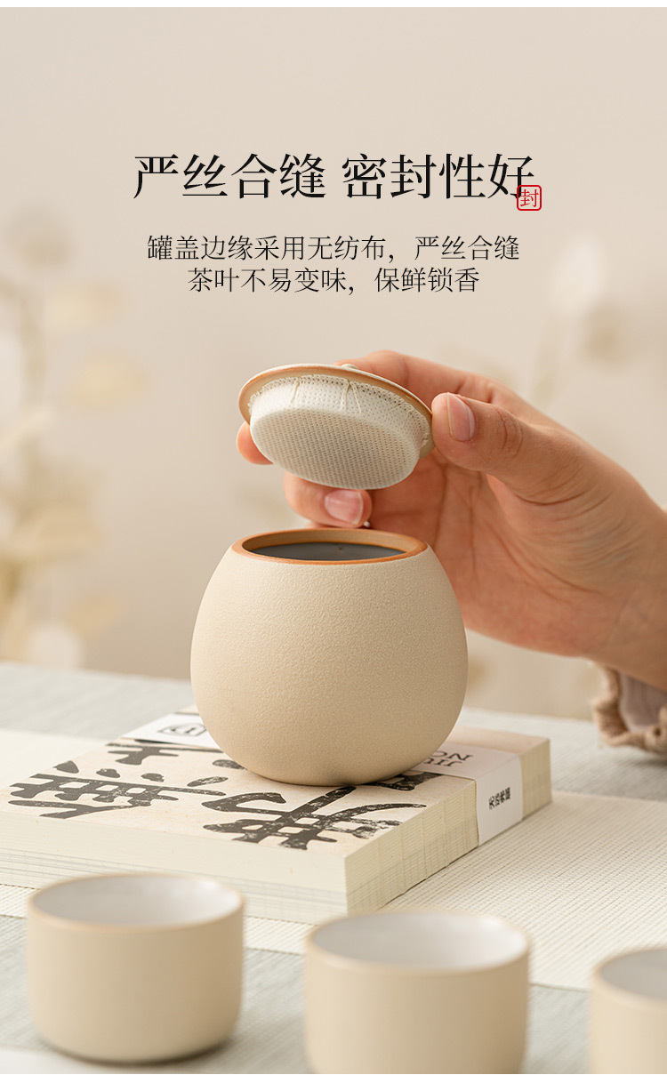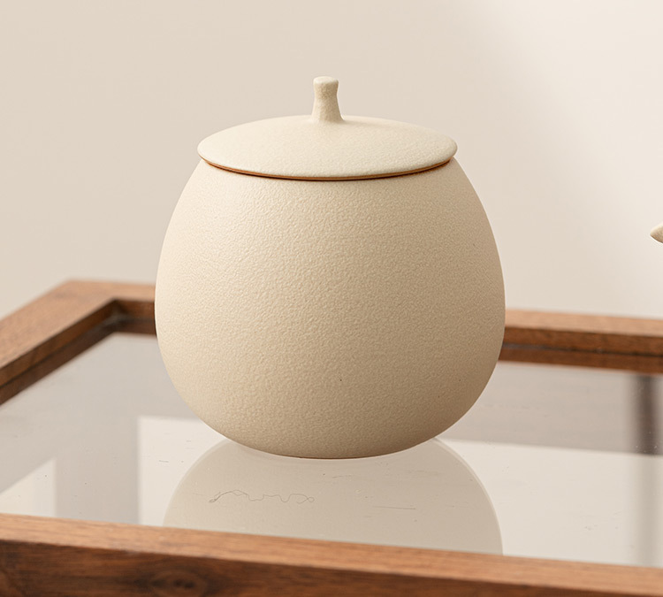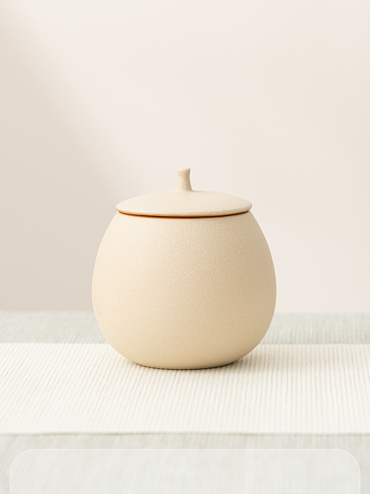 Bình đựng trà gốm sứ màu be, bình rỗng, bình nhỏ, bình đựng trà đen gia dụng Pu'er Long Tỉnh, bình đựng trà chống ẩm