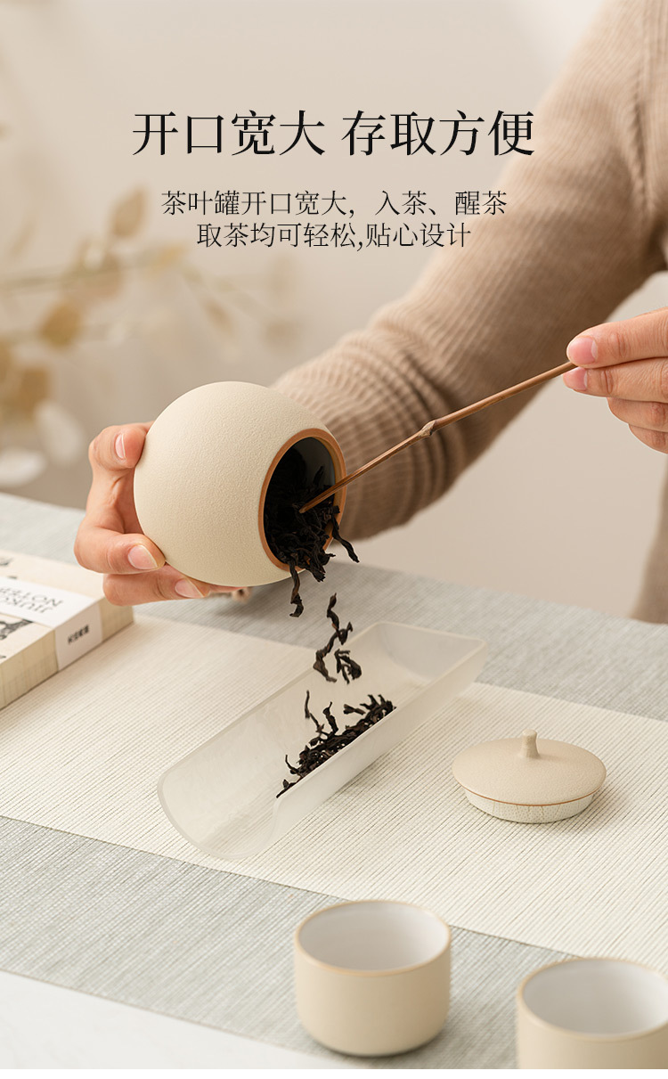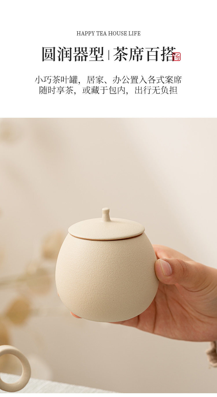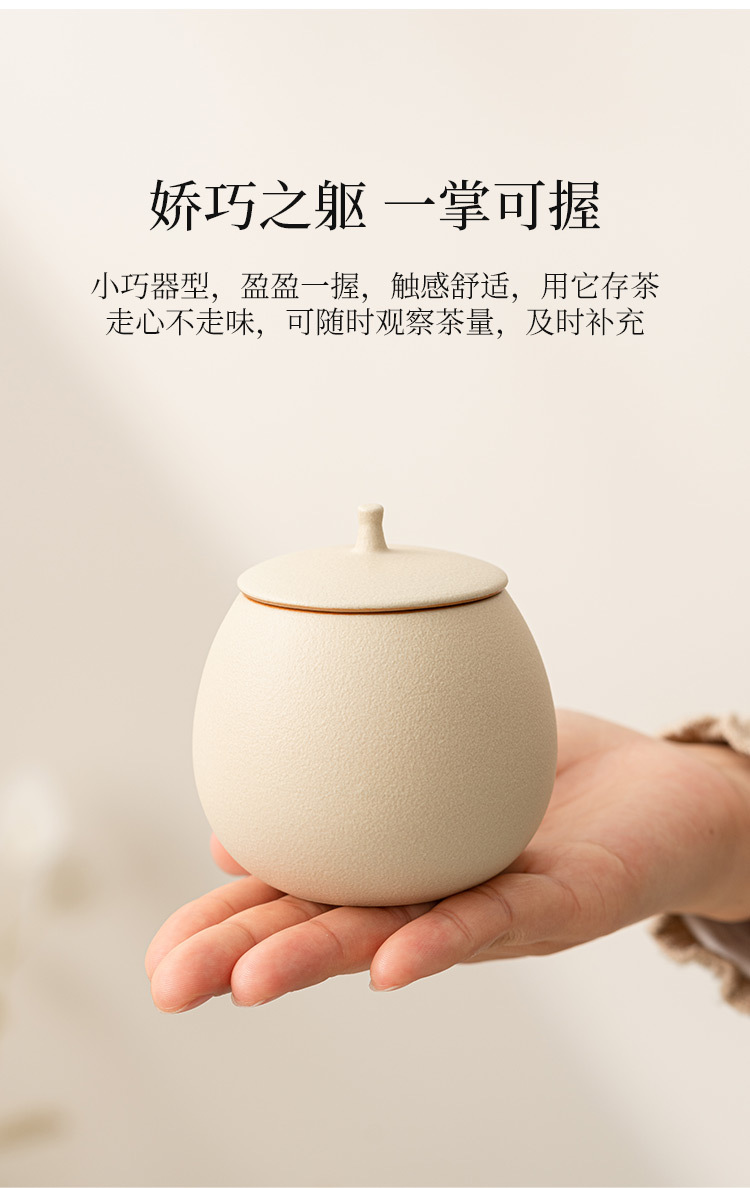 - Bình đựng trà gốm sứ màu be, bình rỗng, bình nhỏ, bình đựng trà đen gia dụng Pu'er Long Tỉnh, bình đựng trà chống ẩm