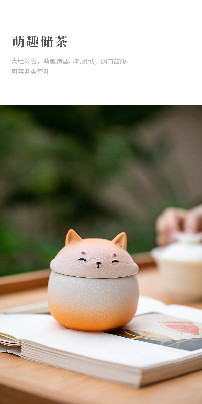Bình đựng trà thú cưng dễ thương sáng tạo, Bình Đựng Trà Shiba Inu, bình đựng bằng gốm Sứ chống ẩm, bình trà du lịch xách tay mini