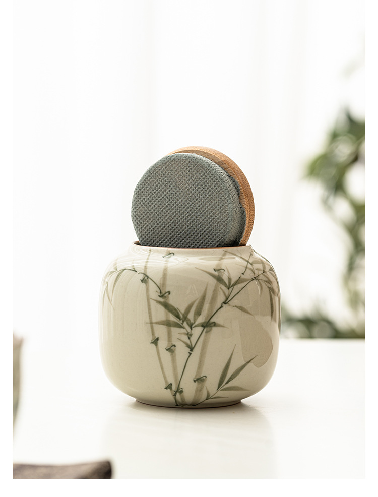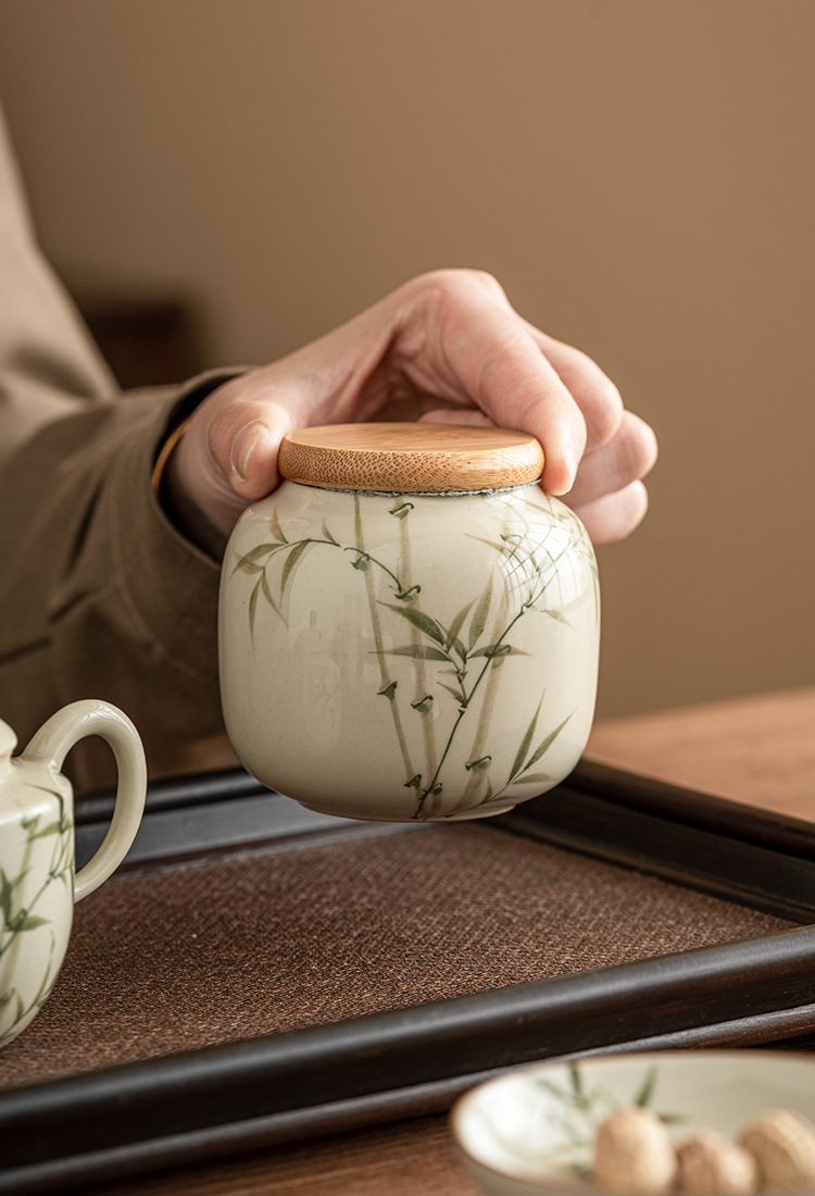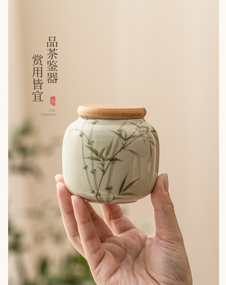 Bình đựng trà xanh ngọc lục bảo, bình đựng trà gốm sứ, ngăn trà xanh Pu'er cao cấp kiểu Trung Quốc gia dụng chống ẩm, cỡ nhỏ