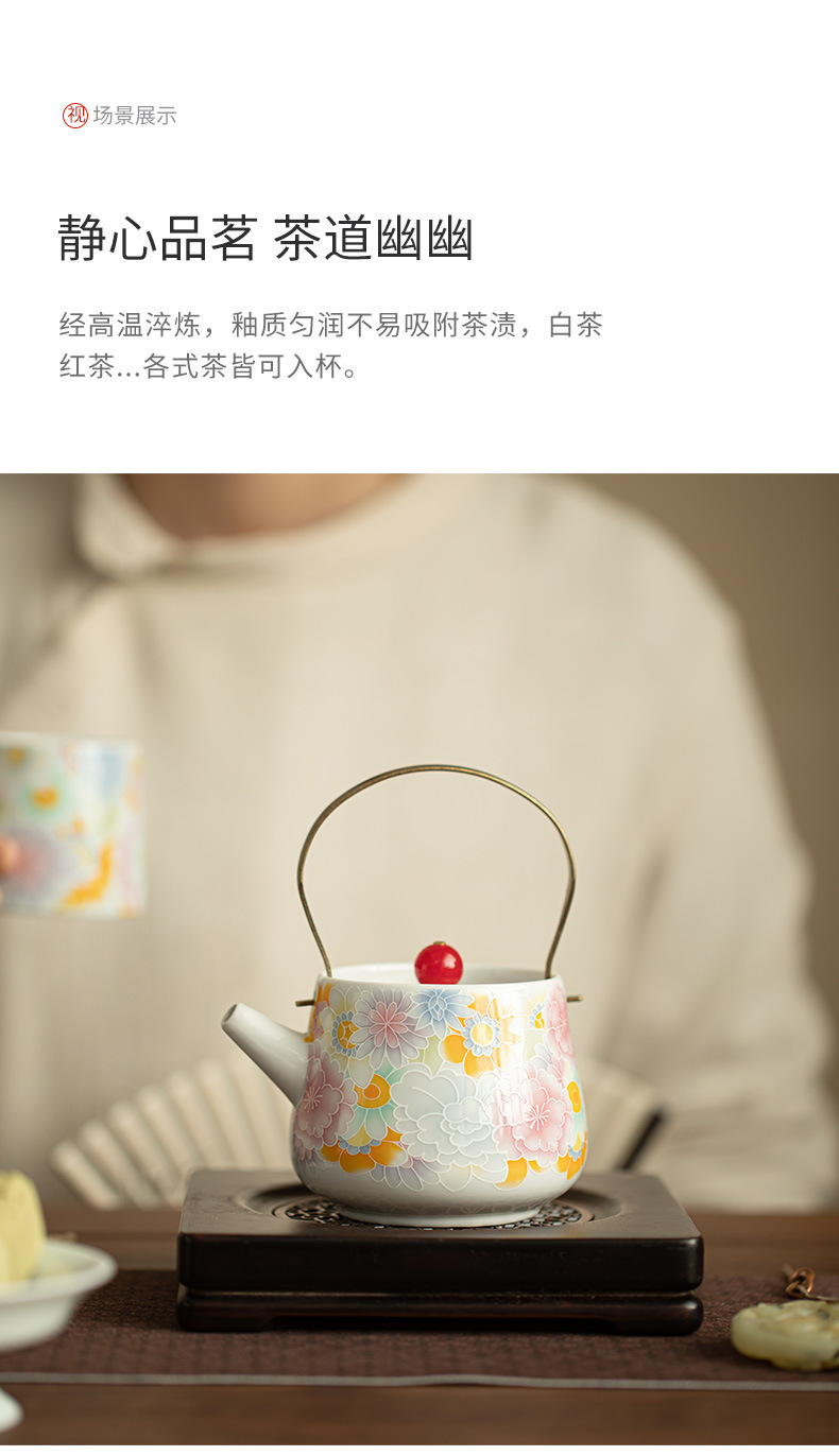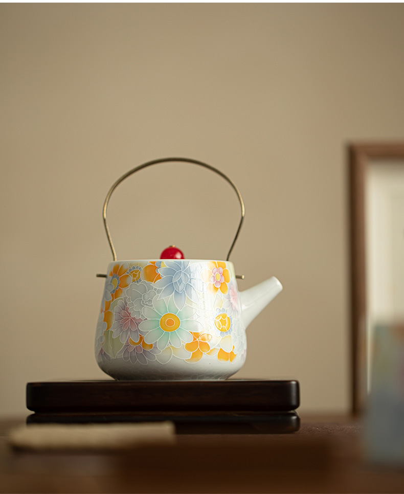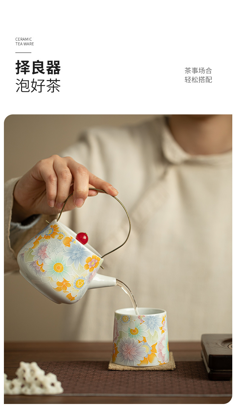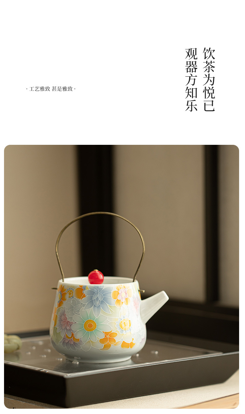 - Bình đựng xà đa hoa tráng men cổ bình đơn đồ pha trà gốm sứ dụng cụ pha trà kungfu sang trọng nhẹ gia dụng kiểu Trung Quốc