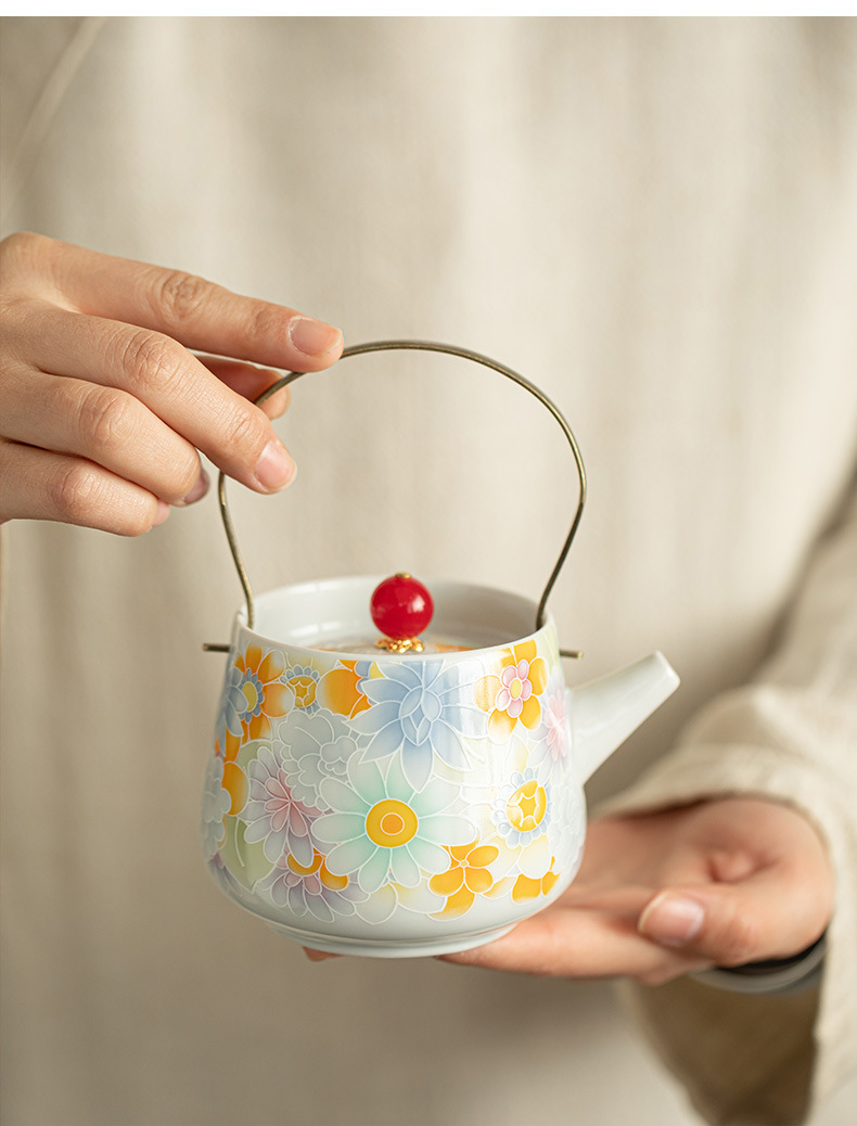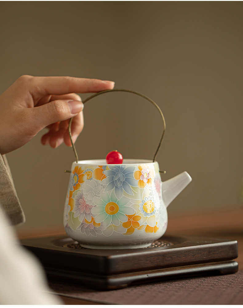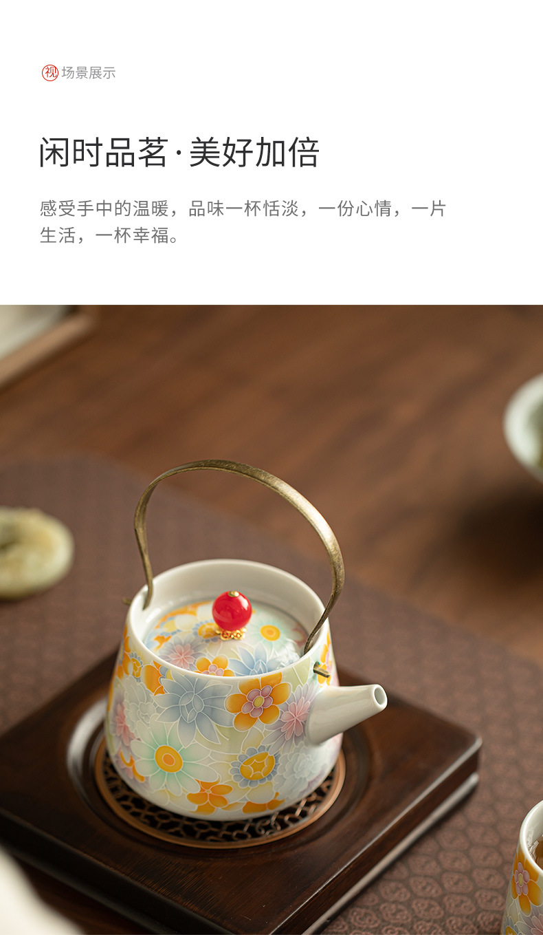 Bình đựng xà đa hoa tráng men cổ bình đơn đồ pha trà gốm sứ dụng cụ pha trà kungfu sang trọng nhẹ gia dụng kiểu Trung Quốc
