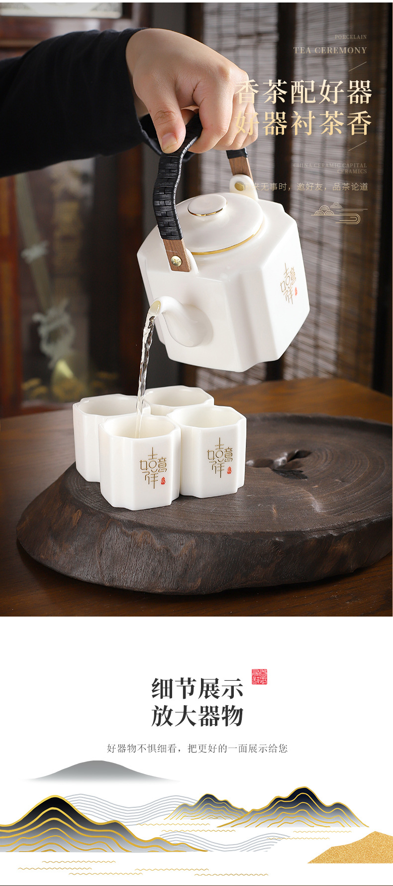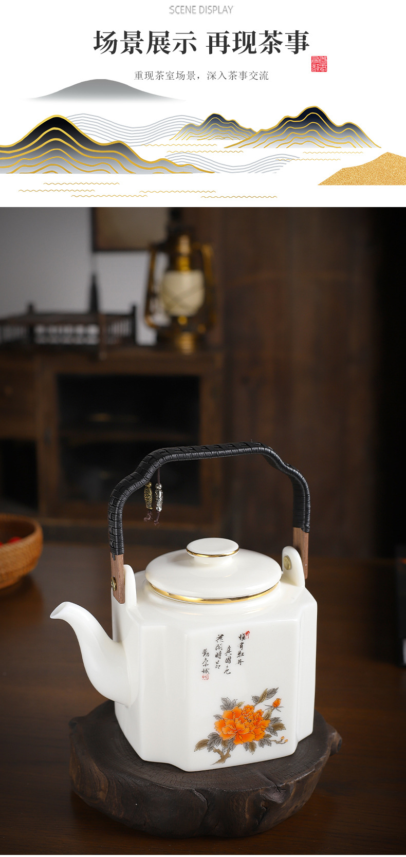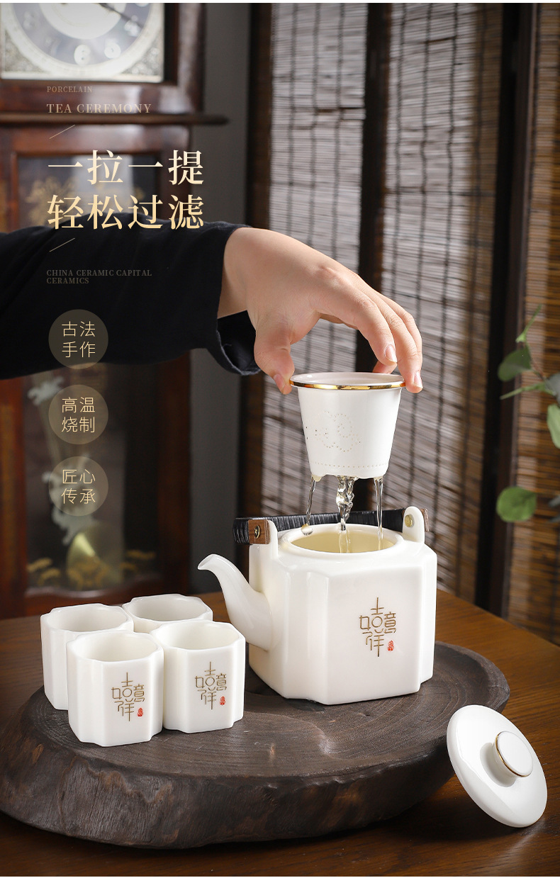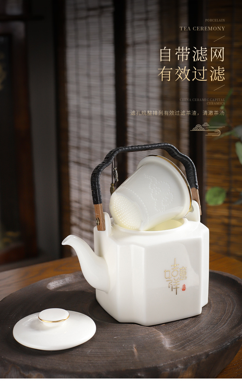 Bình đựng xà mang dung tích lớn kiểu Trung Quốc bình đơn 1100 ml có lót lọc gốm sứ bình pha trà bình làm mát bình gia dụng