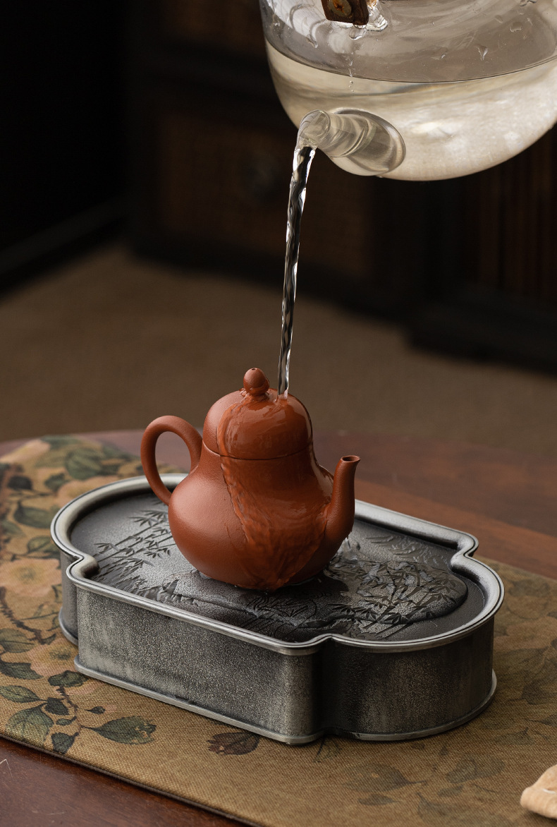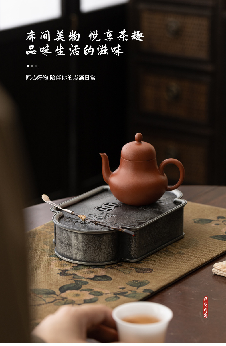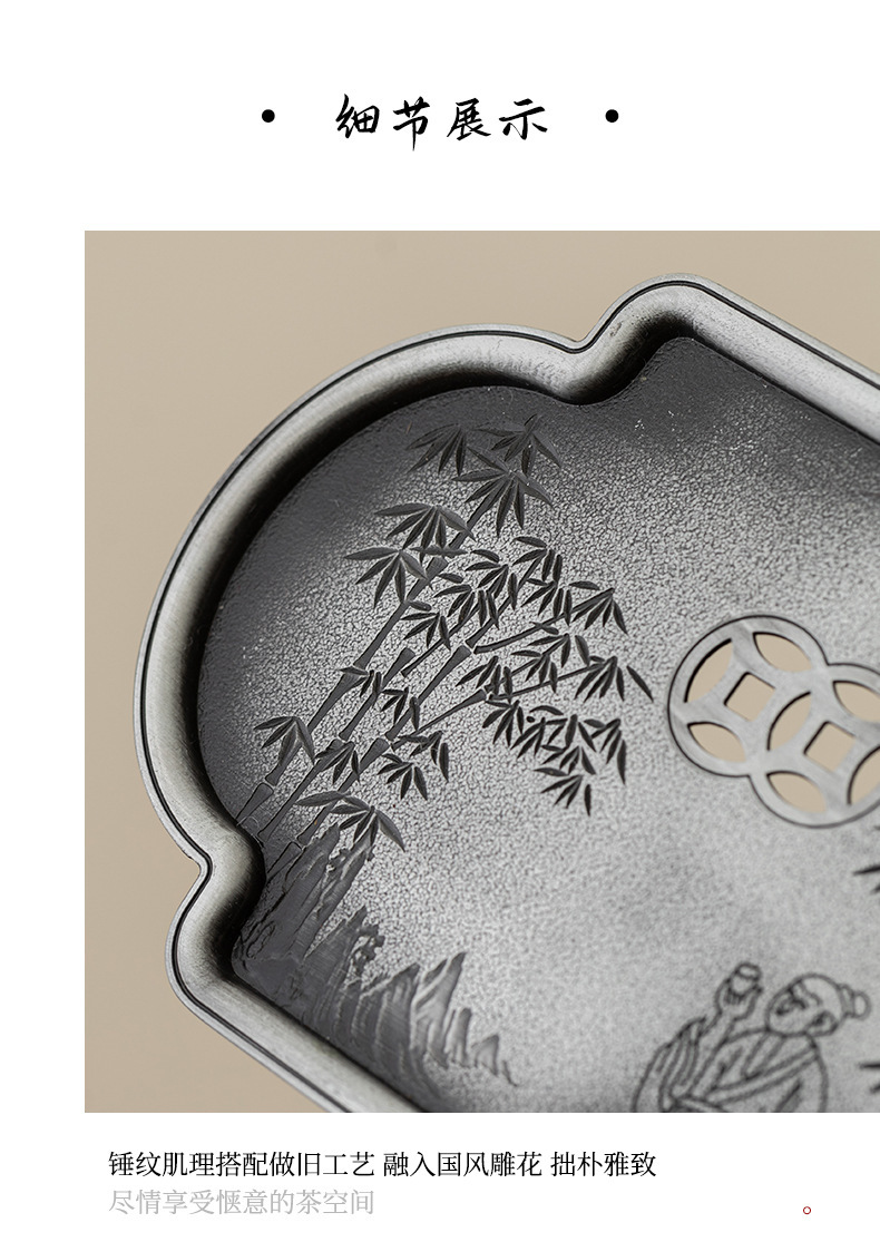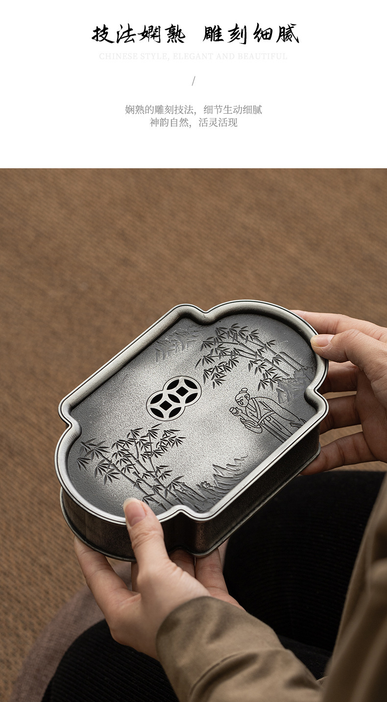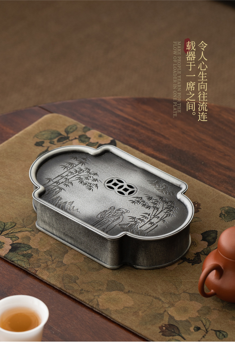 - Bình hợp kim cổ điển kiểu Nhật, khay pha khô cũ, khay pha trà, khay đựng cốc trà, khay chứa nước trà đạo, khay rửa bình