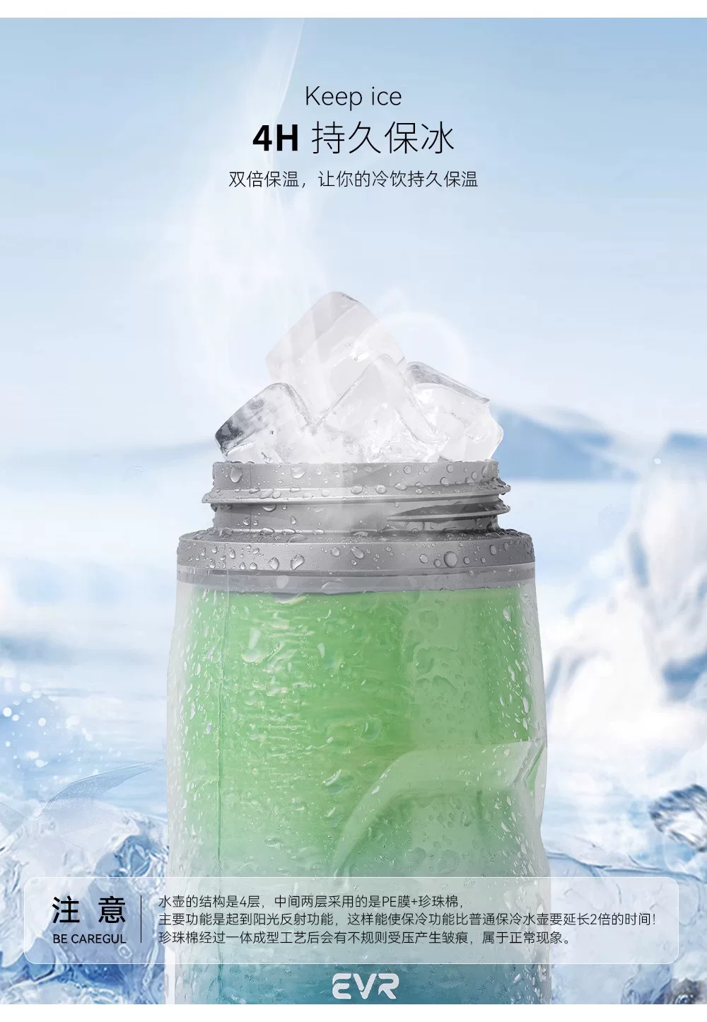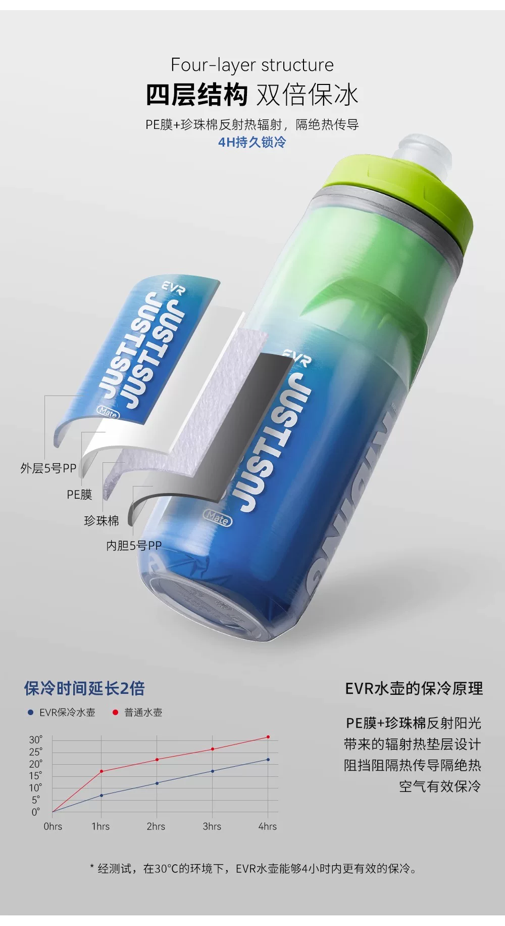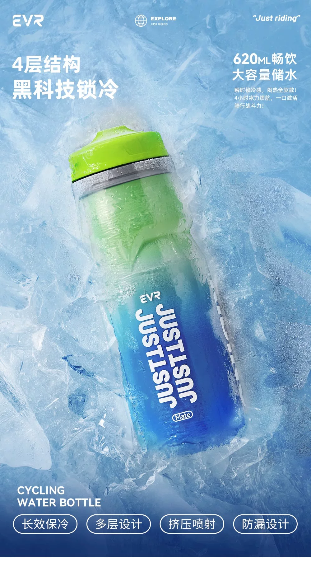 Bình nước xe đạp cách nhiệt EVR, cốc nước thể thao giữ lạnh cho xe đạp đường trường, bình nước ép đá dung tích lớn dành cho nam và nữ mùa hè