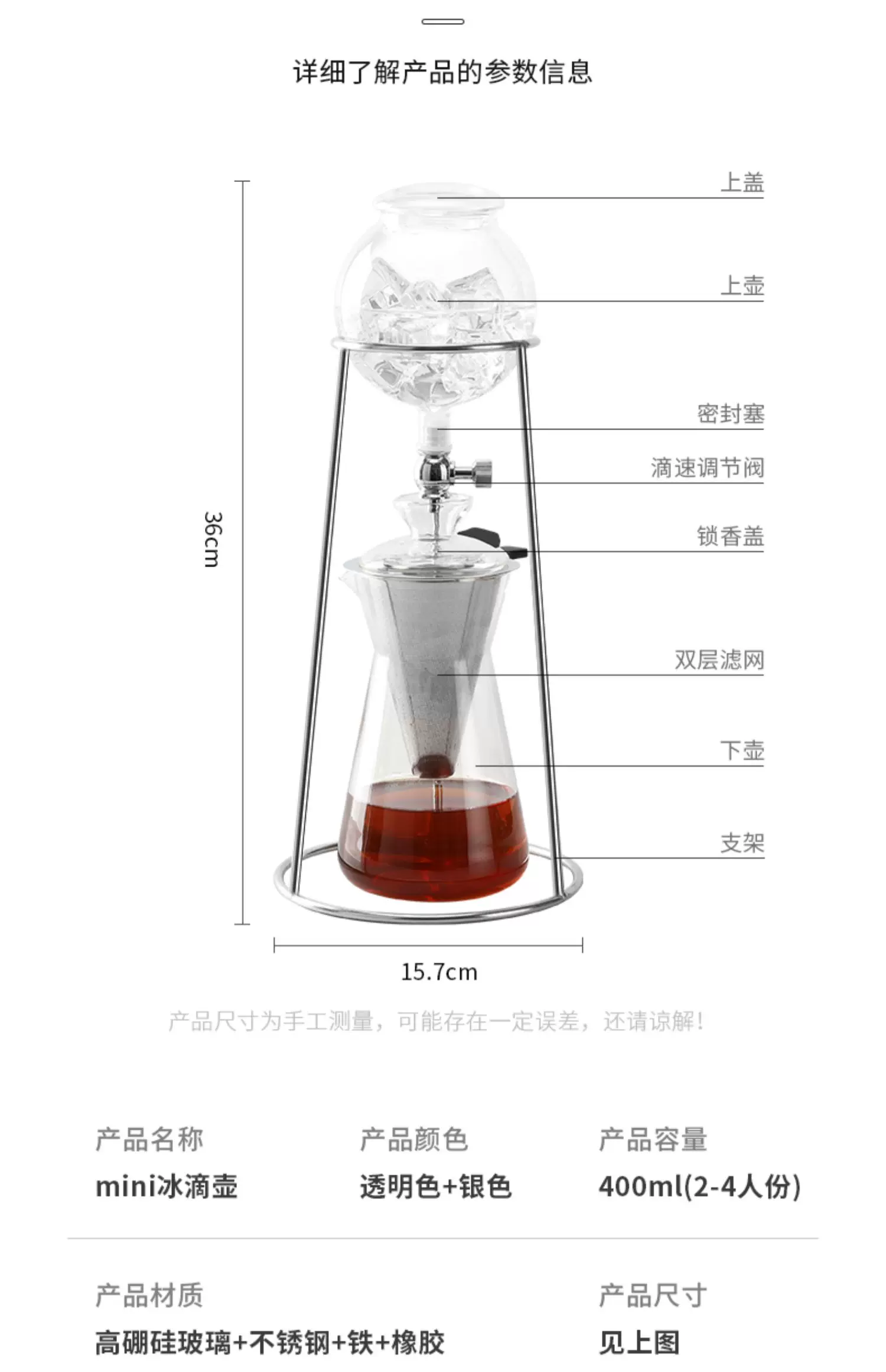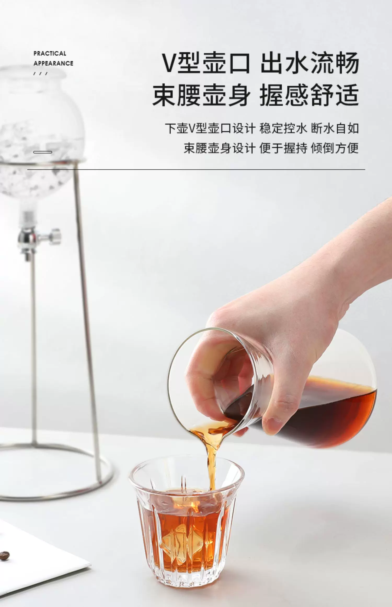 Bình pha cà phê đá Mongdio, bình pha cà phê lạnh, bình pha cà phê gia dụng dung tích lớn bằng thủy tinh, bình lọc cà phê nhỏ giọt