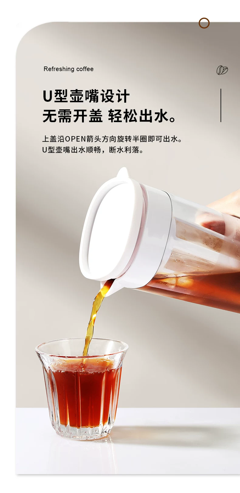 Bình pha cà phê lạnh Mongdio, bình lọc cà phê lạnh gia dụng, ấm pha trà lạnh bằng thủy tinh, dung tích lớn, cốc pha cà phê lạnh