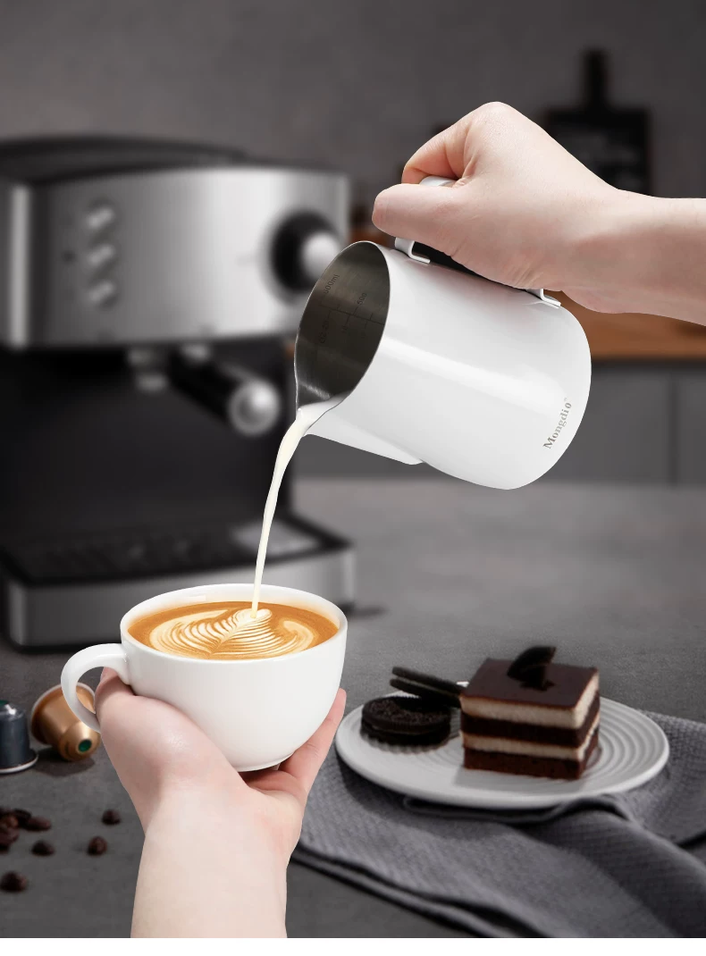 - Bình pha cà phê Latte có vòi nhọn, bình tạo bọt sữa chuyên nghiệp, dụng cụ pha cà phê bằng thép không gỉ, dụng cụ tạo hình cà phê Latte.