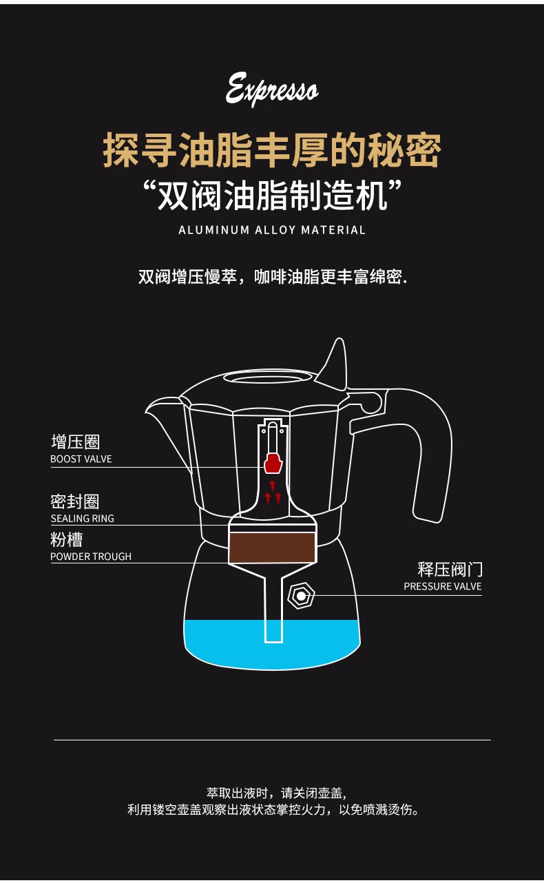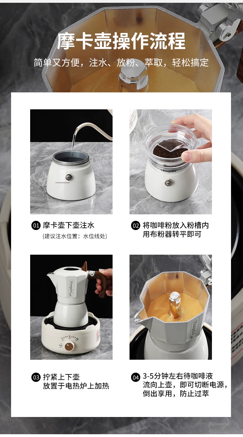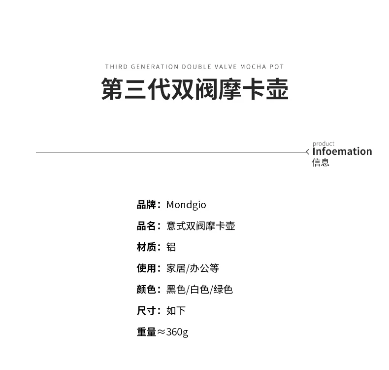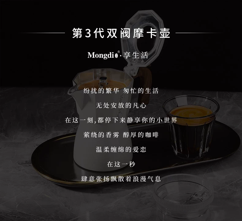 - Bình pha cà phê moka van đôi thế hệ thứ ba của Mongdio để pha cà phê, bình pha cà phê moka gia đình nhỏ, máy pha cà phê espresso
