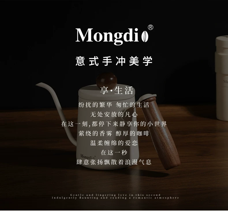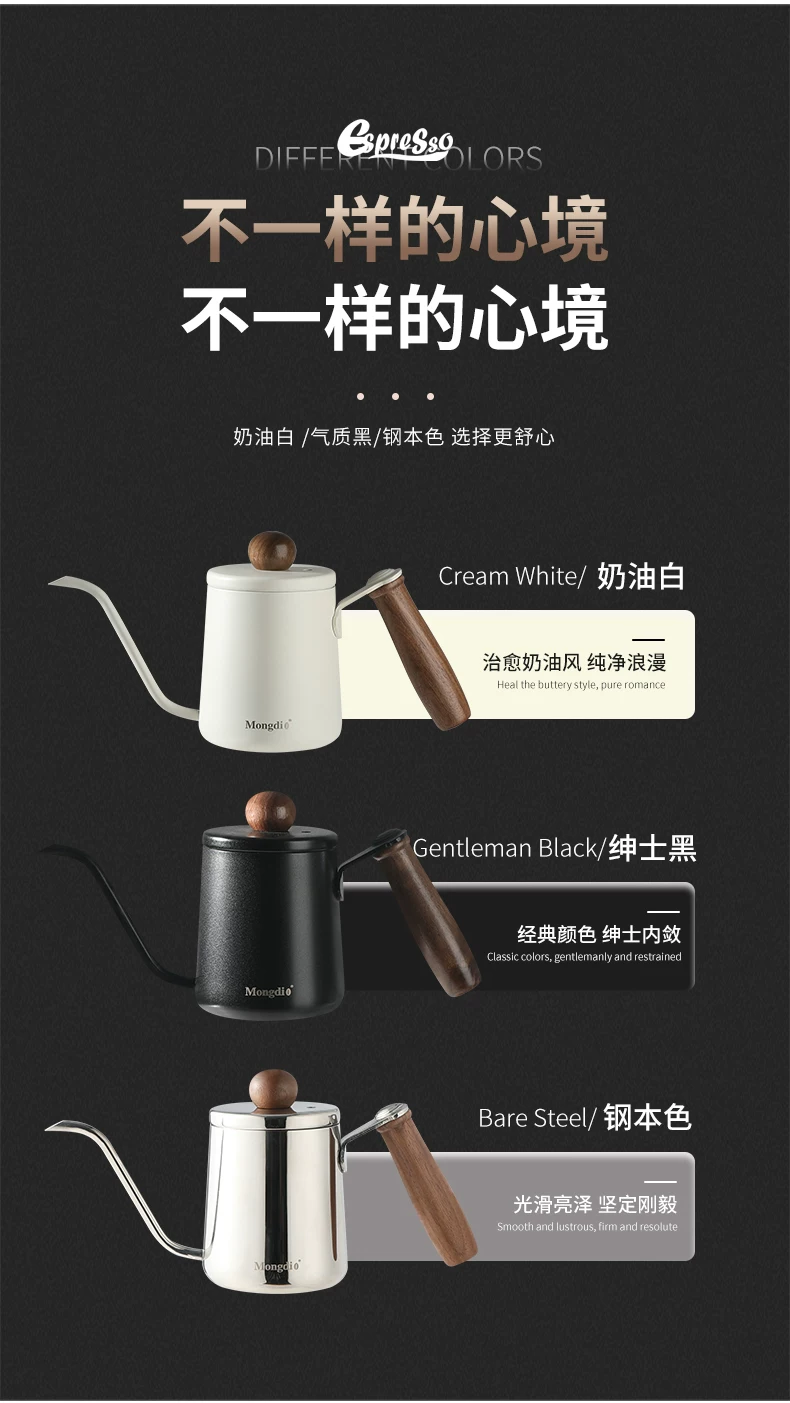 - Bình pha cà phê Mongdio, ấm đun nước pha cà phê, cà phê nhỏ giọt, ấm đun nước bằng thép không gỉ có vòi dài, miệng hẹp, thẩm mỹ cao, ấm đun nước rót nước.
