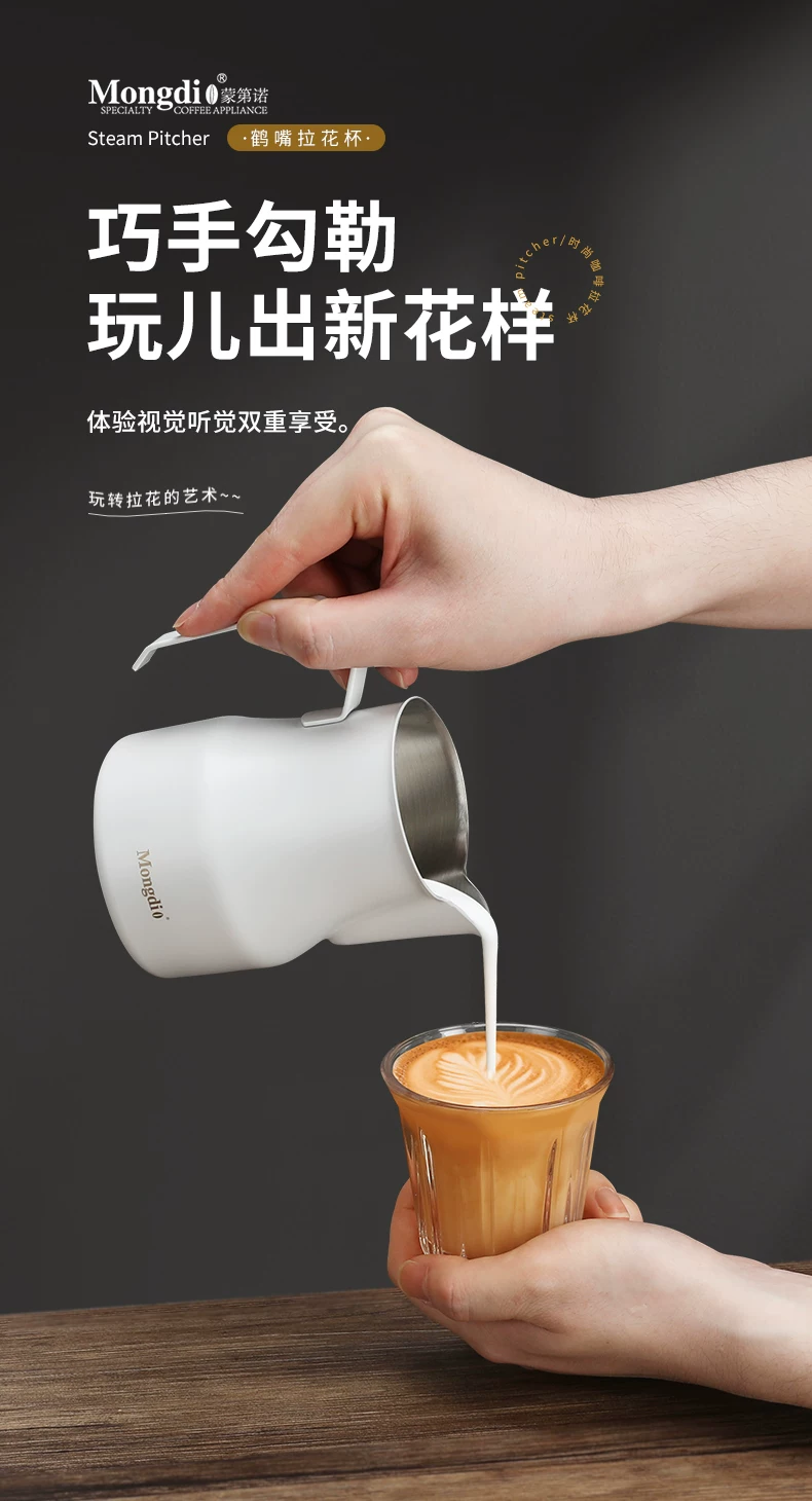 Bình pha cà phê Mongdio, cốc pha cà phê latte art, cốc tạo bọt sữa, cốc cà phê đặc biệt bằng thép không gỉ espresso latte art
