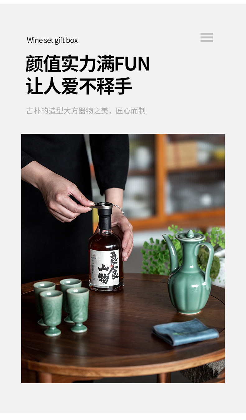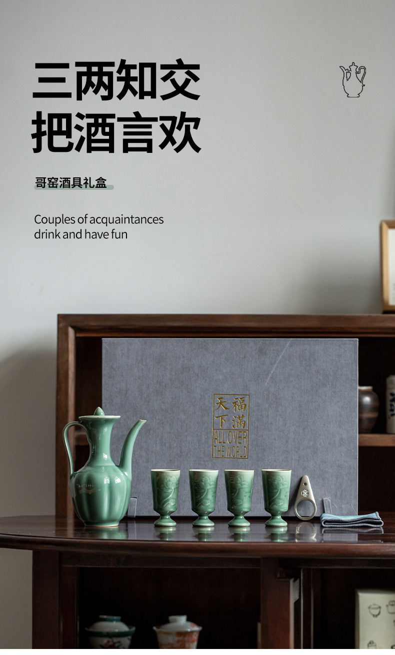 - Bình rượu gia dụng giả Song Ge Kiln Bộ gốm sứ Bình rượu nóng cổ điển hoài cổ
