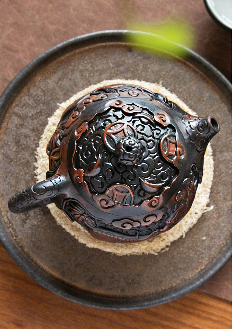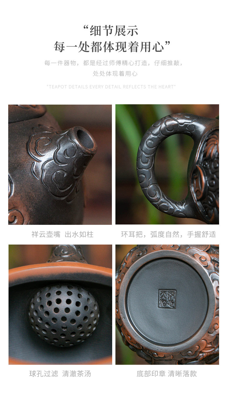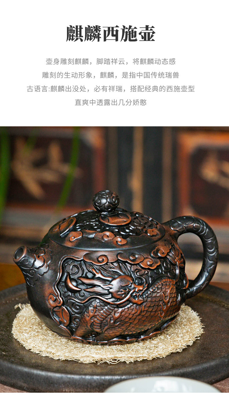 - Bình sành tím Vân Nam Kirin Xi Shi chạm khắc thủ công bình pha trà Jianshui hoàn toàn bằng tay dụng cụ pha trà Kung Fu gia dụng