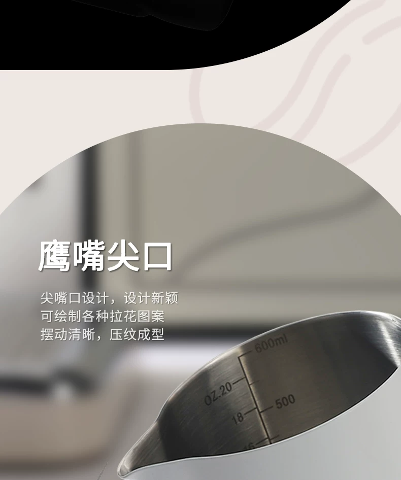 Bình tạo bọt sữa bằng thép không gỉ chuyên dụng, kiểu dáng chuyên nghiệp, vòi nhọn, dùng cho pha cà phê Latte Art tại nhà.