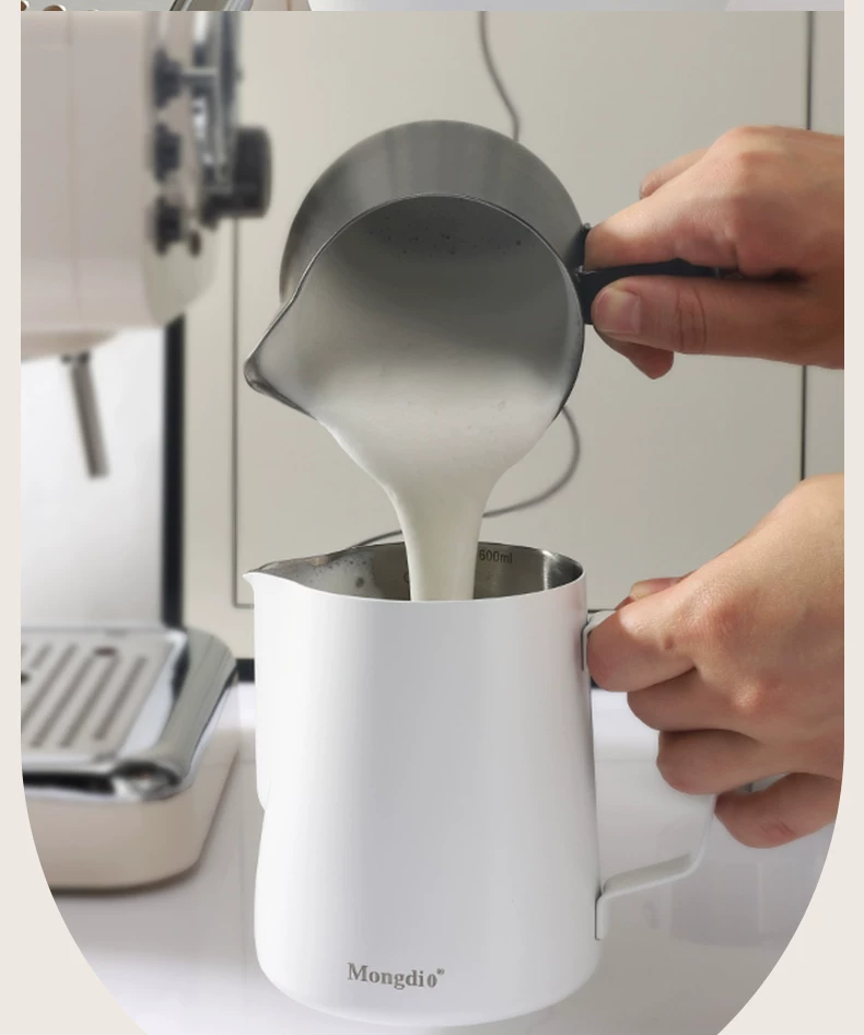 - Bình tạo bọt sữa bằng thép không gỉ chuyên dụng, kiểu dáng chuyên nghiệp, vòi nhọn, dùng cho pha cà phê Latte Art tại nhà.