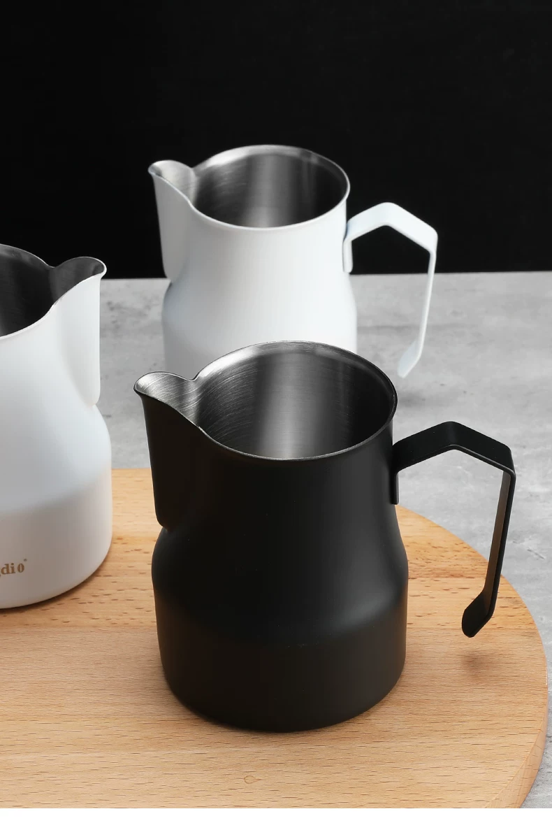 Bình tạo bọt sữa Latte, cốc tạo bọt sữa Latte, bình tạo bọt sữa bằng thép không gỉ, bình tạo bọt sữa Latte có vòi nhọn, bình tạo bọt sữa dùng trong gia đình, cốc cà phê có vạch chia độ.