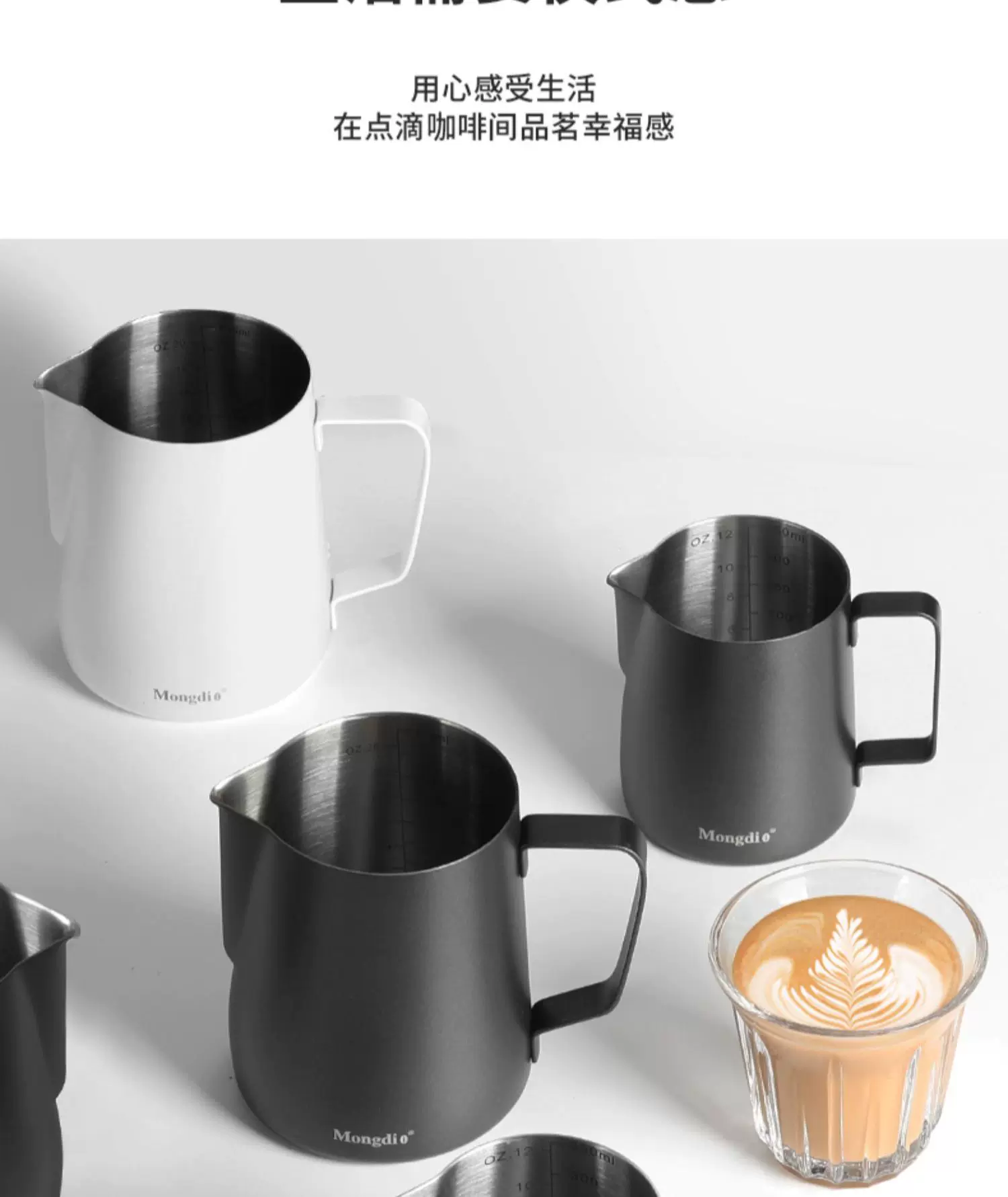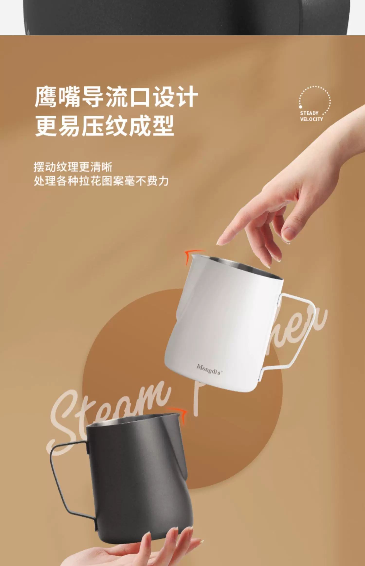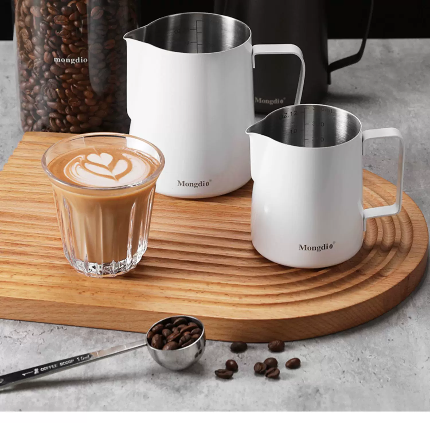 - Bình tạo bọt sữa Mongdio latte art, cốc tạo bọt sữa bằng thép không gỉ có vòi nhọn, dụng cụ tạo bọt sữa cà phê đặc biệt.