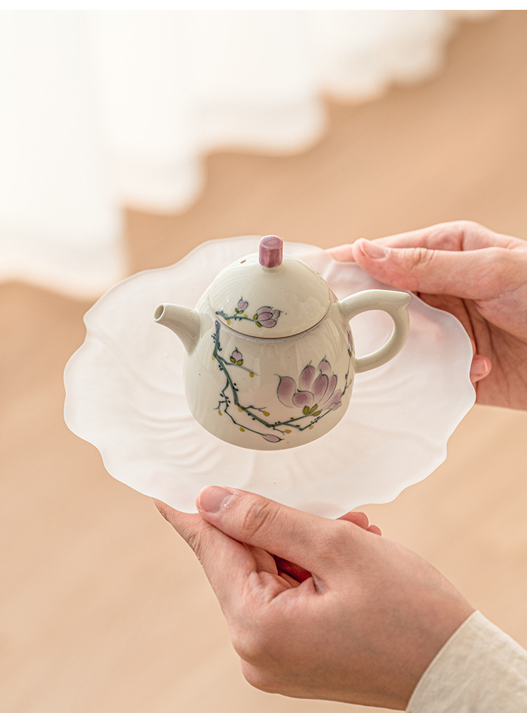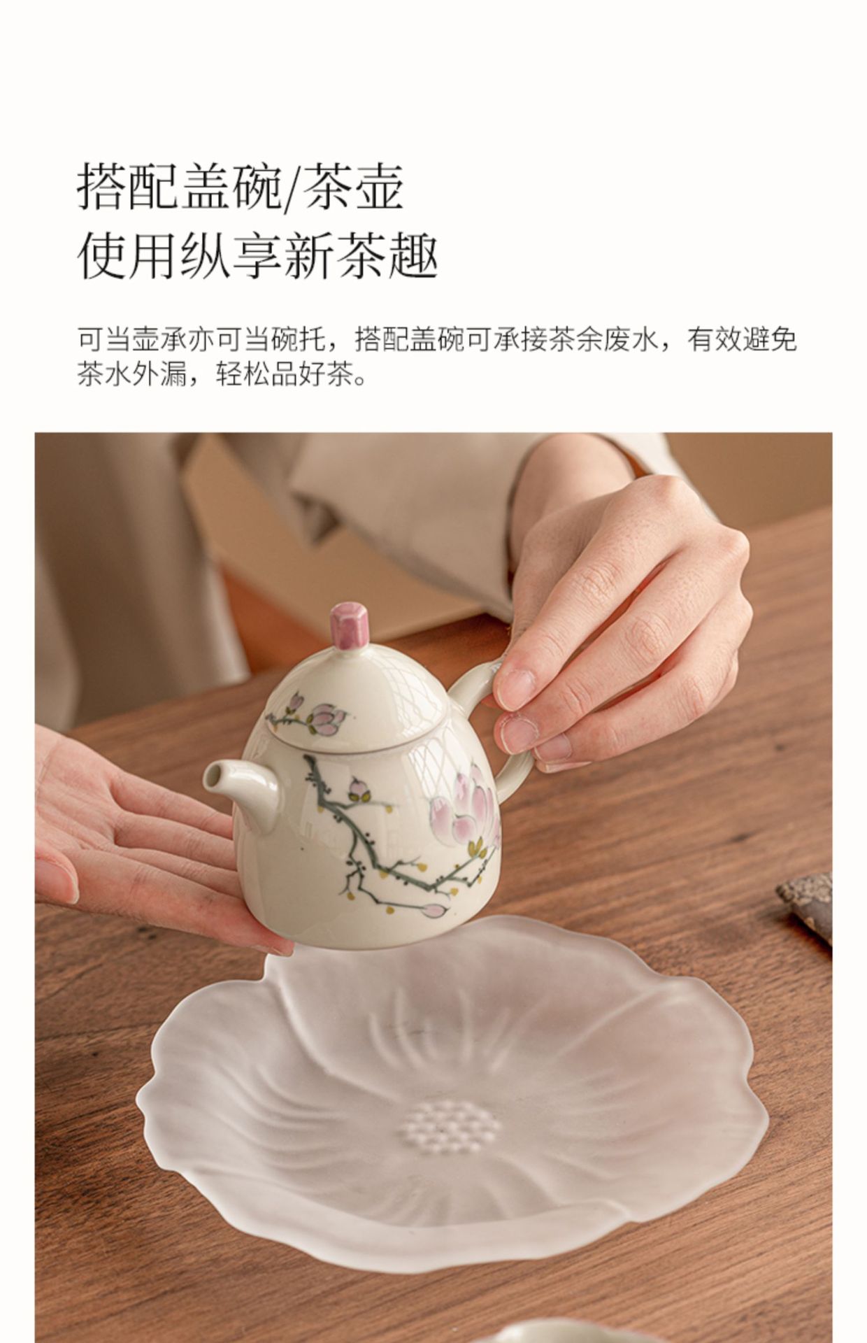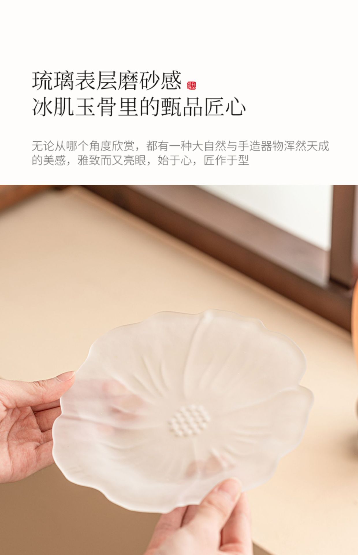- Bình thủy tinh pha lê hoa sen, đế tách trà trong suốt kiểu Đài Trung, đế ấm trà, khay đựng trà cao cấp tinh tế