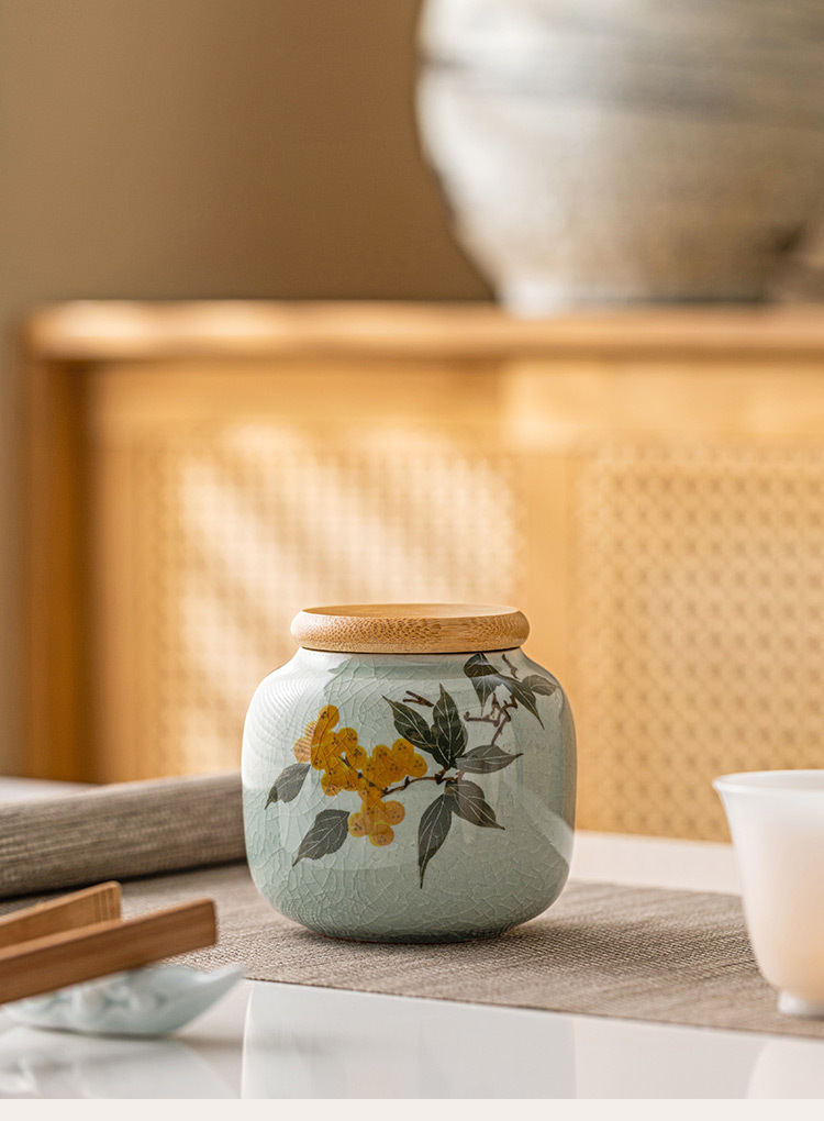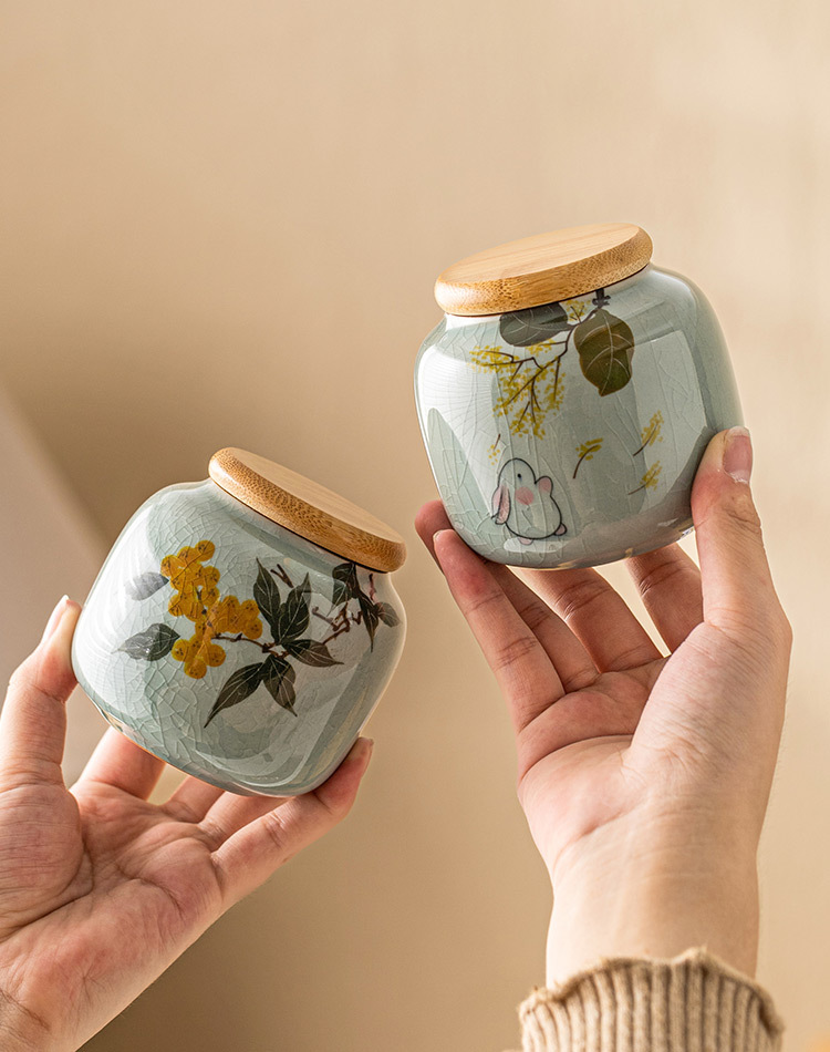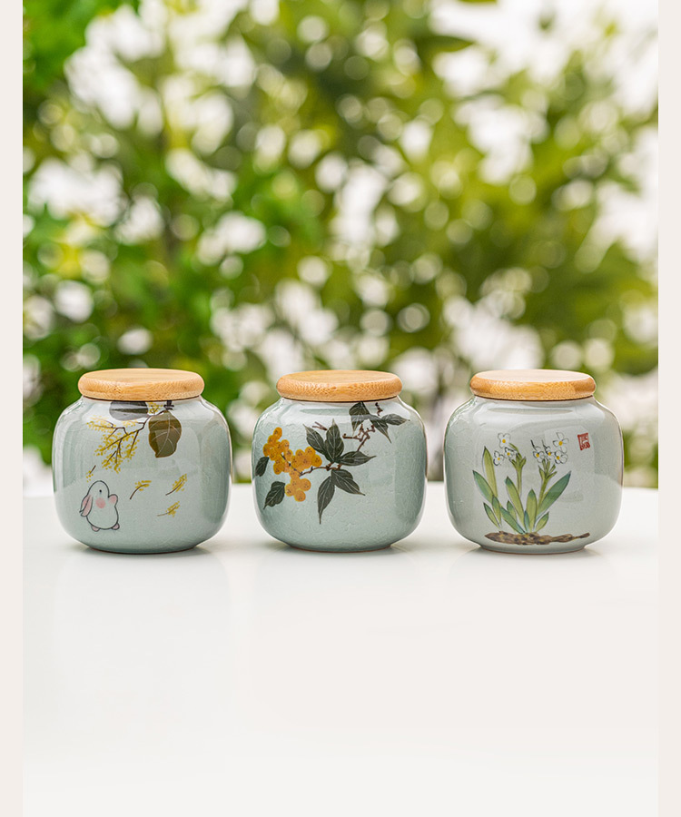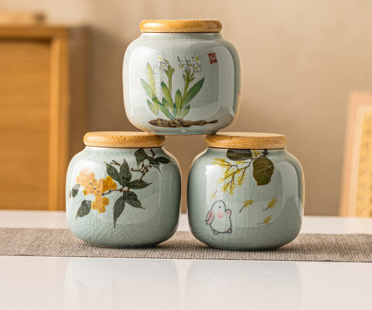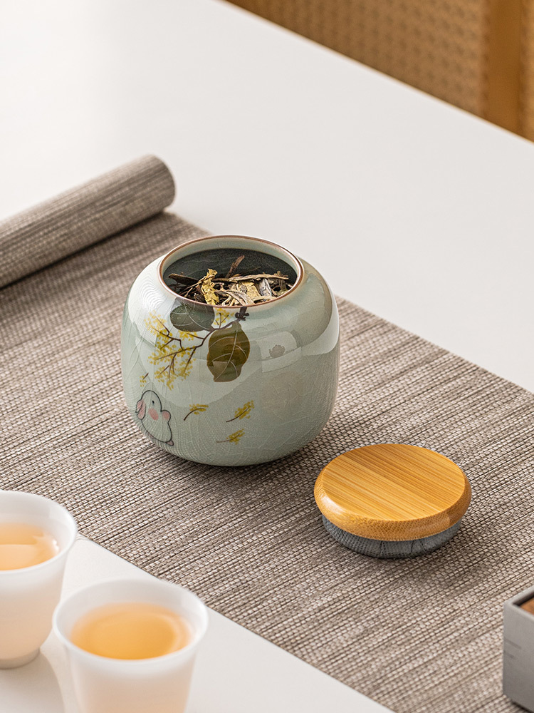 Bình trà borneol Ru Kiln bình gốm sứ mini cầm tay nhỏ bình đựng trà xanh đỏ Pu'er bình rỗng