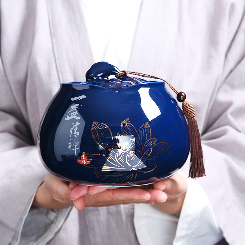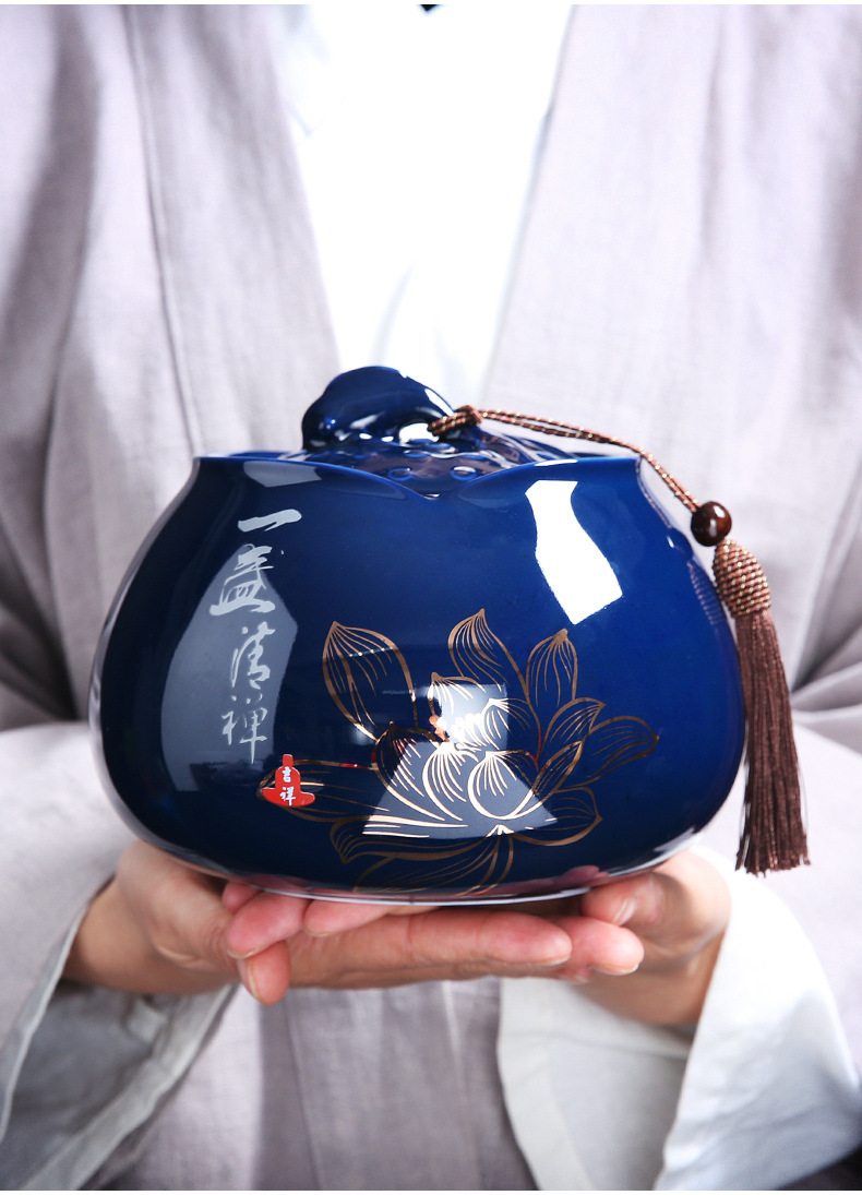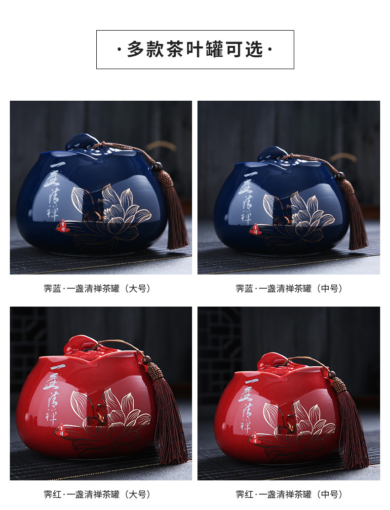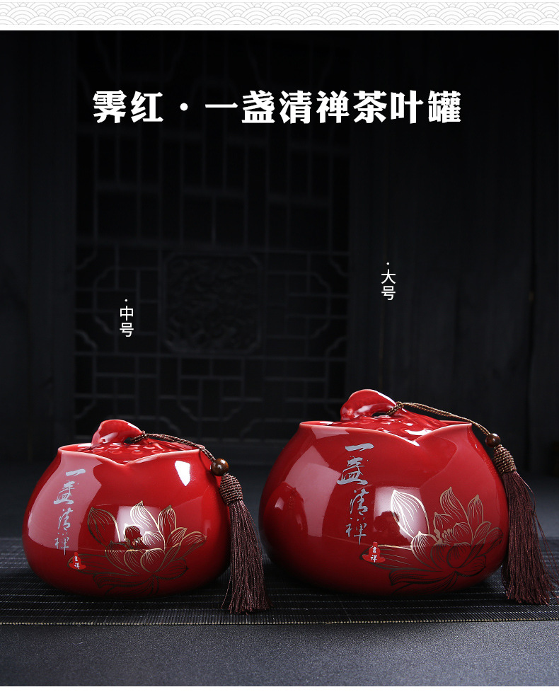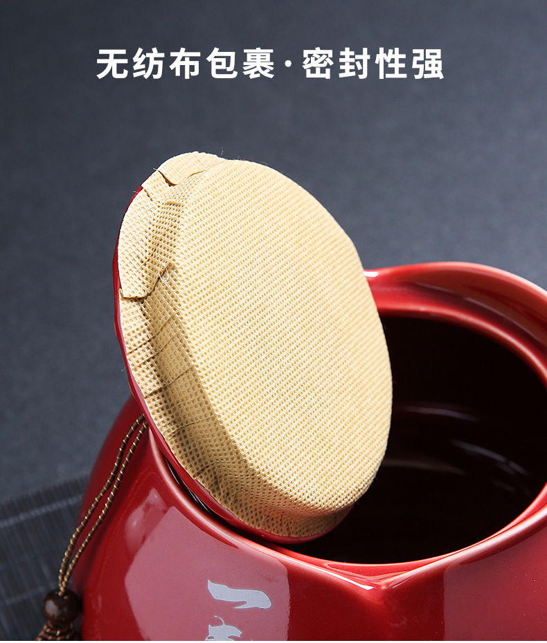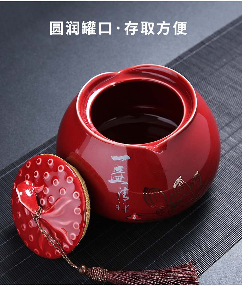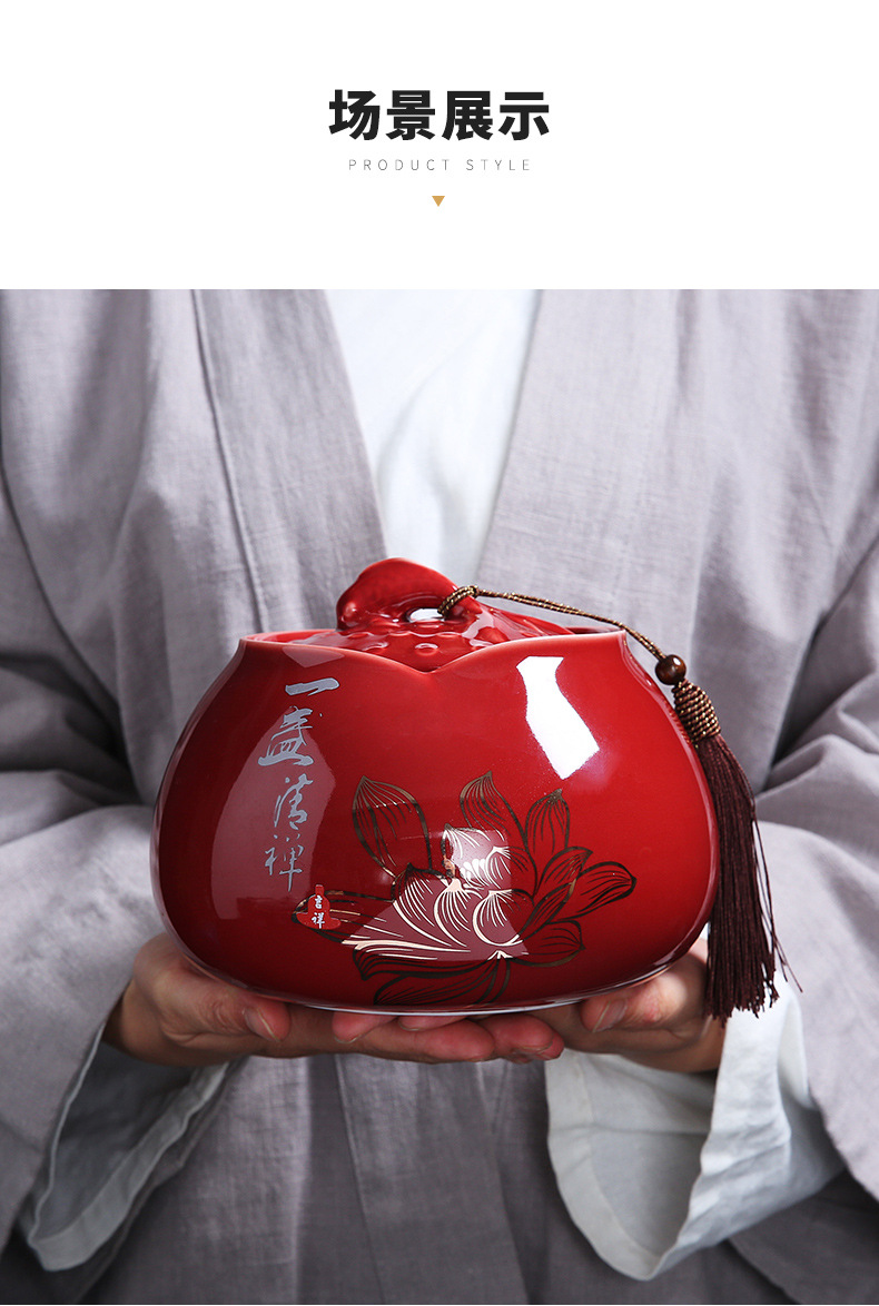 - Bình trà gốm Jilan kín gia dụng nửa catty một catty retro lớn số lớn bình trà lưu trữ màu đỏ
