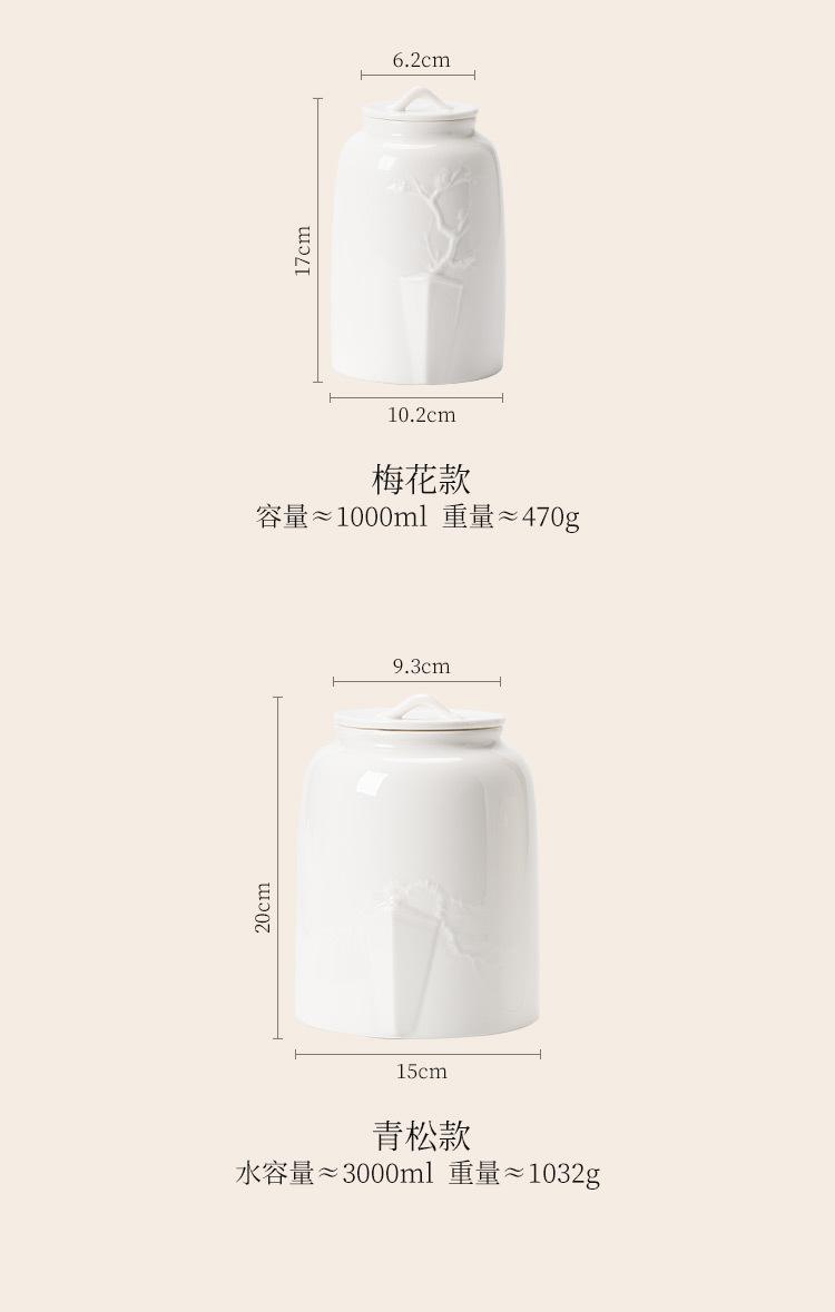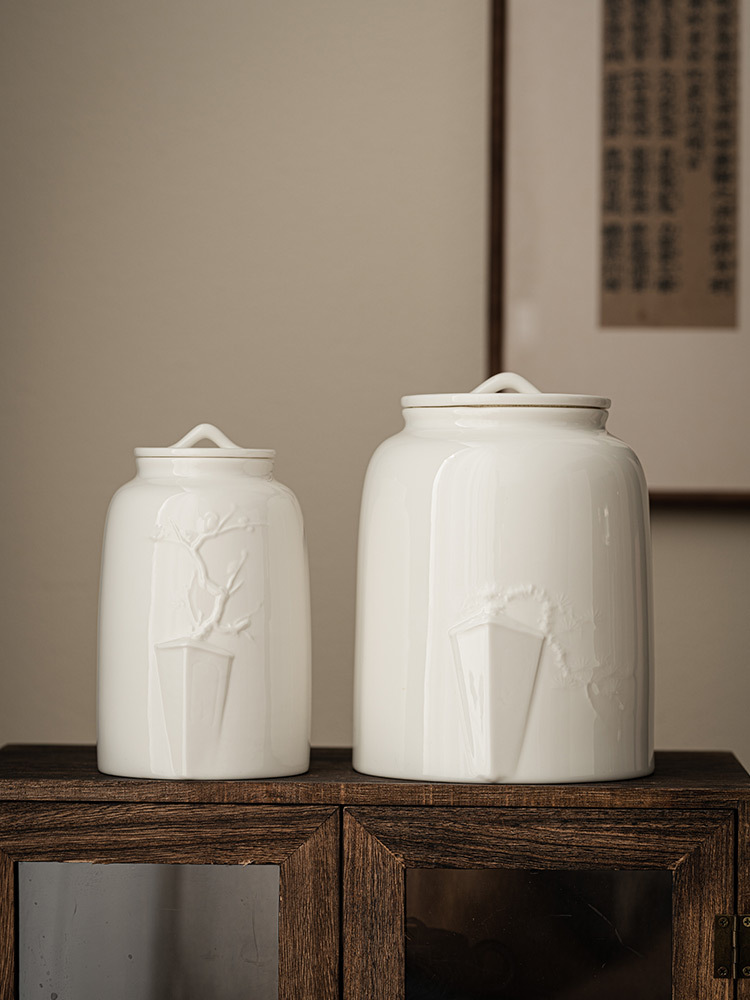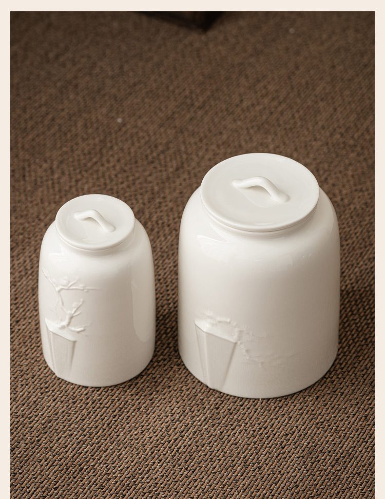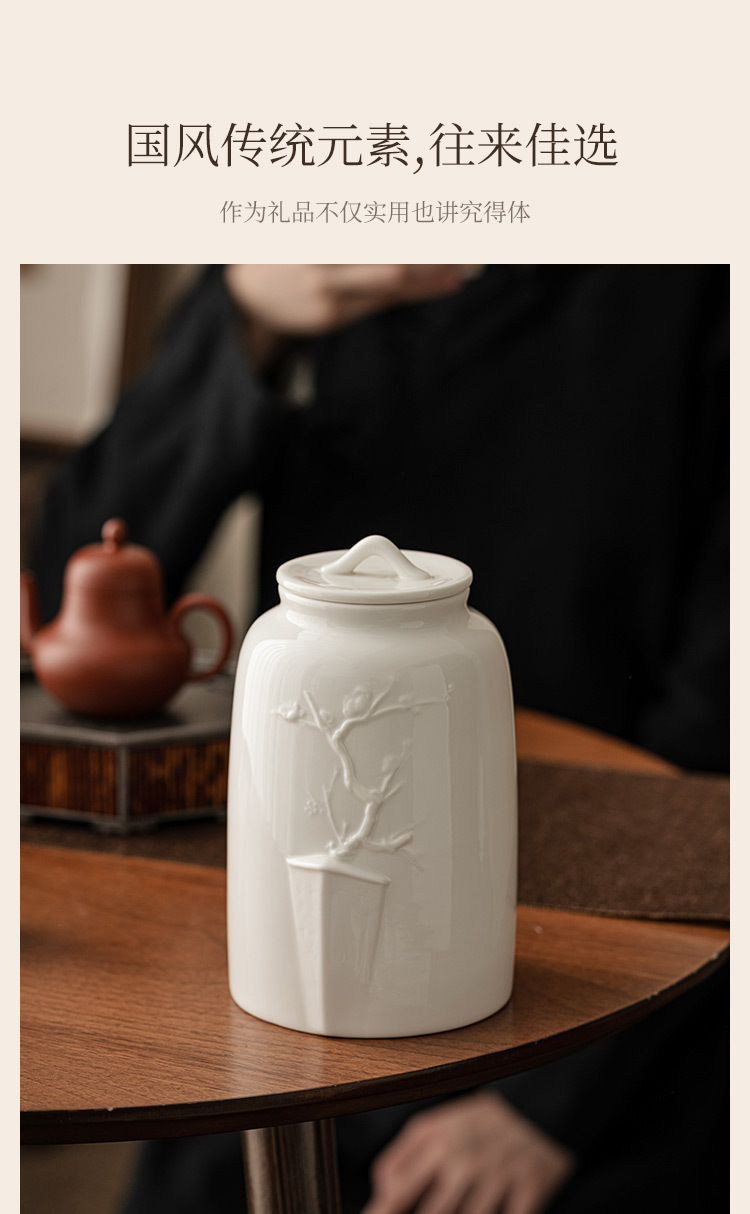 Bình trà hoa mận sứ trắng Dehua, bình kín, Bình Đựng Trà chống ẩm gia dụng, bình trà gốm sứ cao cấp cỡ lớn, bình rỗng