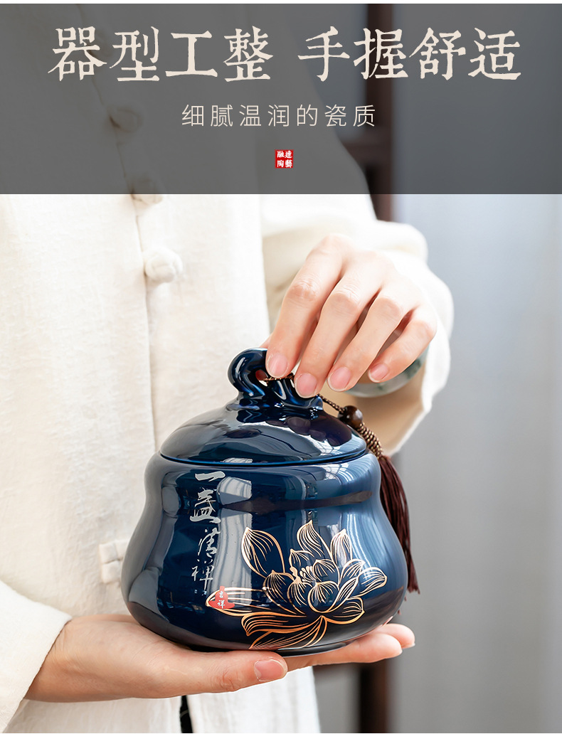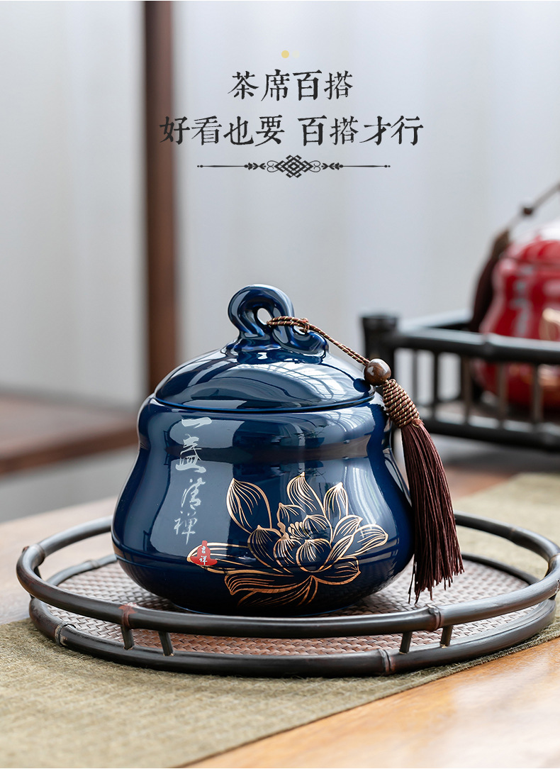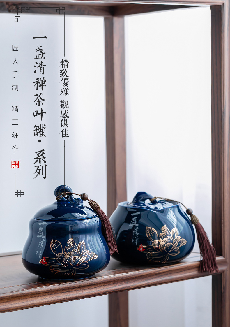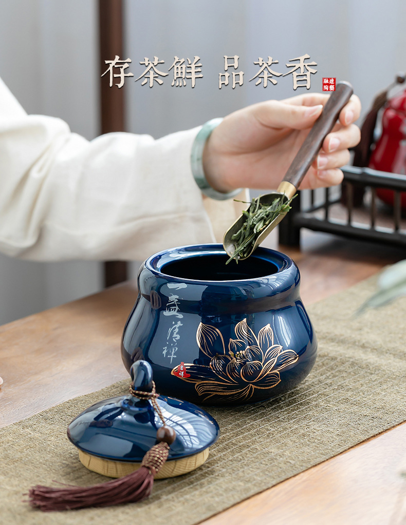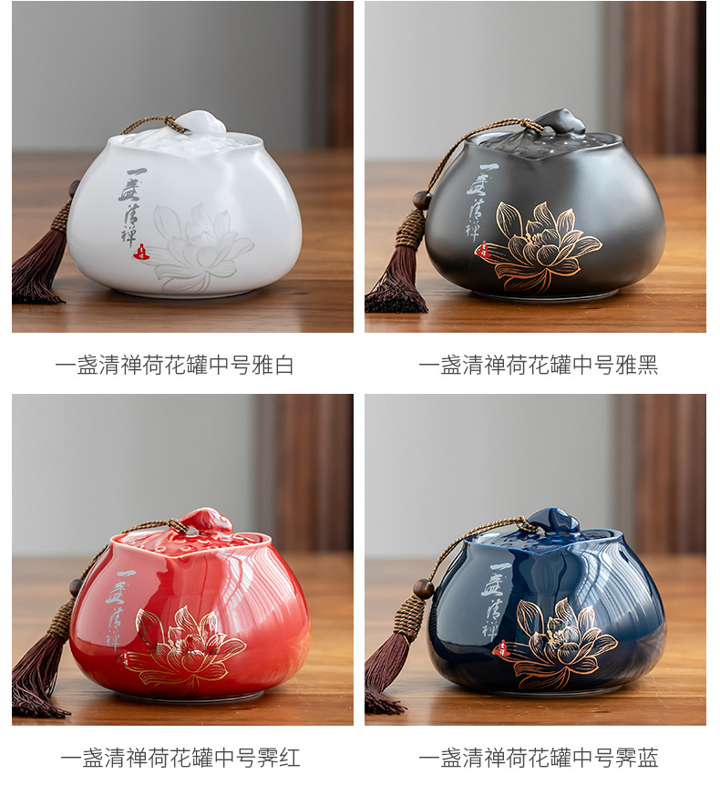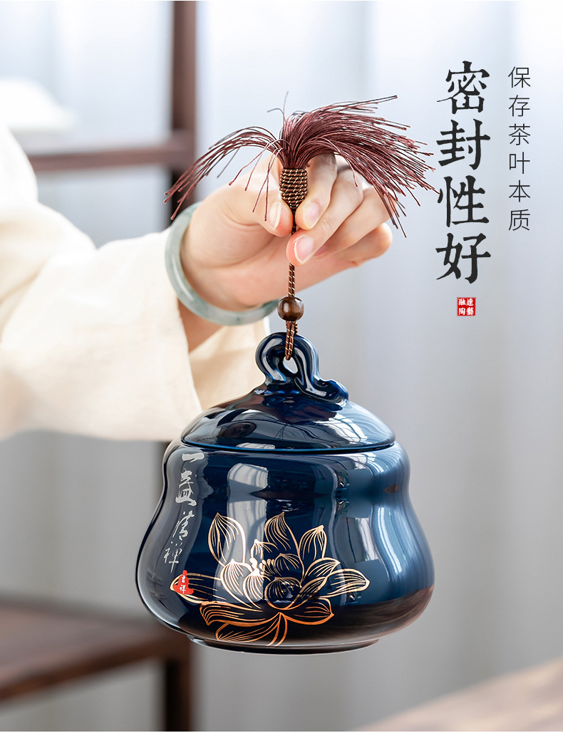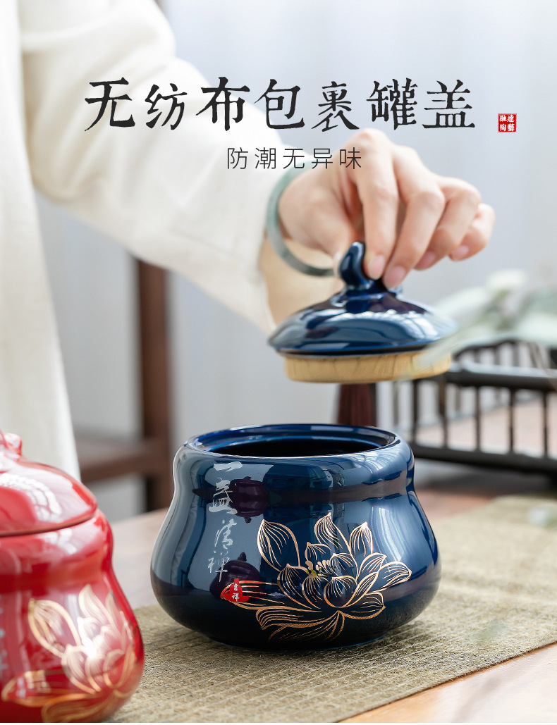 Bình trà Jilan, bình bảo quản gốm sứ, bình kín, bình trà gia dụng chống ẩm kiểu Trung Quốc, sáng tạo phong cách dân tộc, trà xanh đỏ, trắng