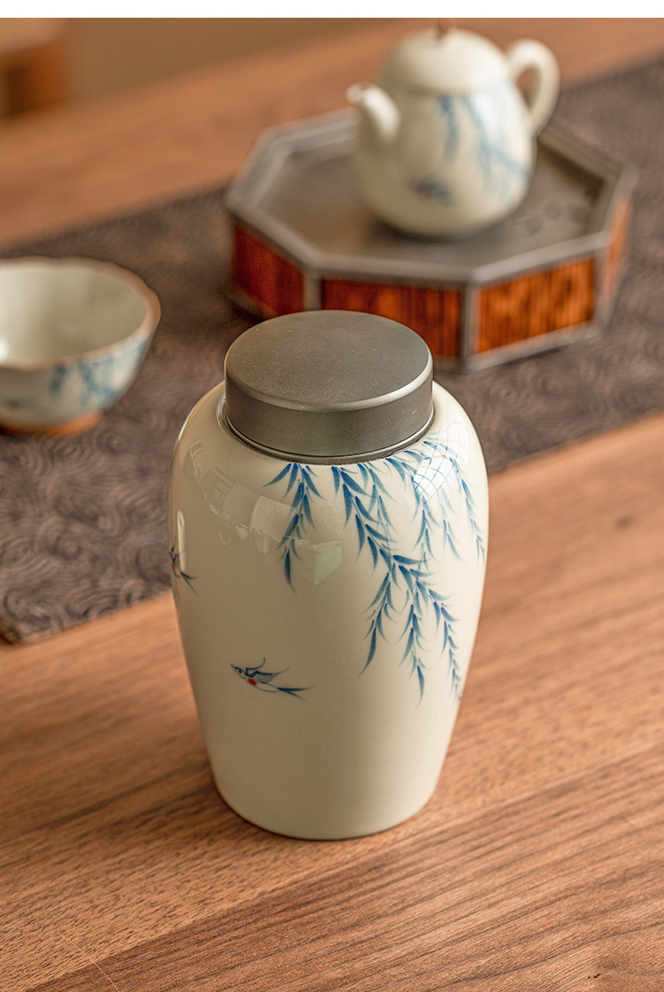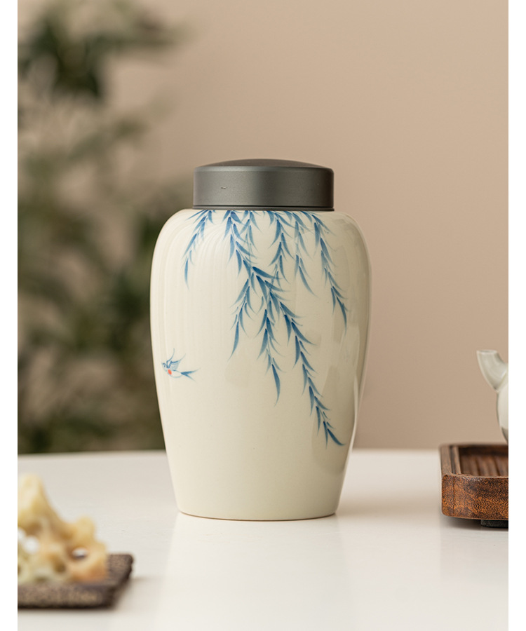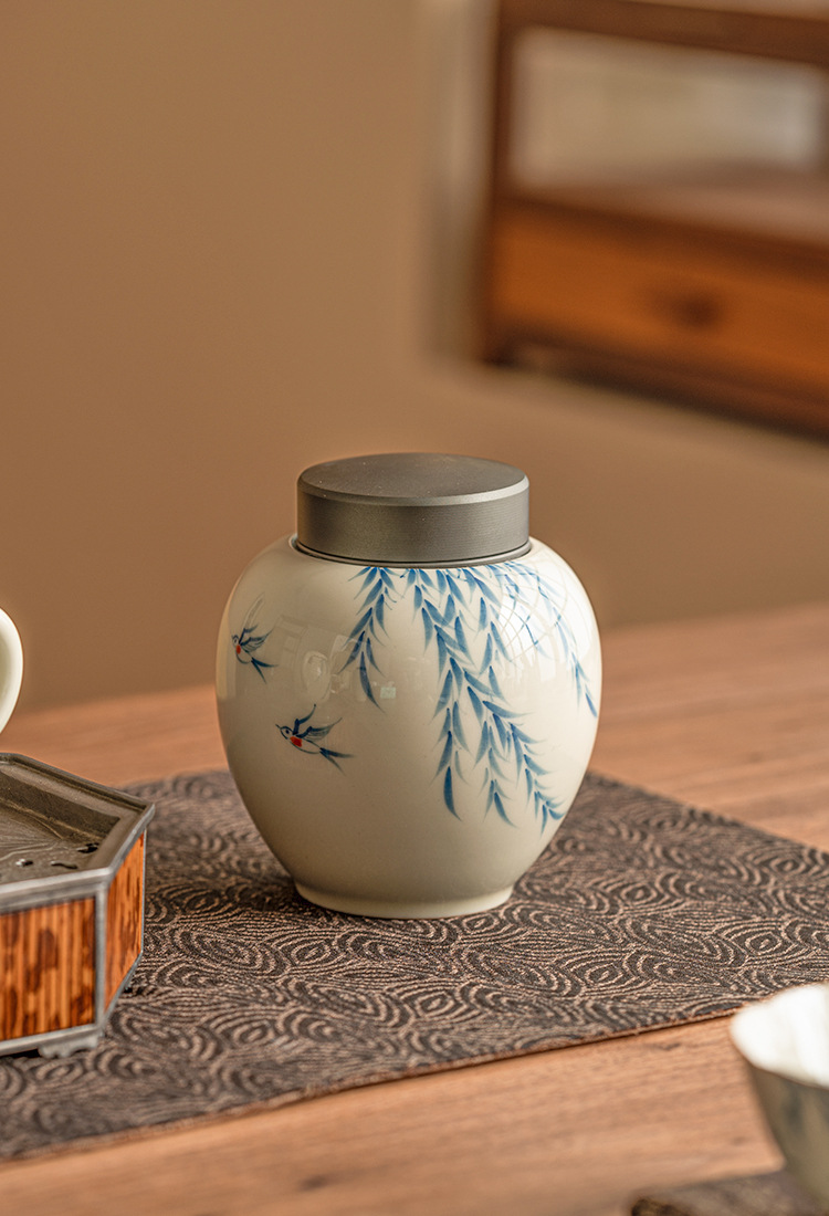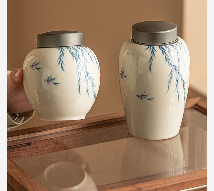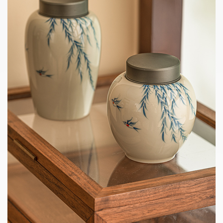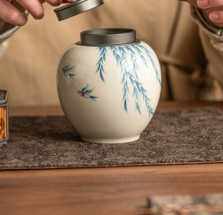 Bình trà Nuan Ying Xinliu, bình kín, bình trà có nắp hợp kim nhôm cao cấp cầm tay, bình bảo quản Gốm chống ẩm