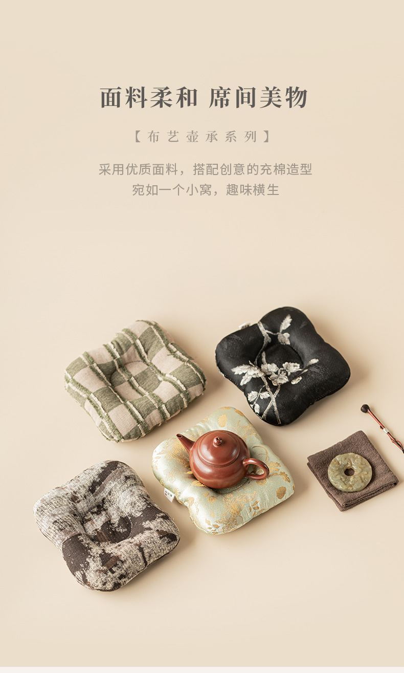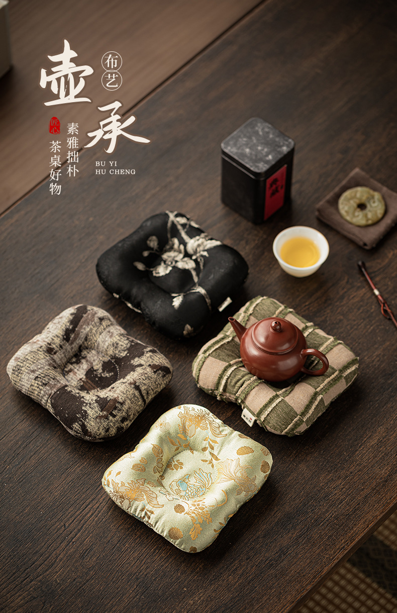 - Bình vải nghệ thuật kiểu Trung Quốc cổ điển lót cốc chống bỏng dày dặn thủ công lót ấm trà lót cách nhiệt ấm phụ kiện bộ trà