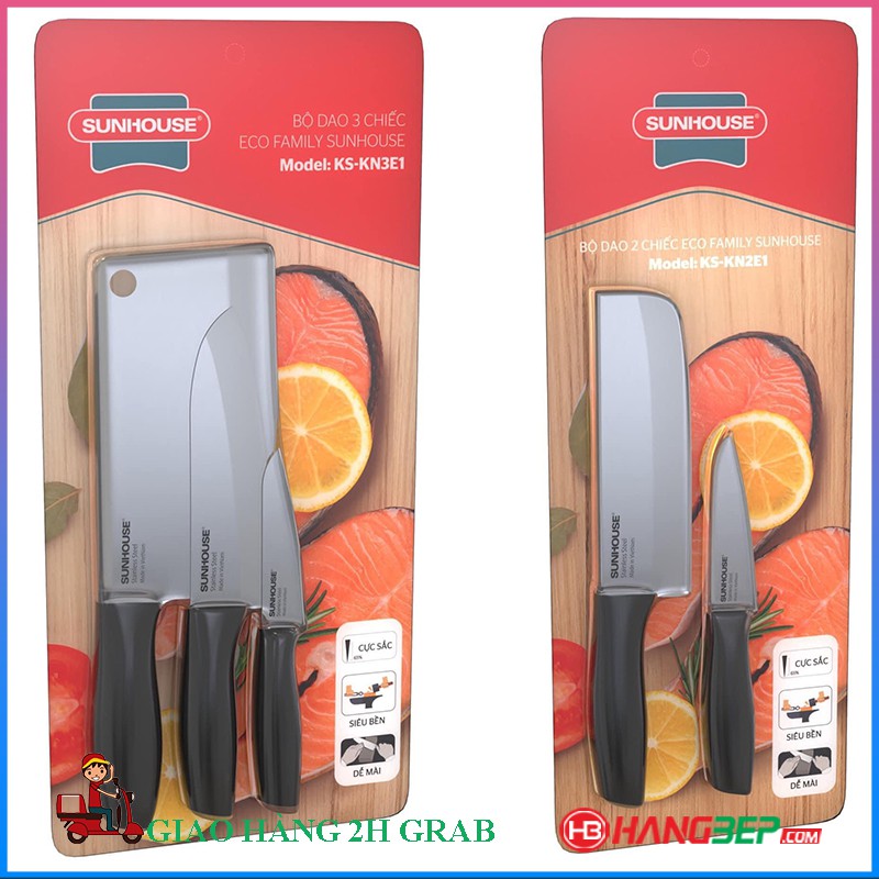 - Tên sản phẩm: Bộ dao 3 chiếc Eco Family Sunhouse KS-KN3E1