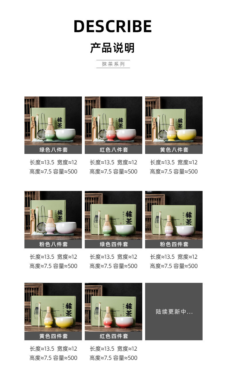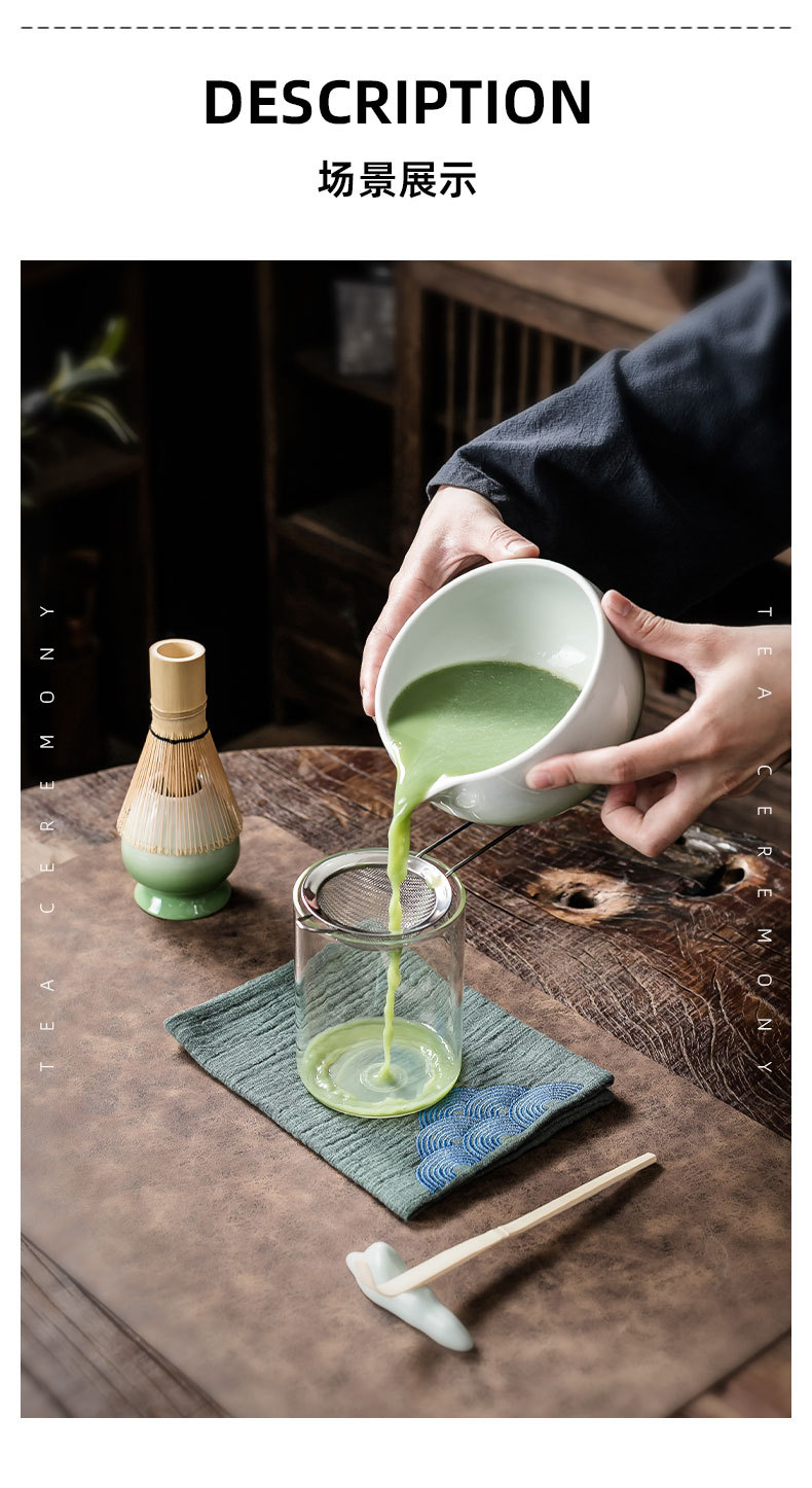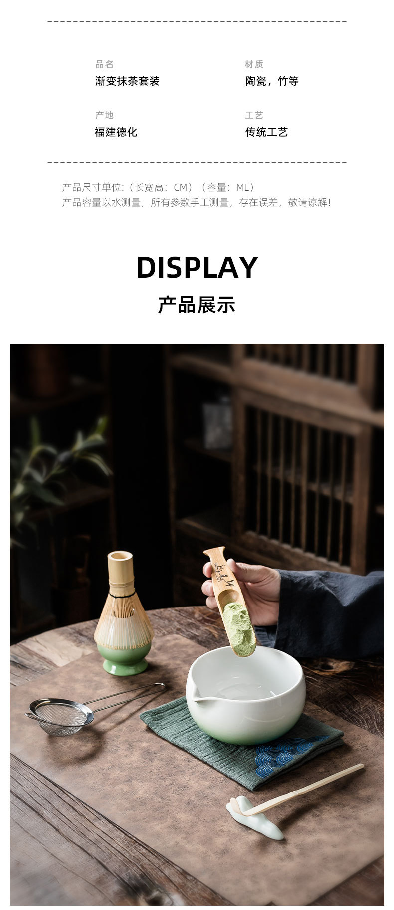 - Bộ 8 món matcha bán buôn, chén trà gốm sứ màu chuyển sắc, bộ dụng cụ pha trà thời nhà Tống, gồm chổi đánh trà, rây lọc, bàn chải trà