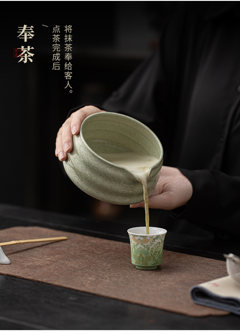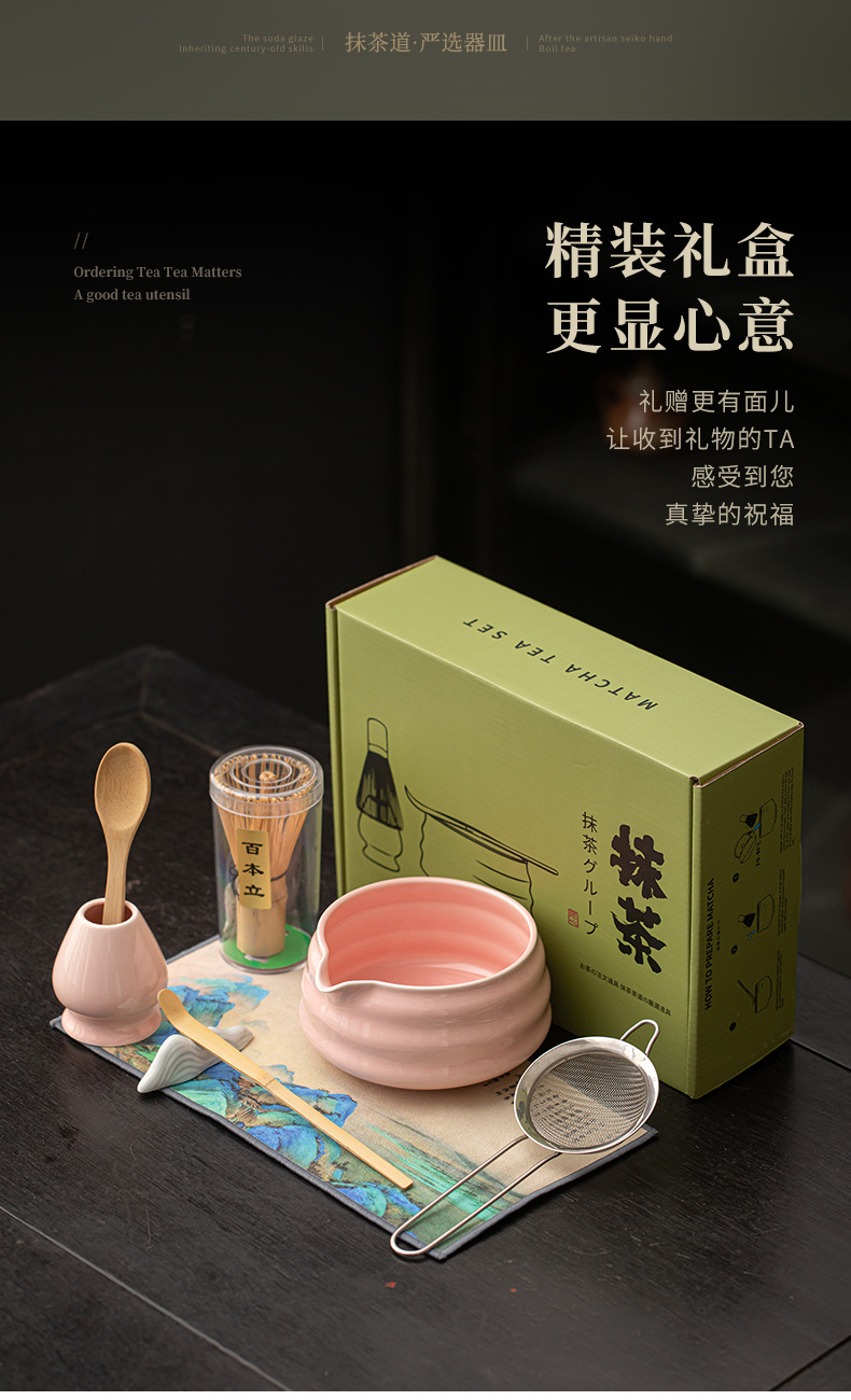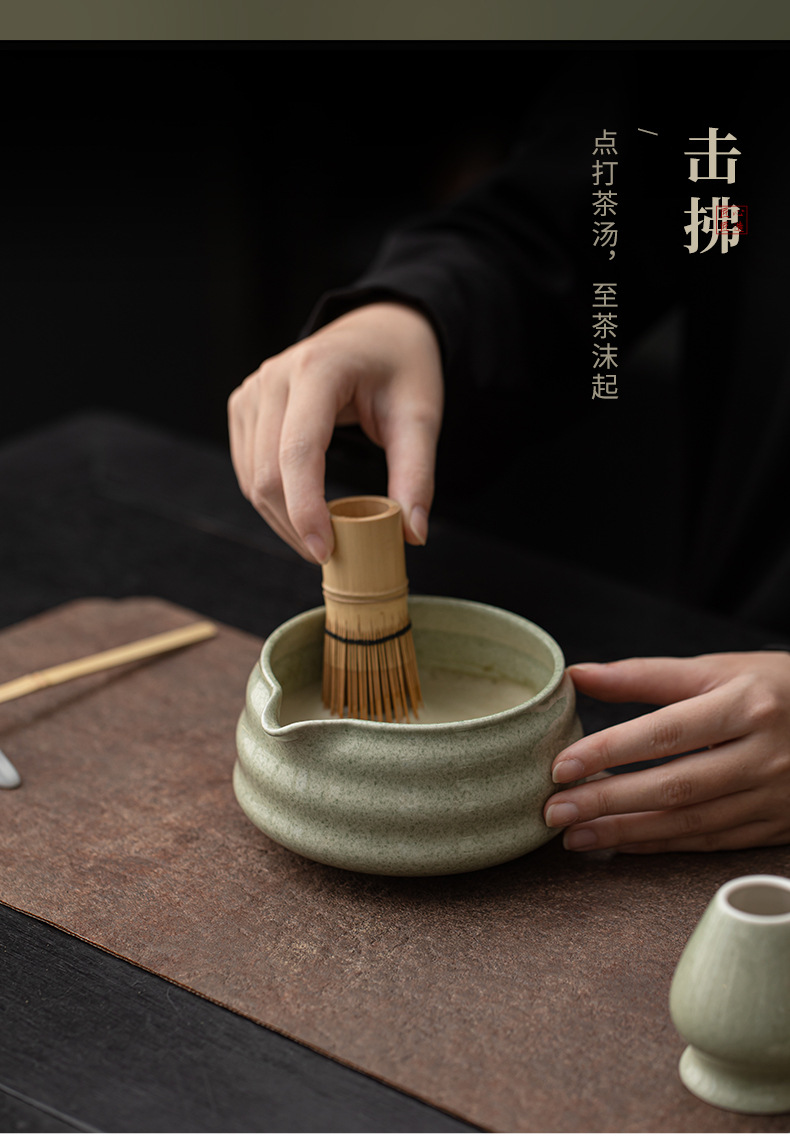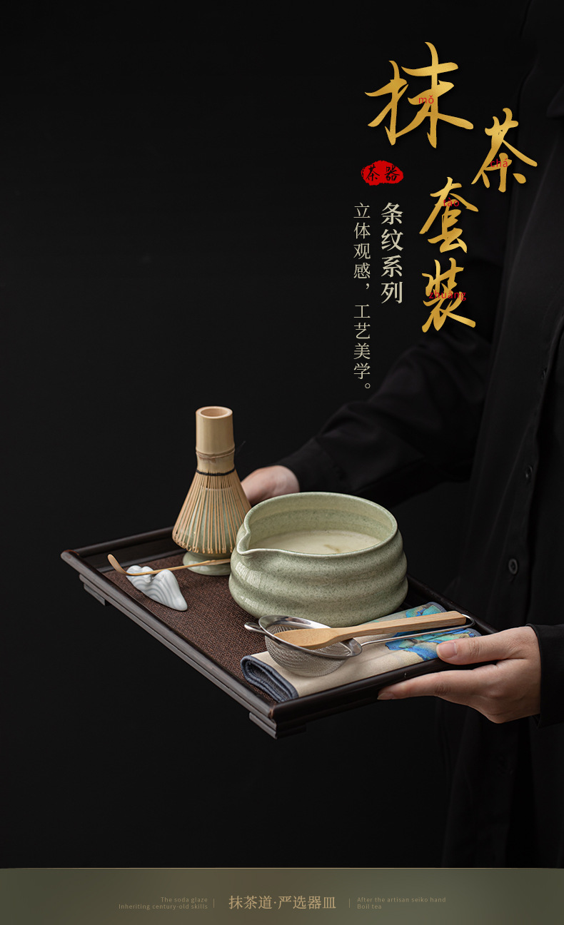 - Bộ 8 món Matcha sọc, bát Matcha kiểu Nhật, dụng cụ uống trà Matcha, bát trà gốm sứ, bàn chải trà, bình pha trà