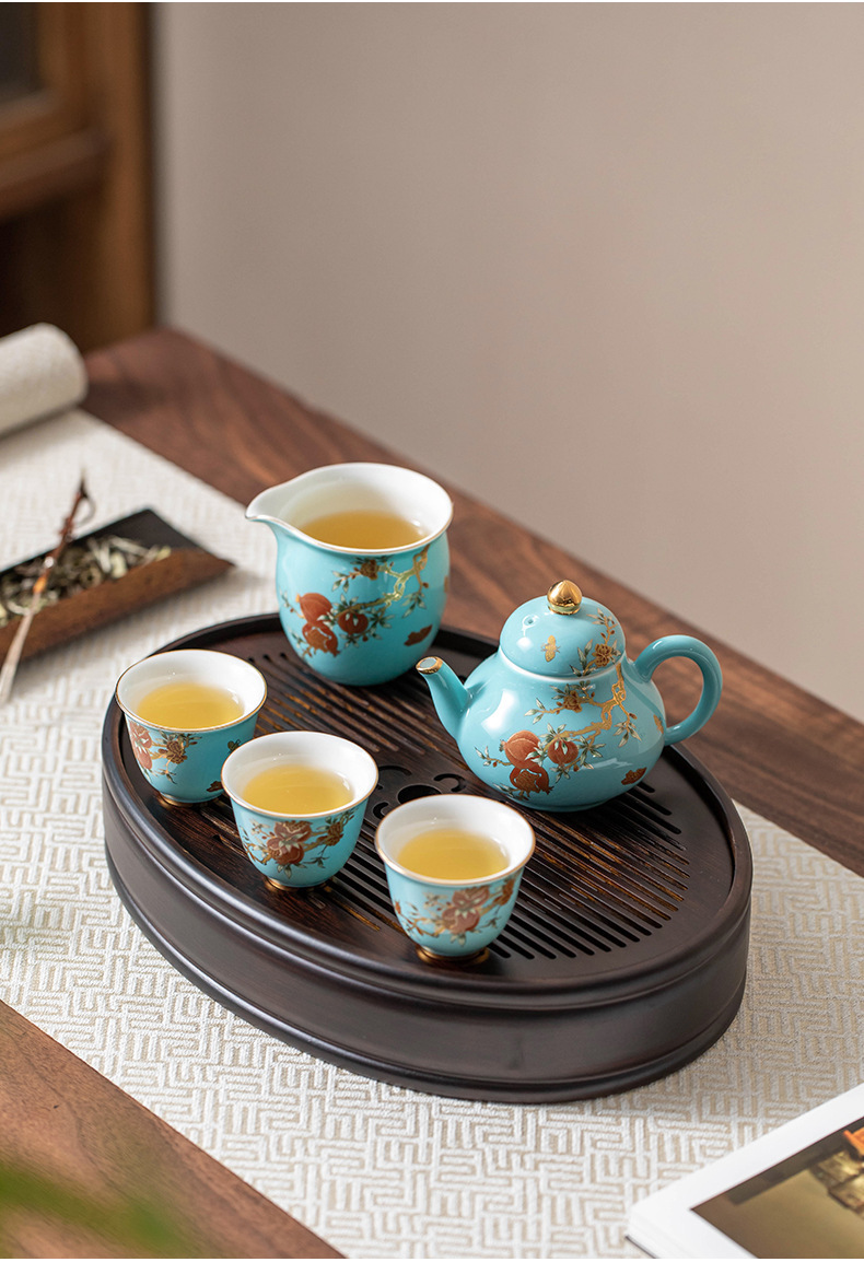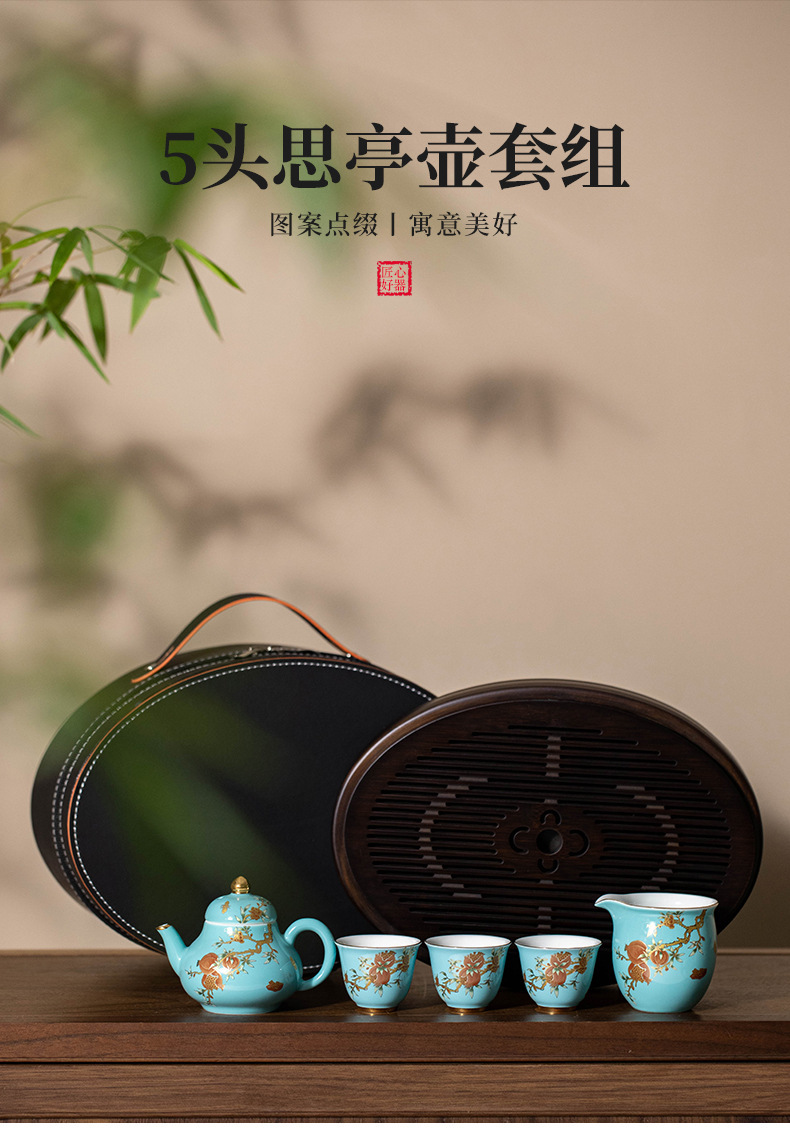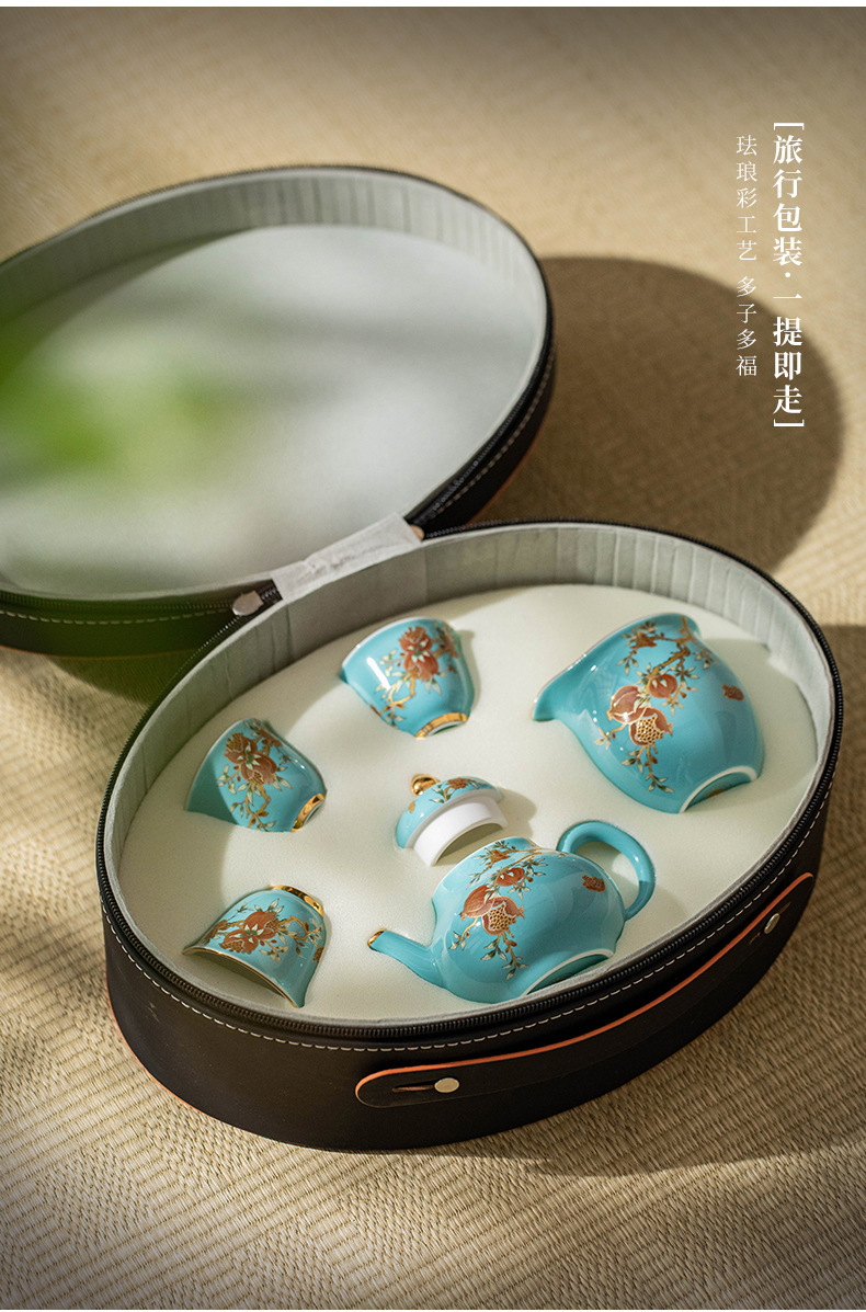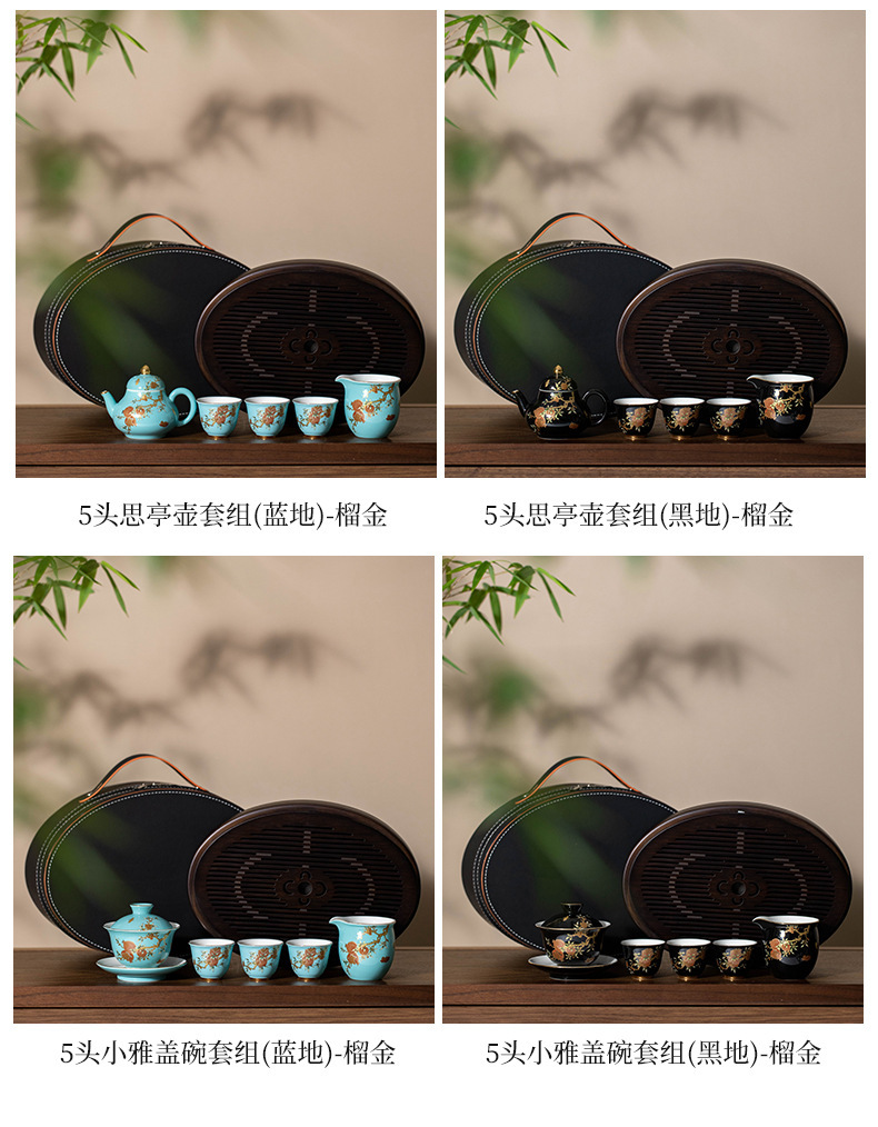 Bộ ấm chén du lịch sứ nhỏ cao cấp phong cách nhẹ nhàng sang trọng màu vàng lựu nhỏ xinh