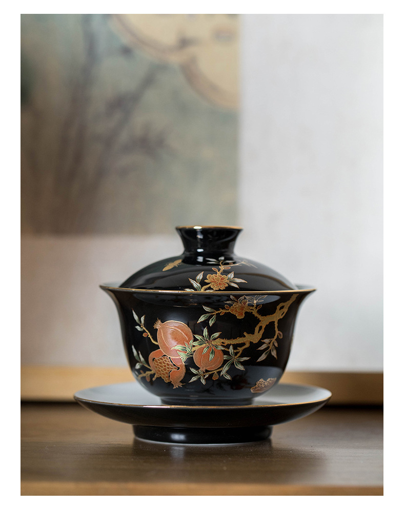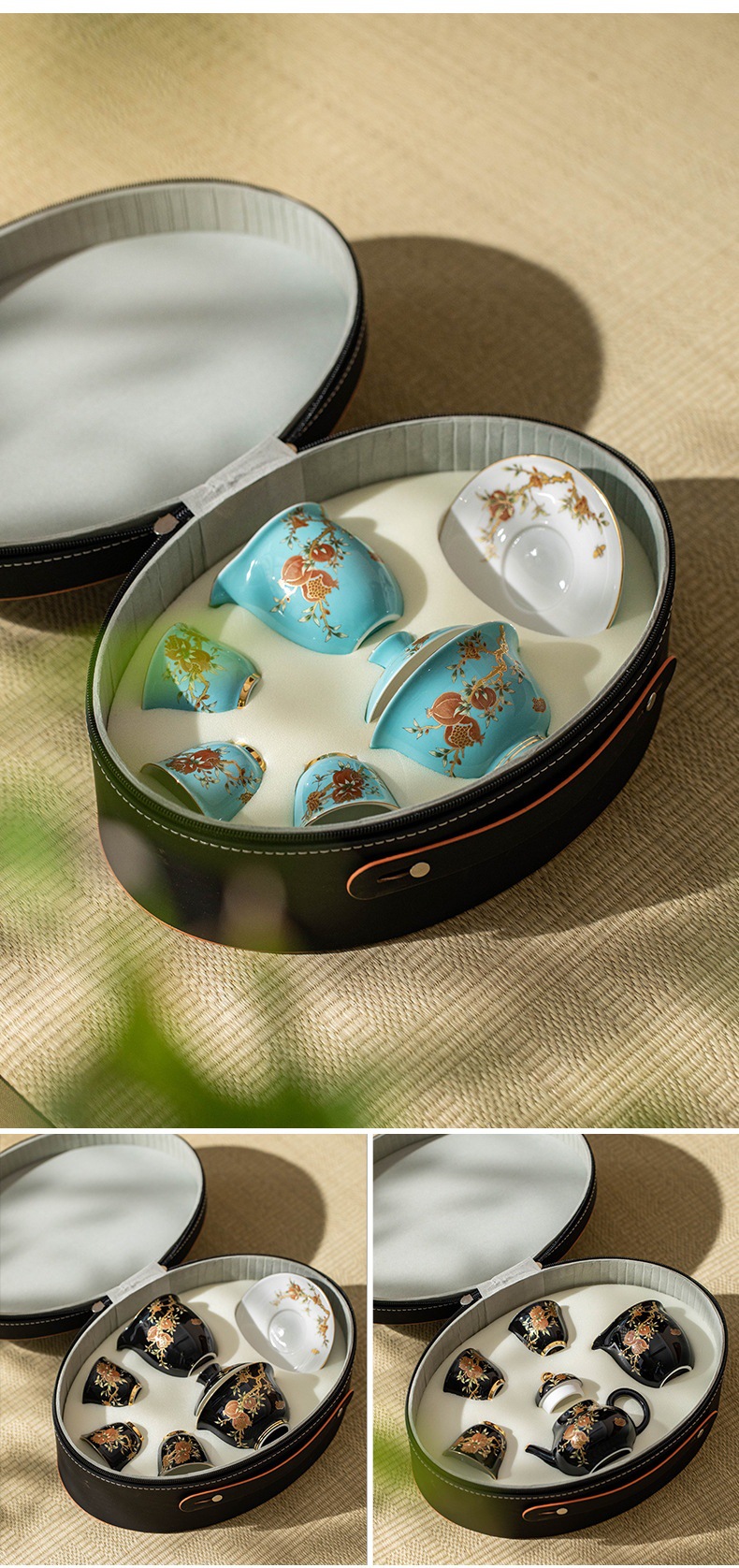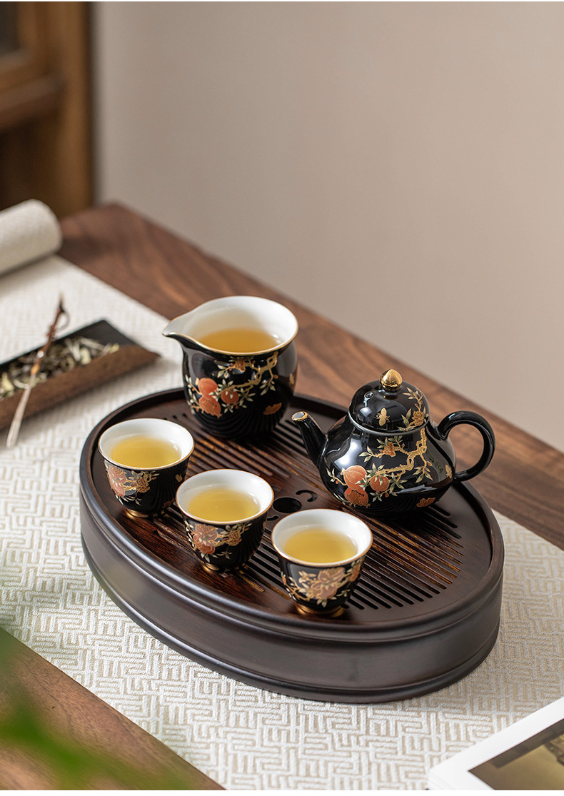 Bộ ấm chén du lịch sứ nhỏ cao cấp phong cách nhẹ nhàng sang trọng màu vàng lựu nhỏ xinh