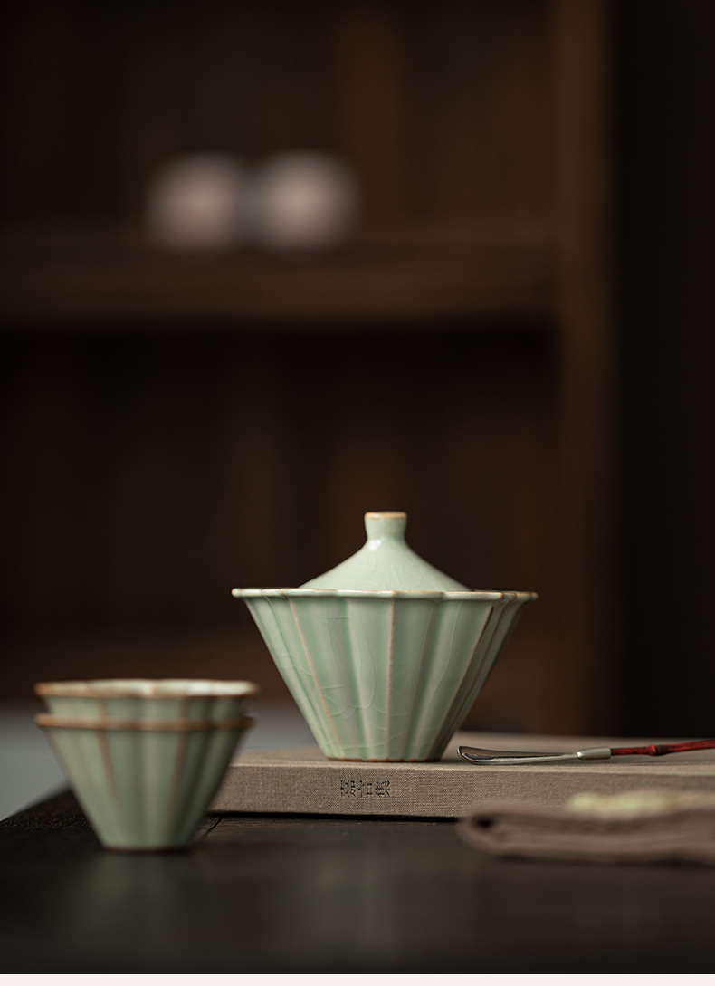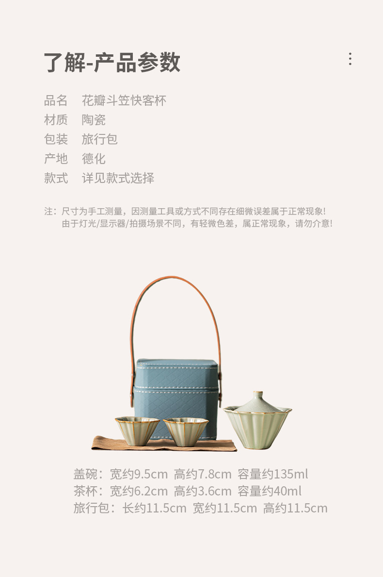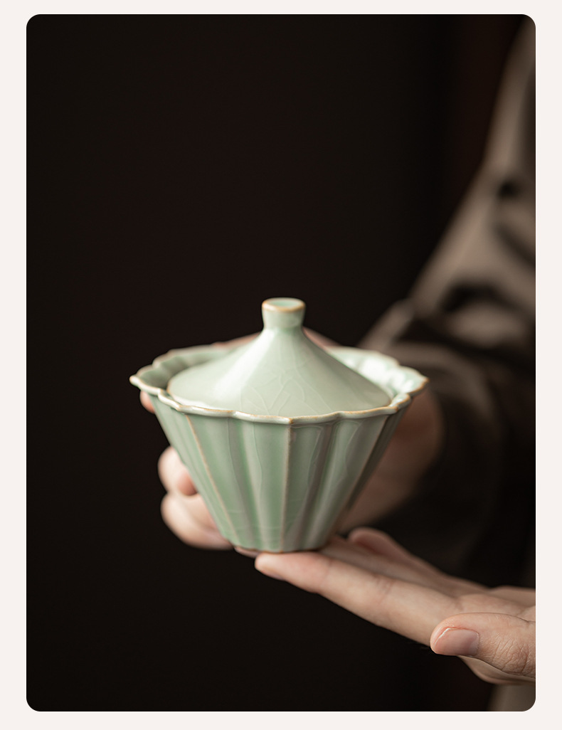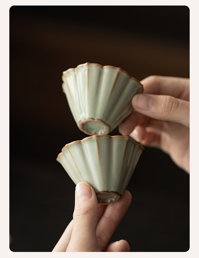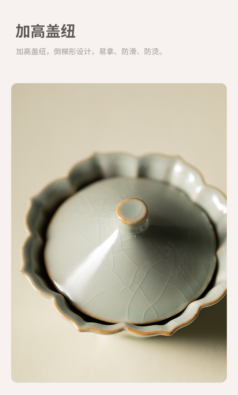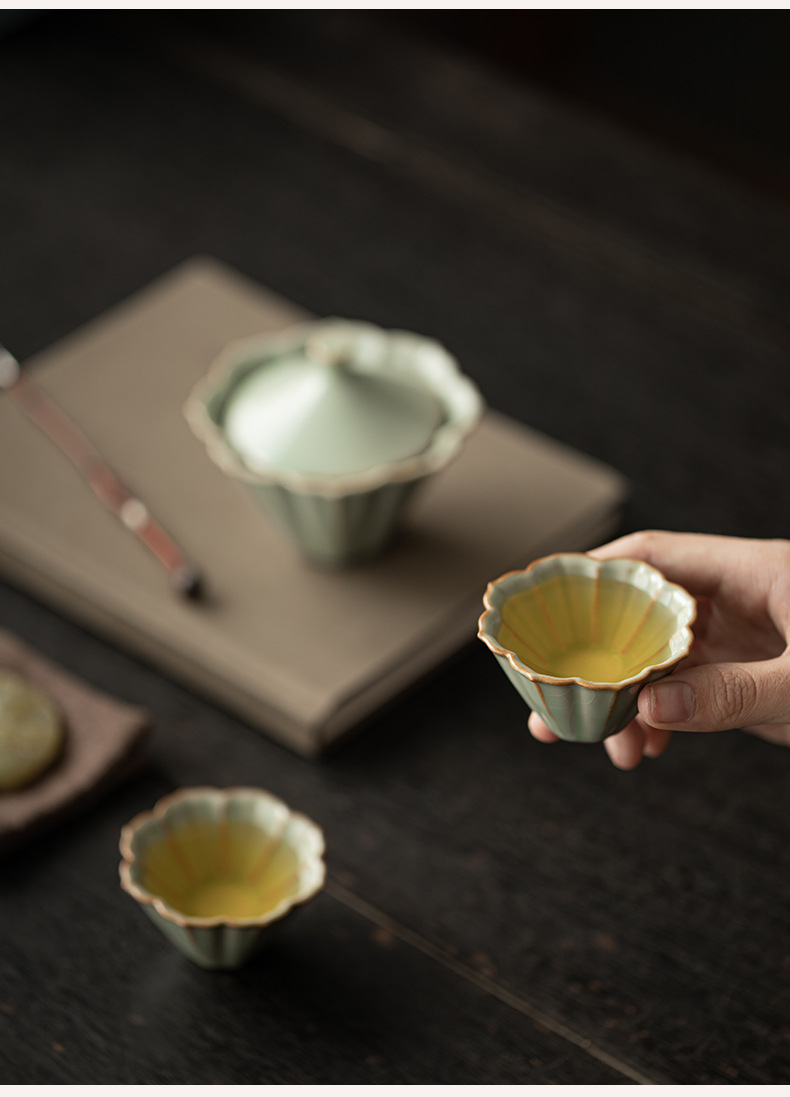 - Bộ ấm chén gốm sứ Ru Kiln Petal Hat Quick Cup, dùng được ở nhà, ngoài trời, du lịch, một ấm hai chén, có thể mở nắp