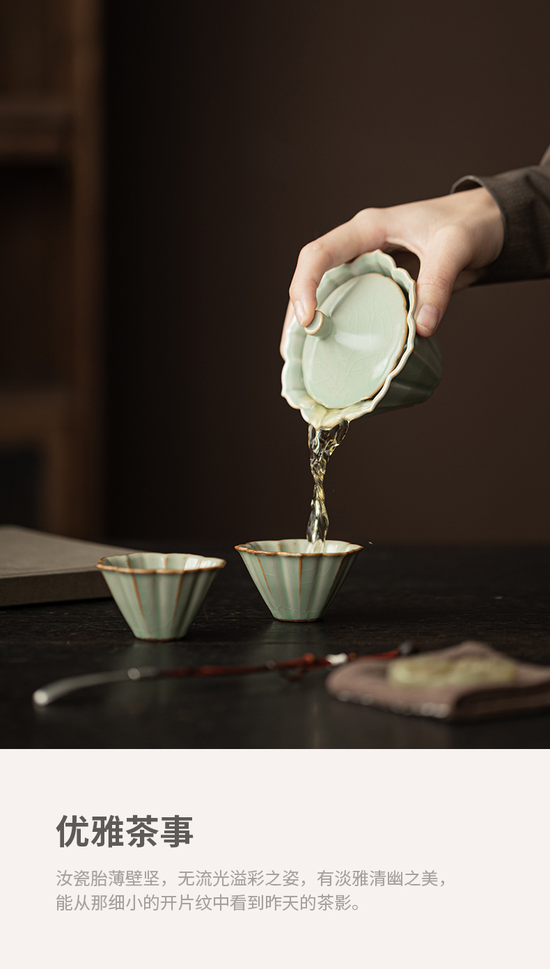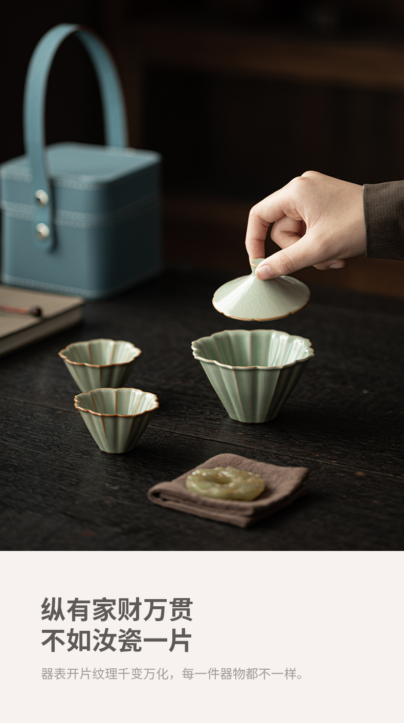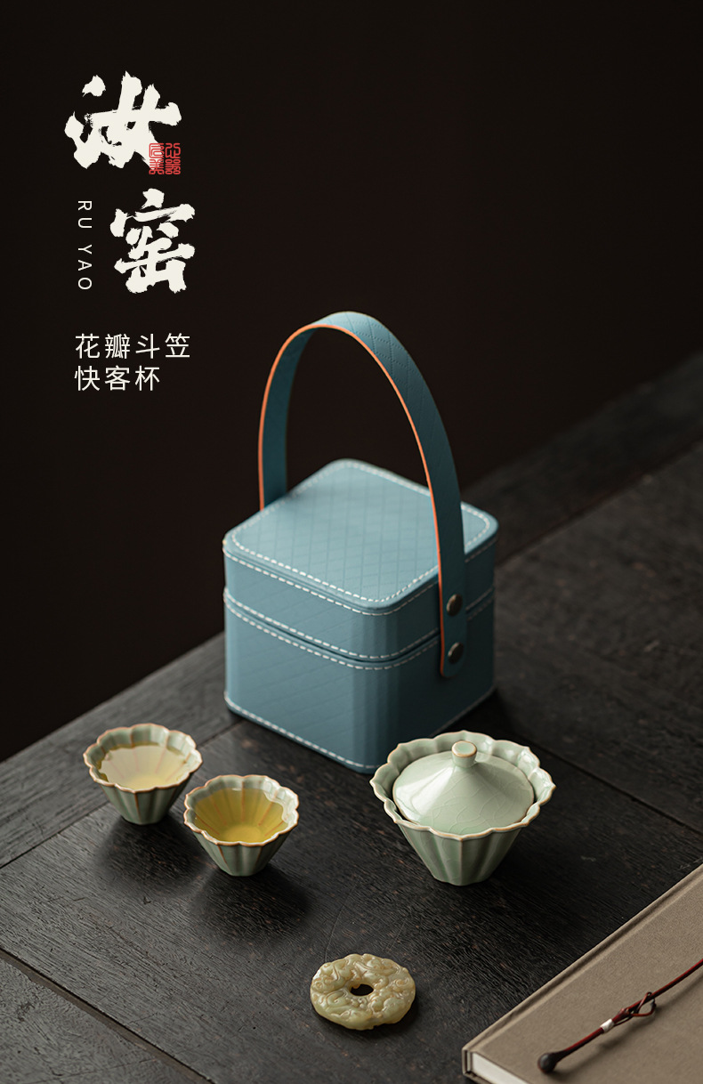 Bộ ấm chén gốm sứ Ru Kiln Petal Hat Quick Cup, dùng được ở nhà, ngoài trời, du lịch, một ấm hai chén, có thể mở nắp
