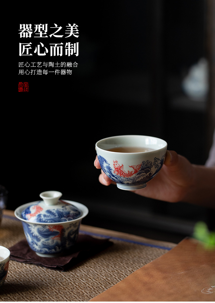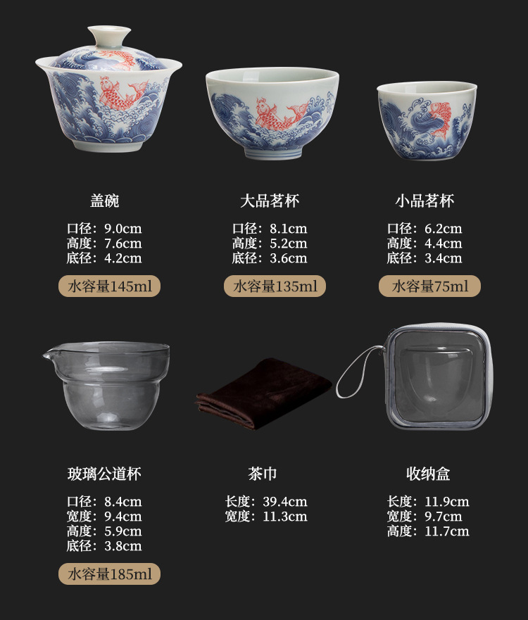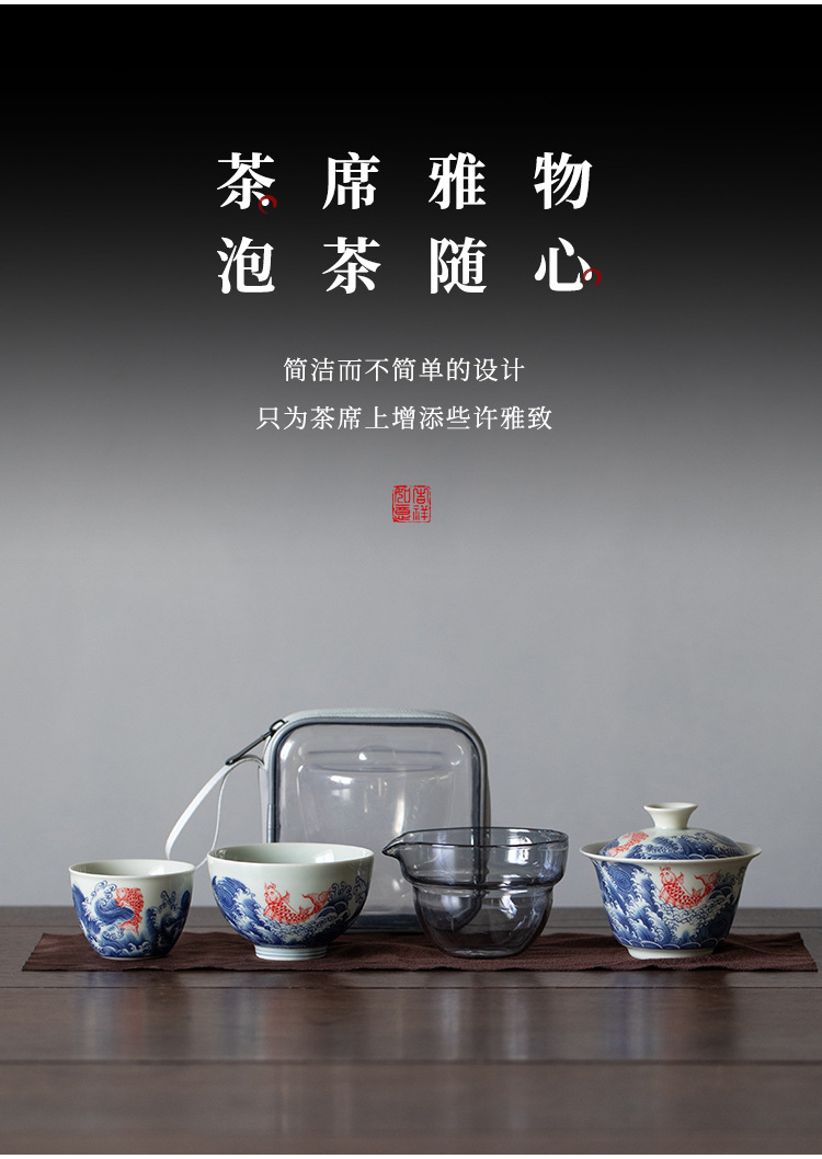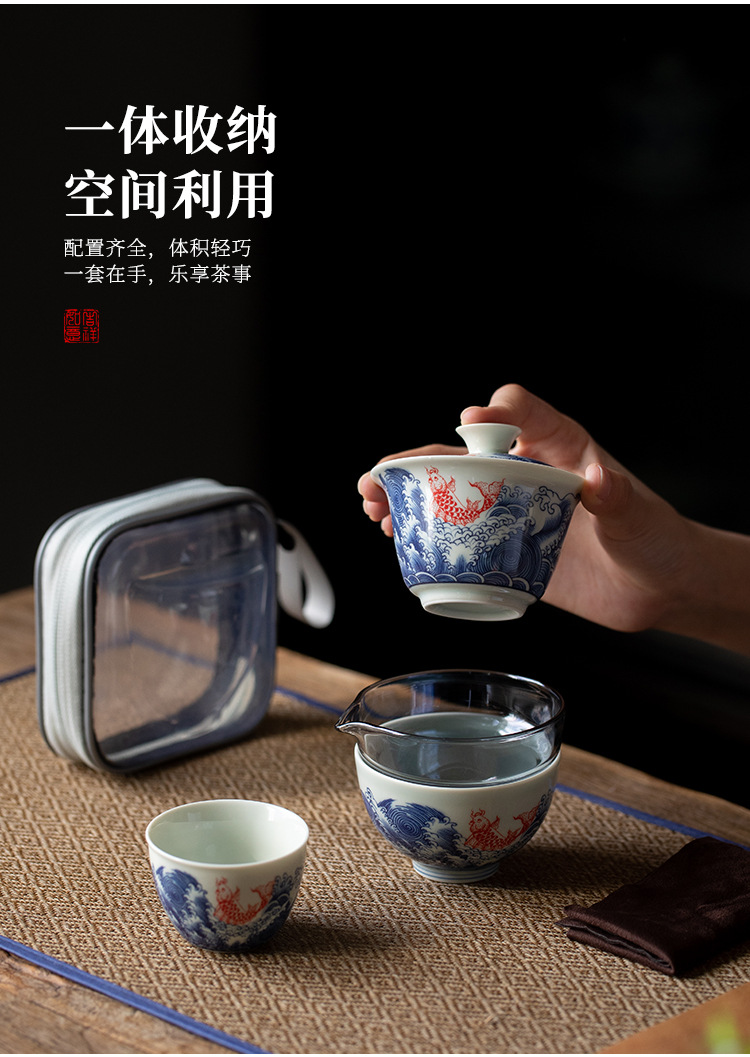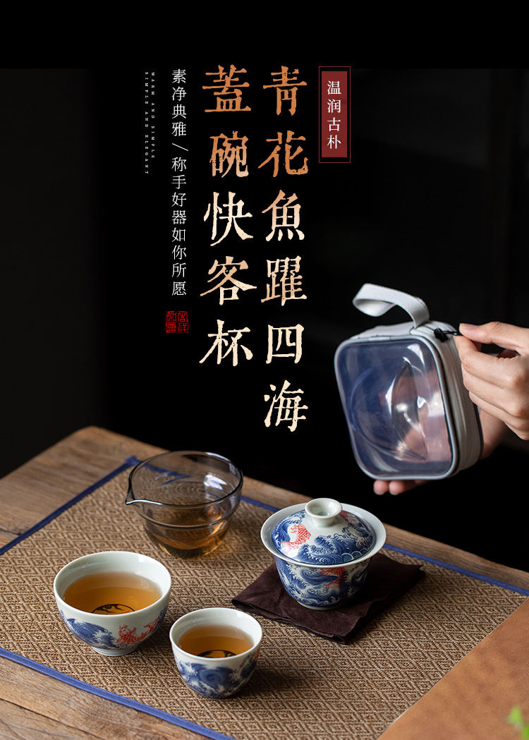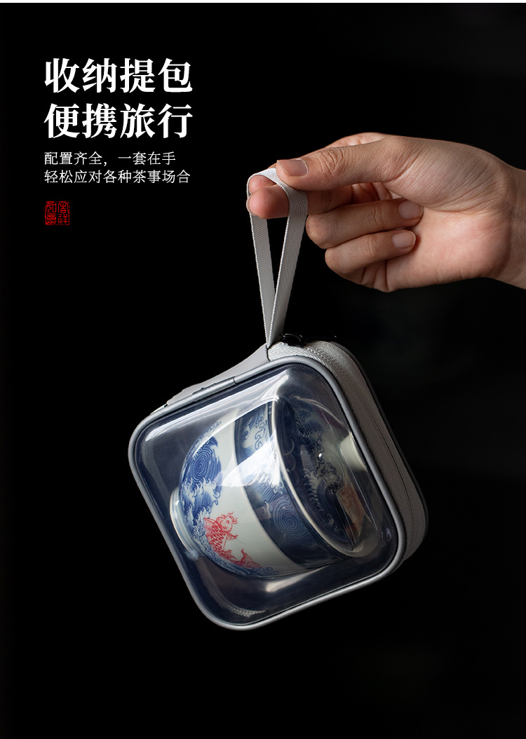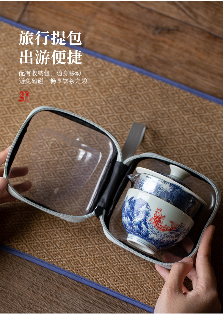 兮元记青花瓷快客杯一壶二杯旅行茶具套装便携式茶杯泡茶户外露营