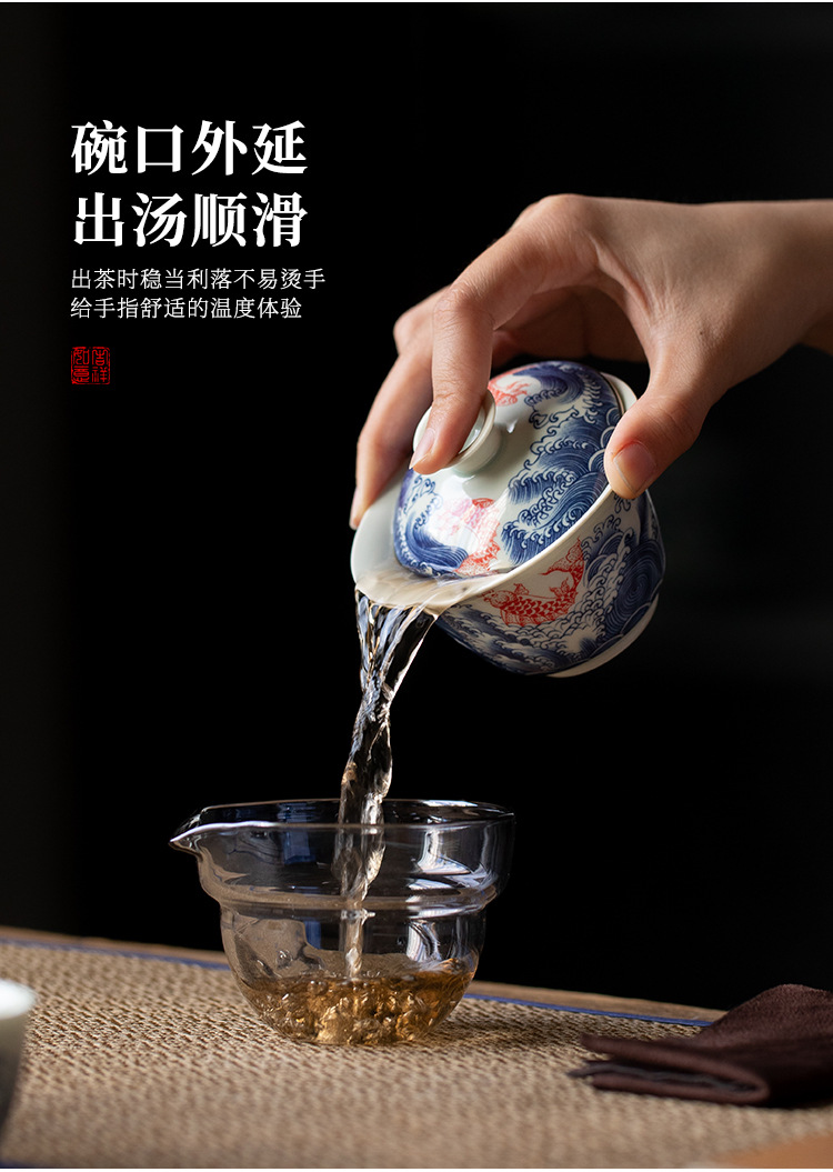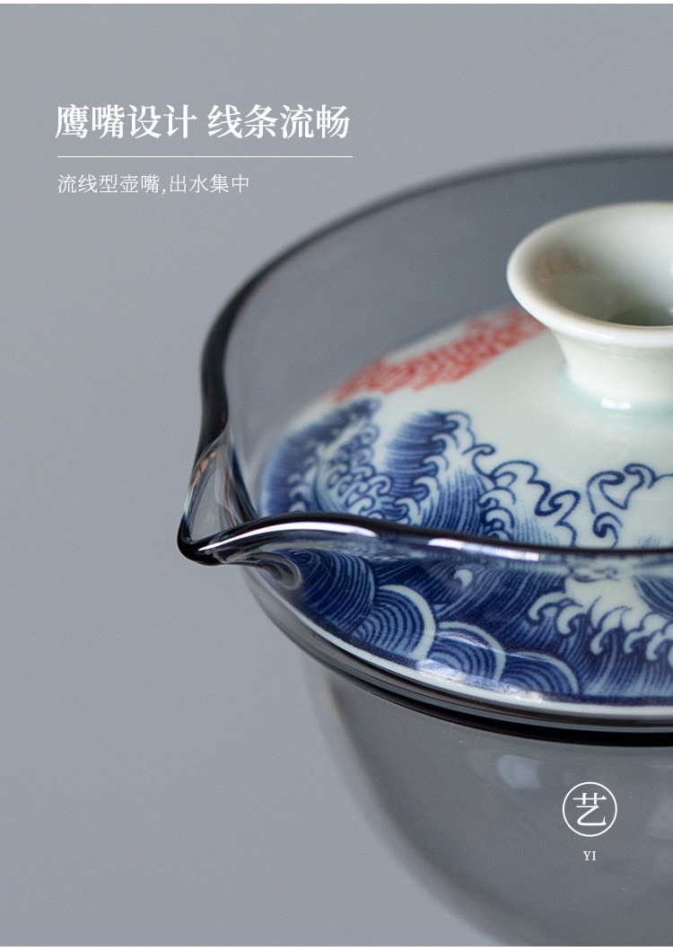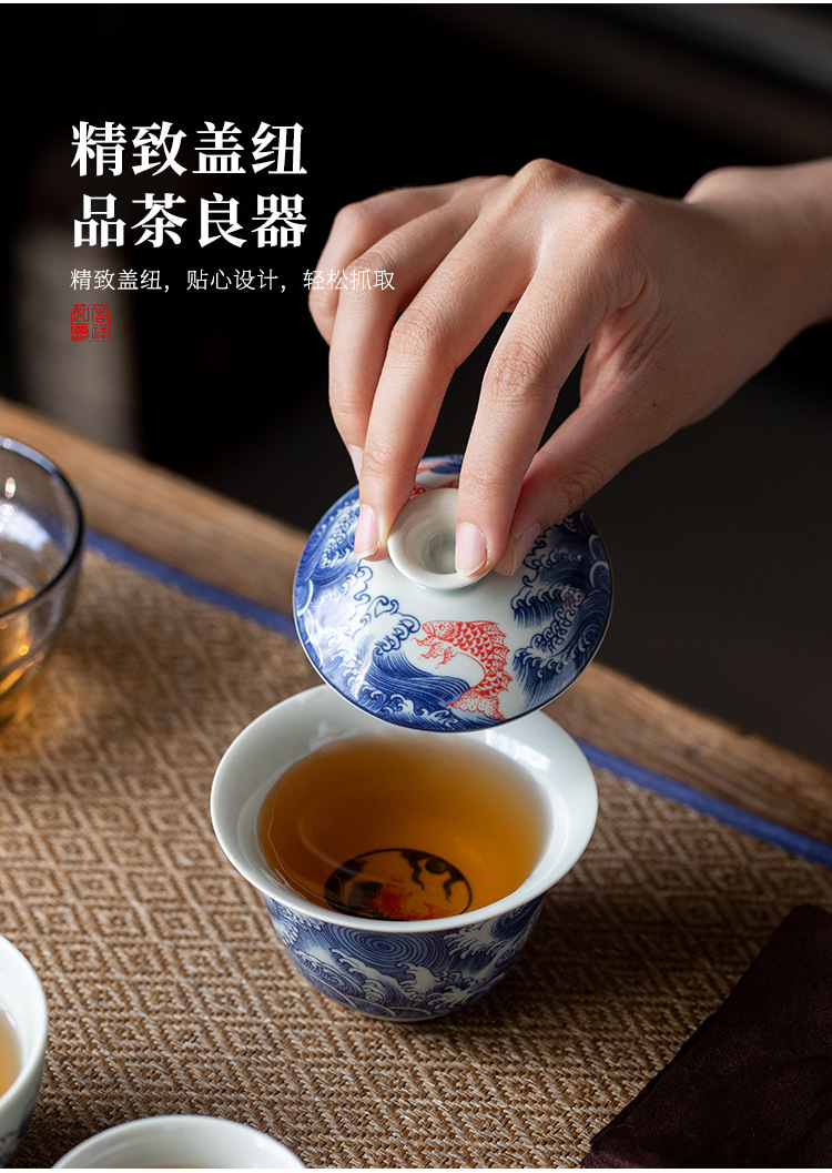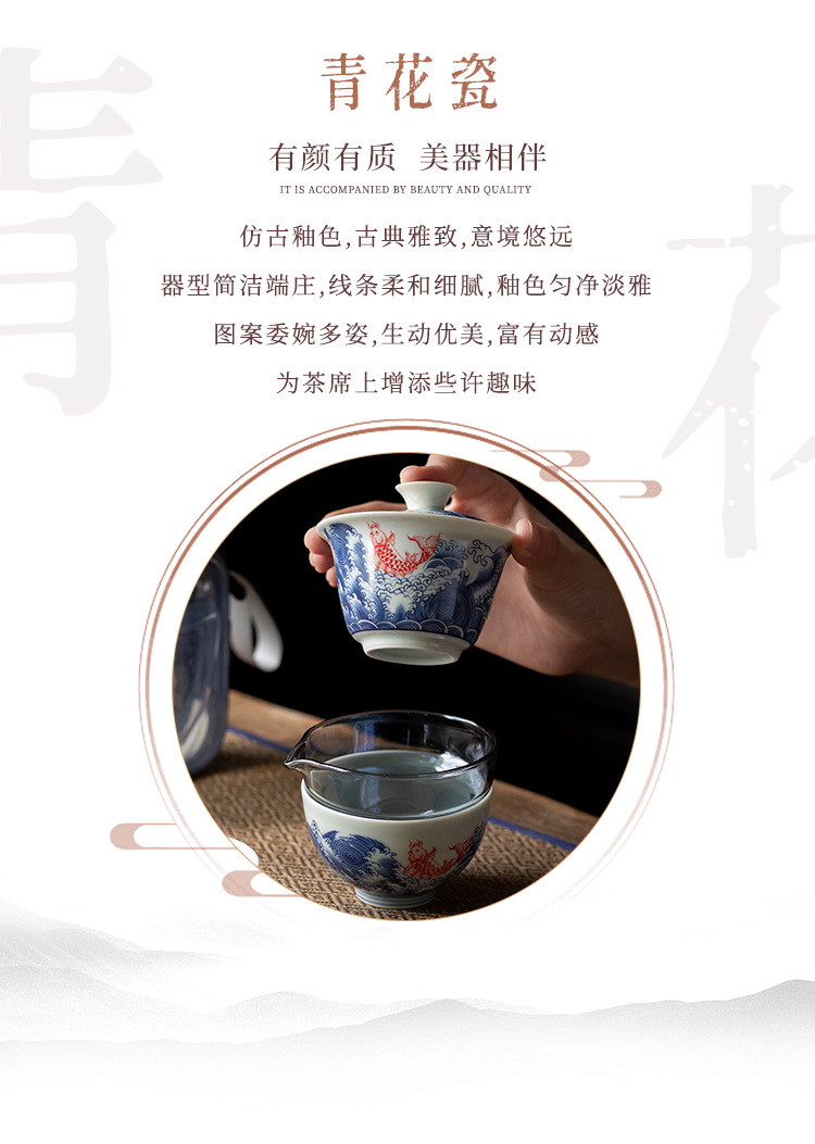 - Bộ ấm chén sứ xanh trắng, một ấm hai chén, bộ trà du lịch, chén trà di động, pha trà, phong cách cắm trại ngoài trời