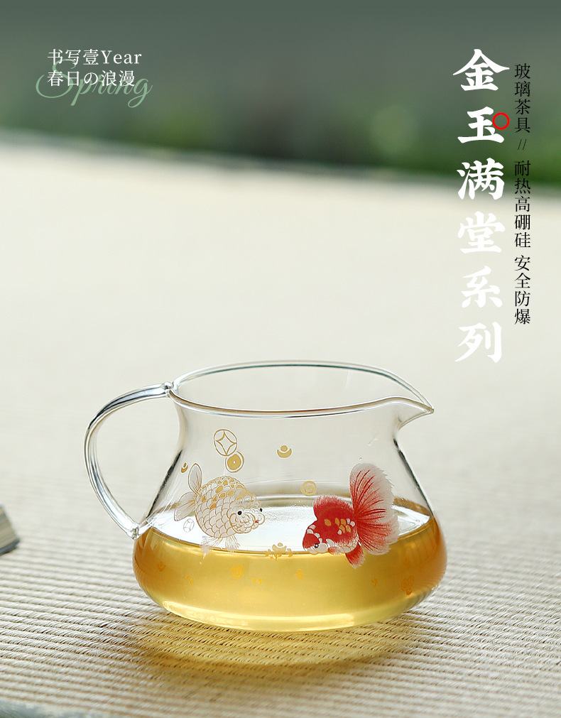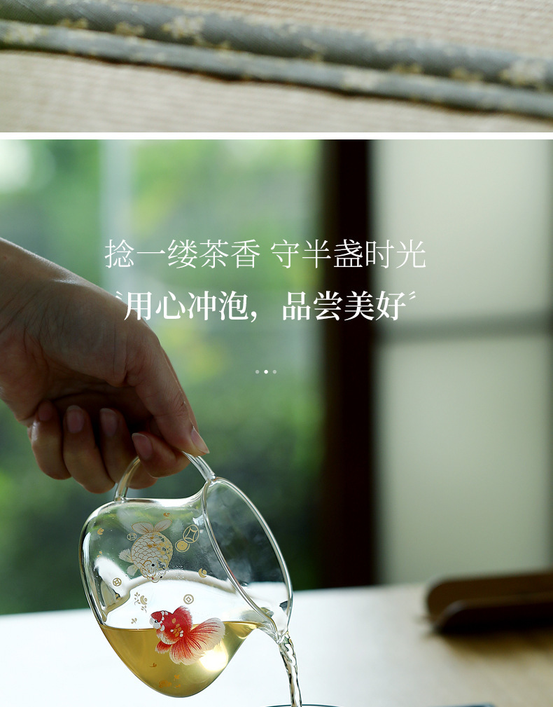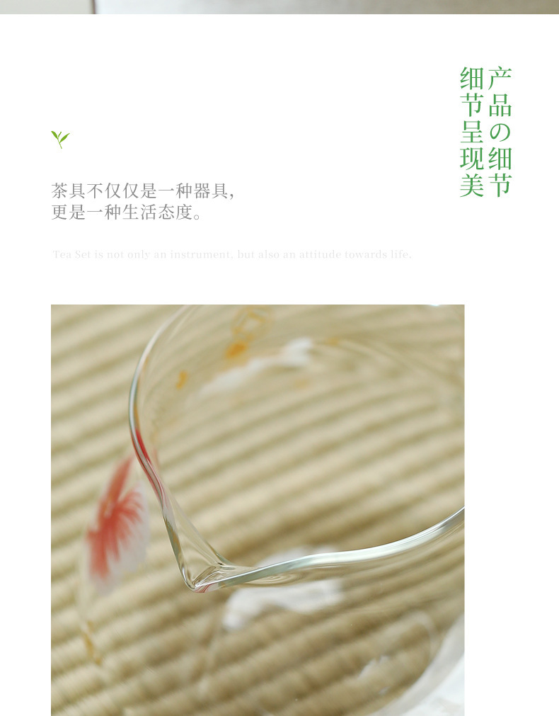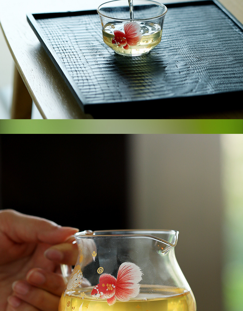 Bộ ấm chén trà bằng thủy tinh borosilicat cao cấp, dày dặn, chịu nhiệt, kèm phụ kiện pha trà kung fu, vách ngăn trà và chén đều.