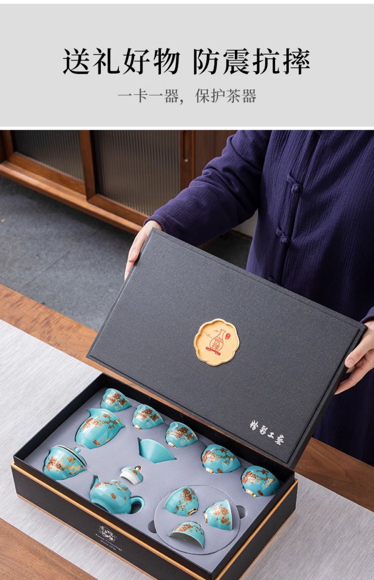 - Bộ ấm chén trà cao cấp 2025 mới, sang trọng, gốm sứ cao cấp, kiểu Kung Fu, gồm chén, ấm, hộp quà tặng