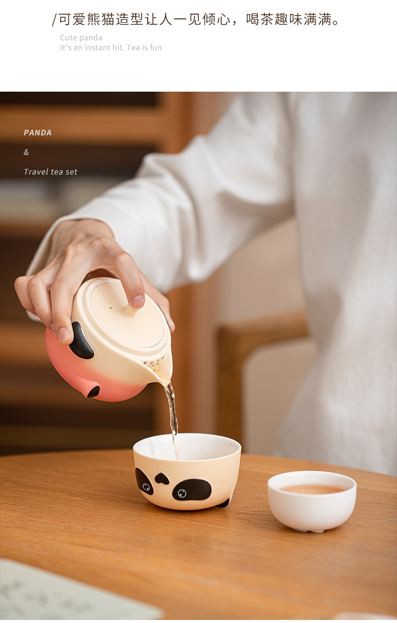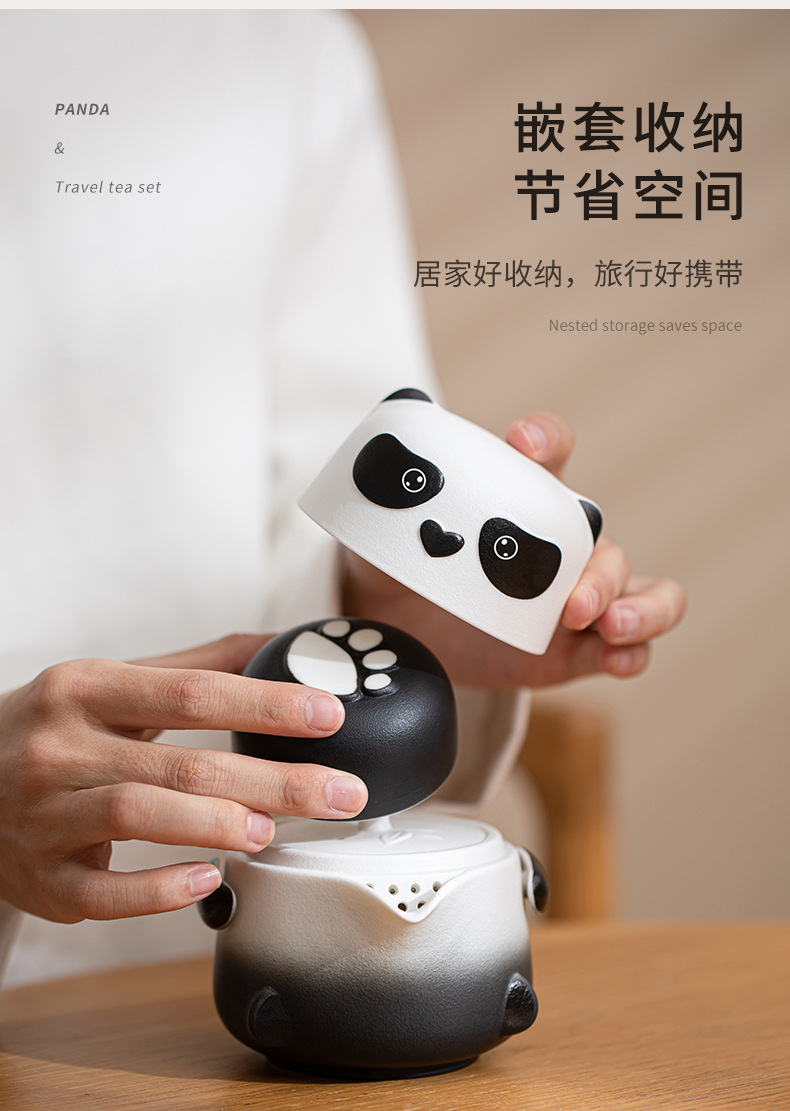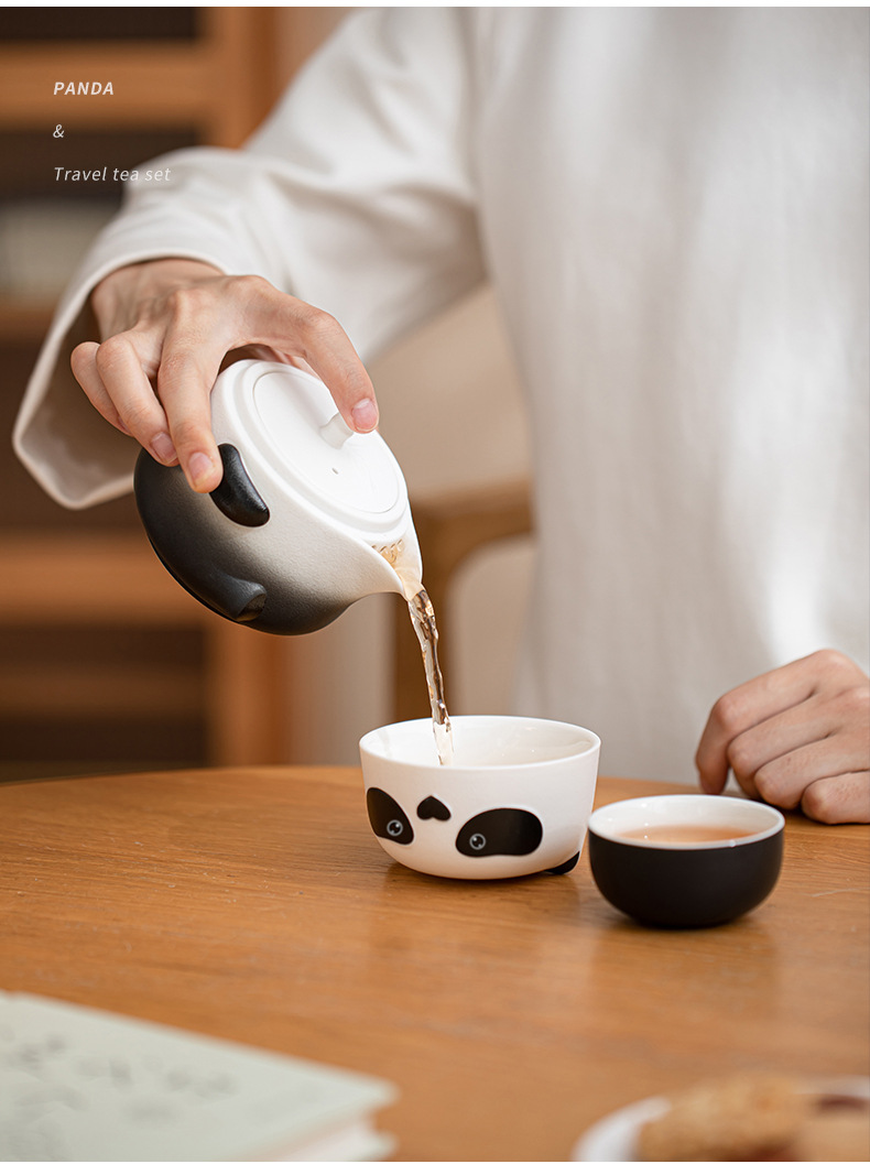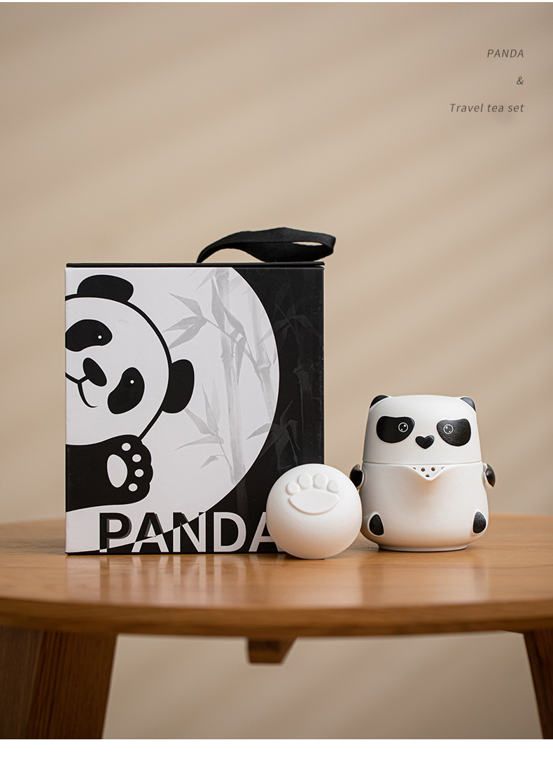 - Bộ ấm chén trà gốm sứ di động Panda Fubao Fula, hộp quà tặng, một ấm hai chén, dùng ngoài trời, bộ trà Kung Fu