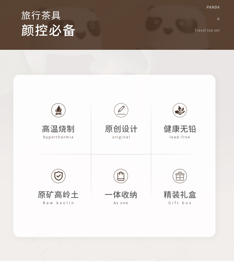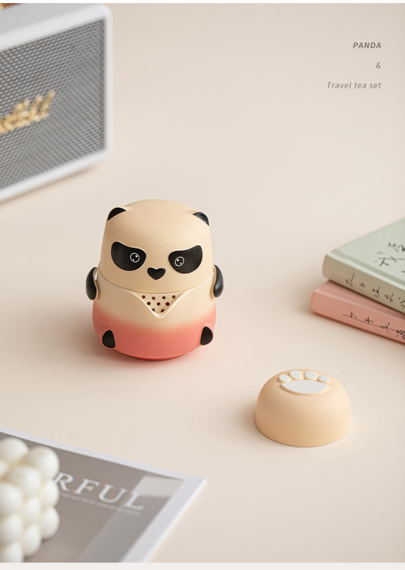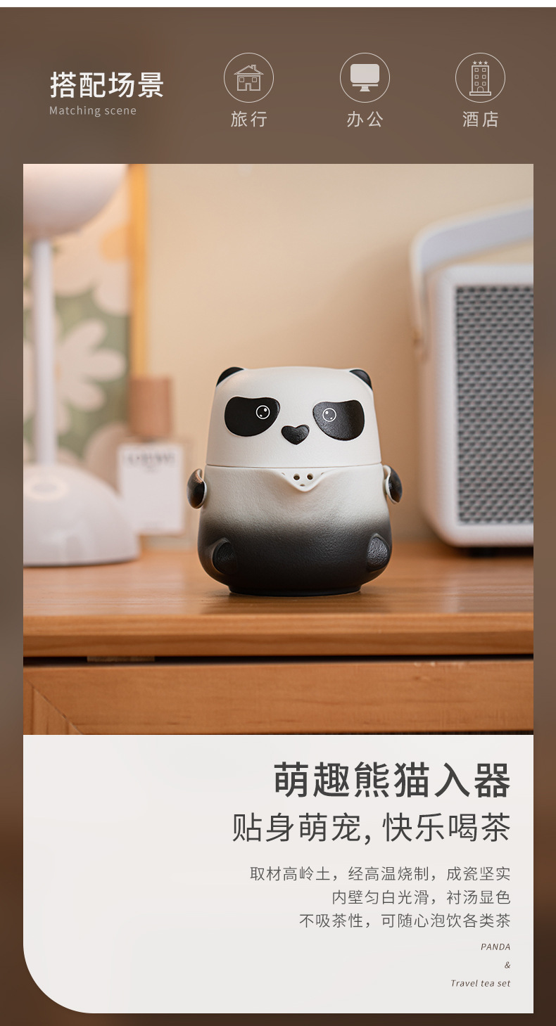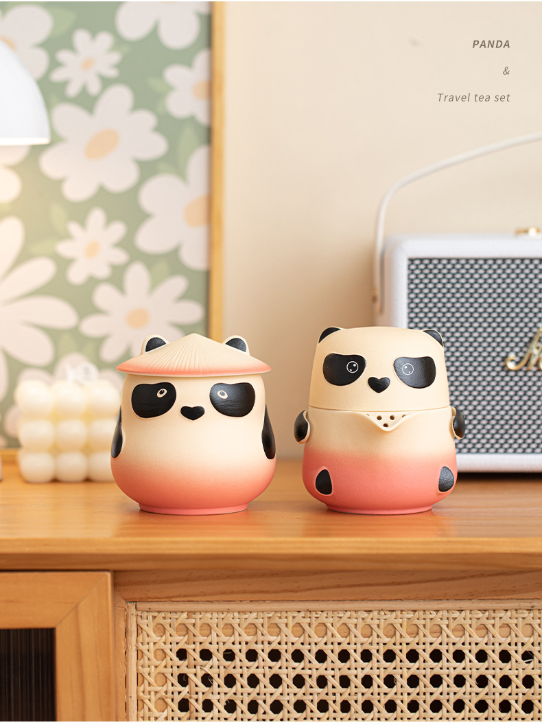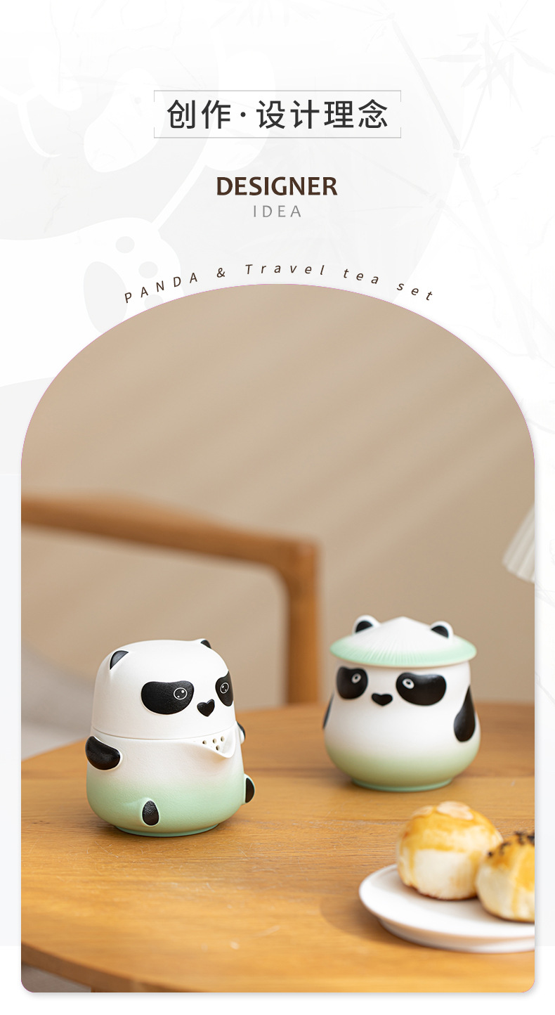 - Bộ ấm chén trà gốm sứ di động Panda Fubao Fula, hộp quà tặng, một ấm hai chén, dùng ngoài trời, bộ trà Kung Fu