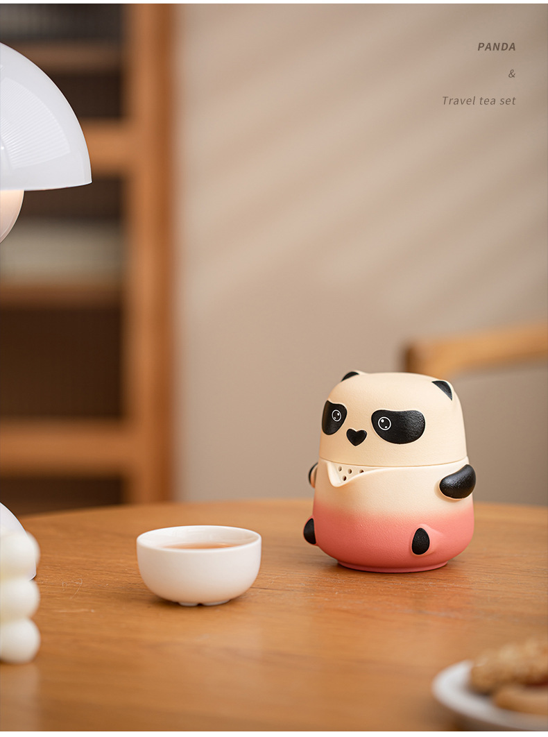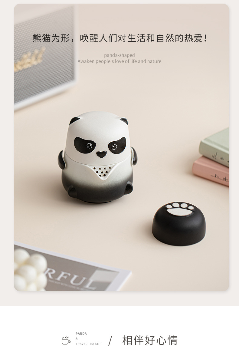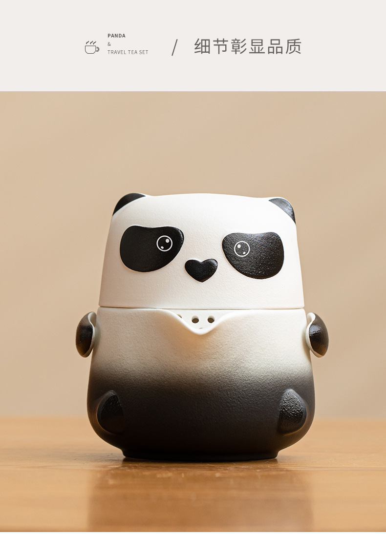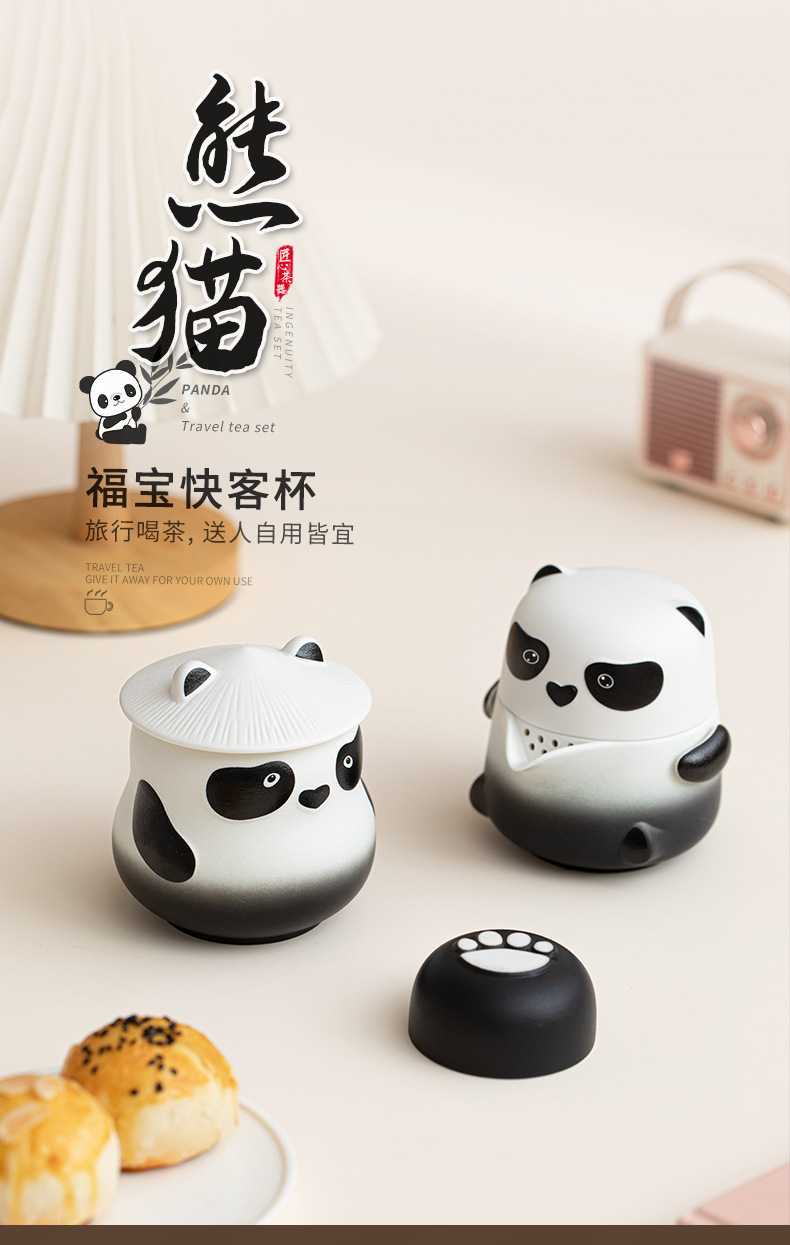 Bộ ấm chén trà gốm sứ di động Panda Fubao Fula, hộp quà tặng, một ấm hai chén, dùng ngoài trời, bộ trà Kung Fu