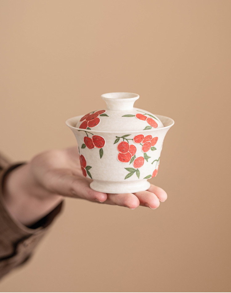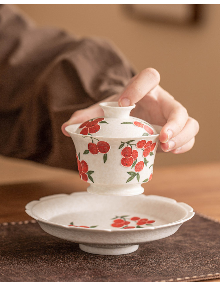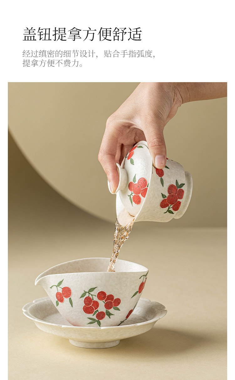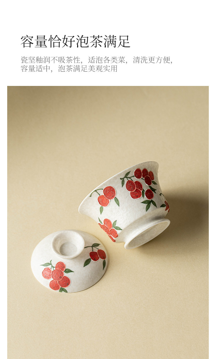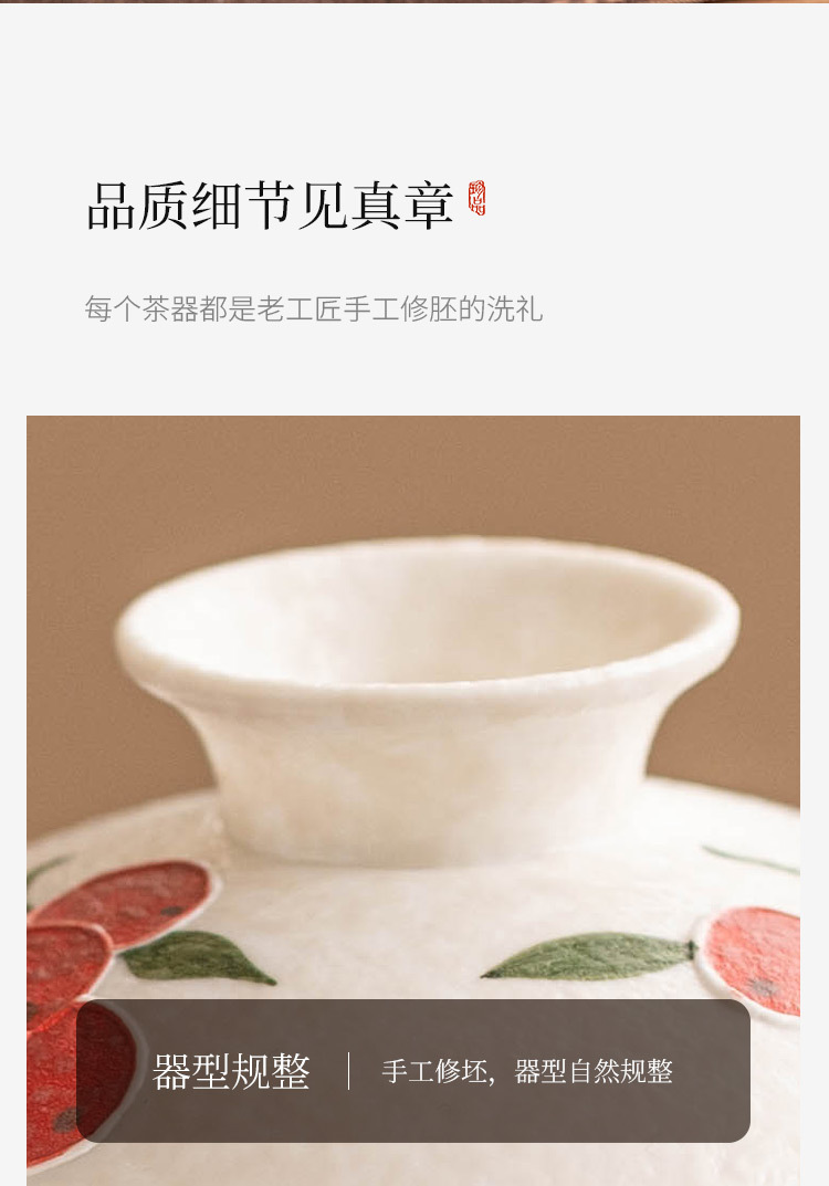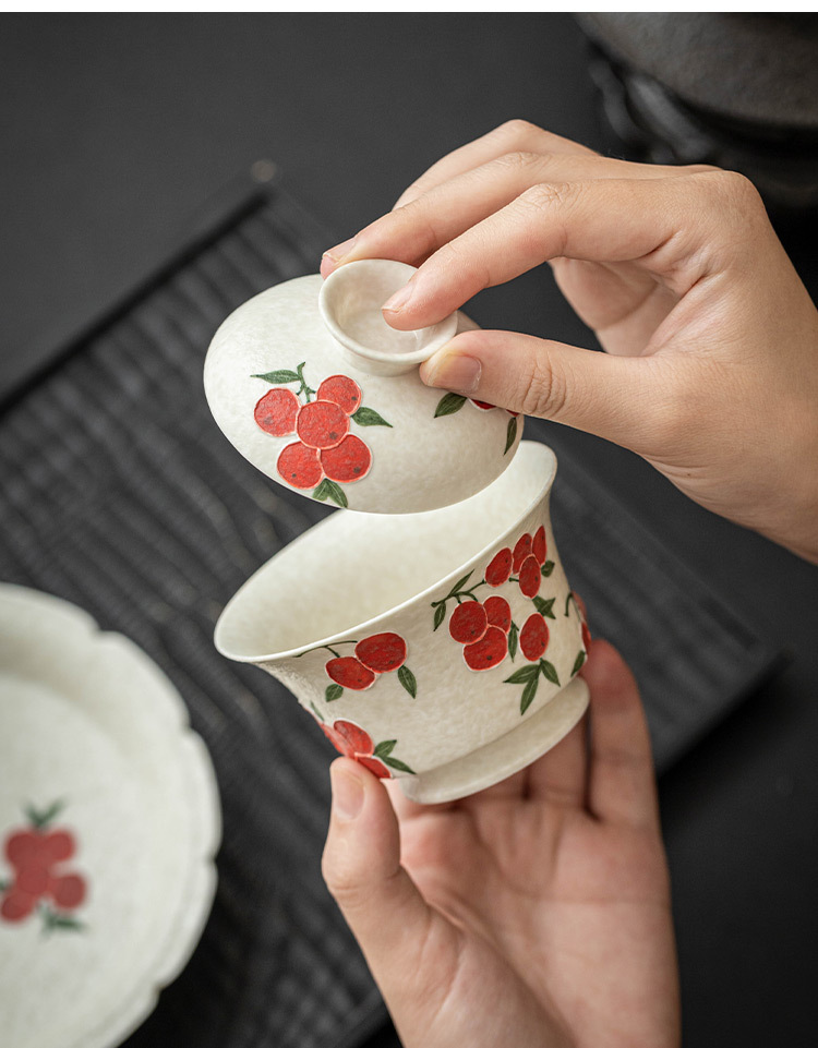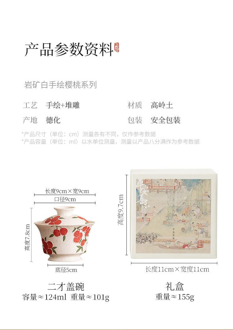 - Bộ ấm chén trà gốm sứ Kung Fu màu trắng đá khoáng, họa tiết anh đào chạm khắc thủ công, chén trà gaiwan, một chiếc